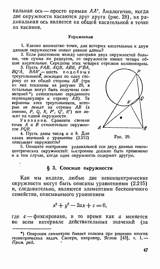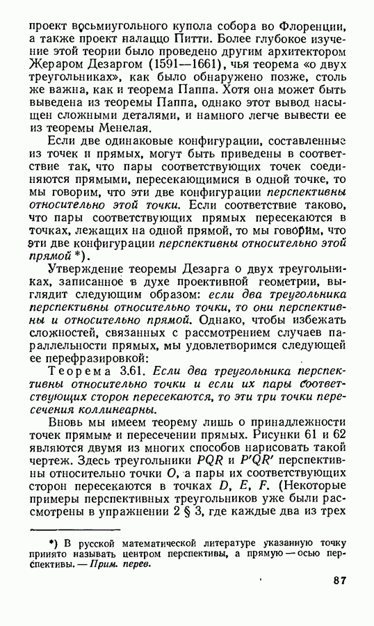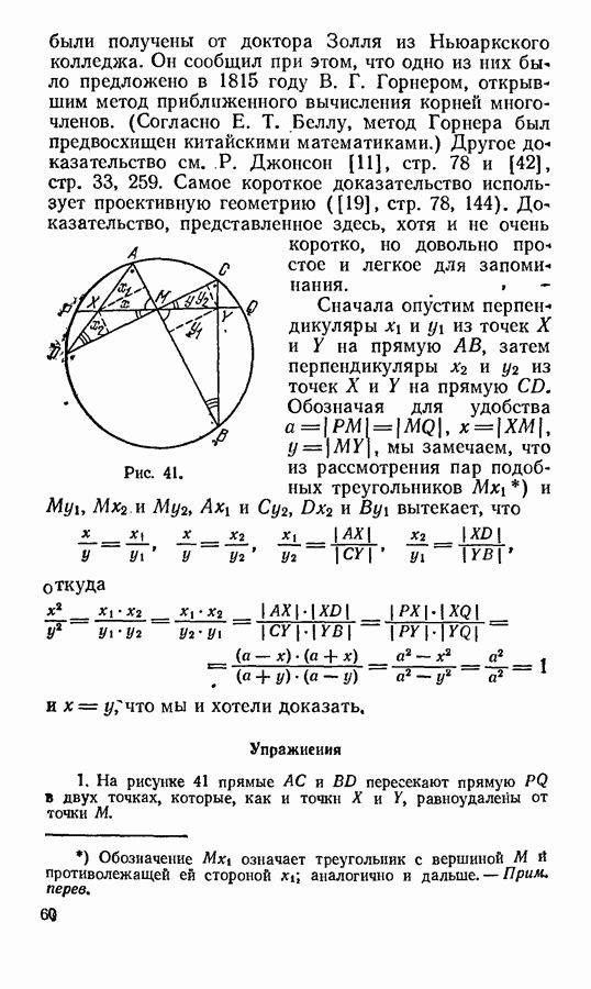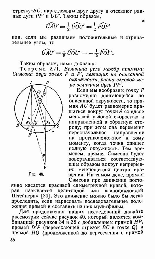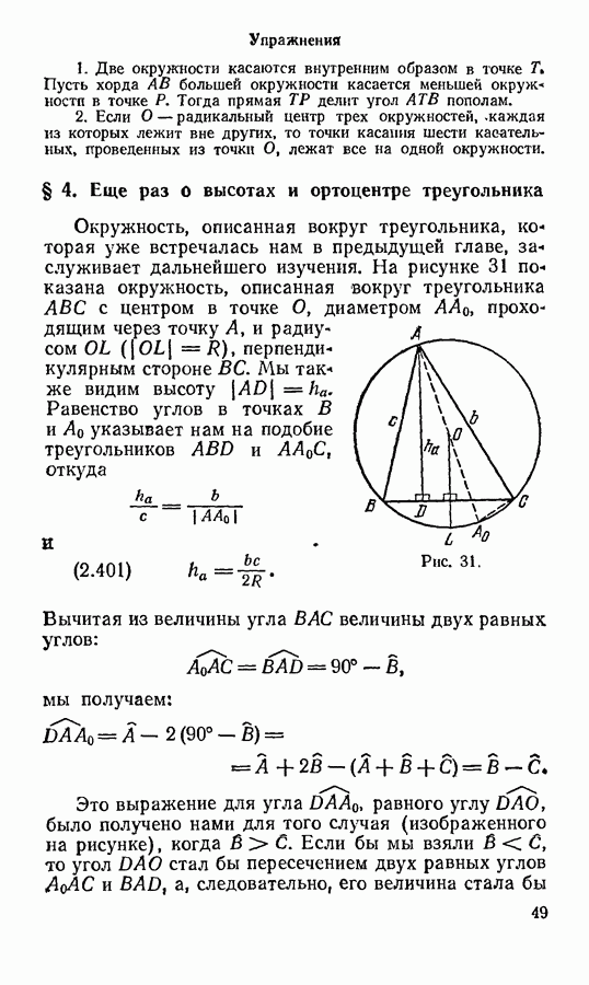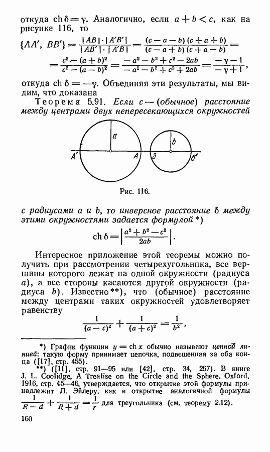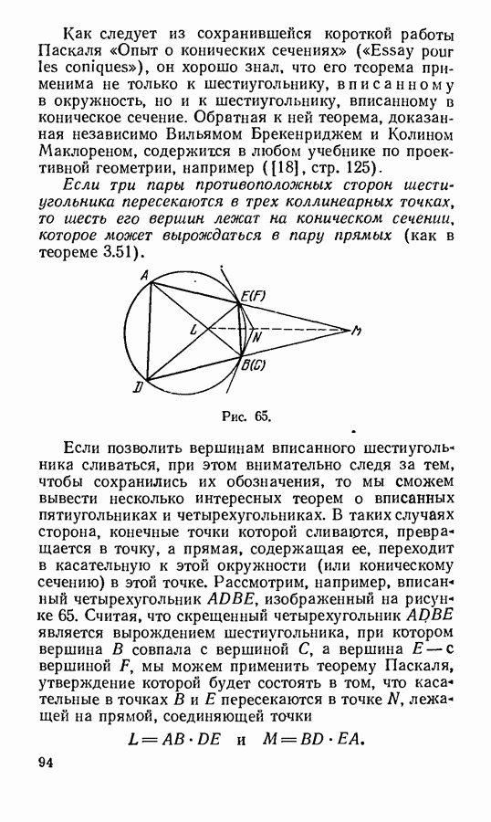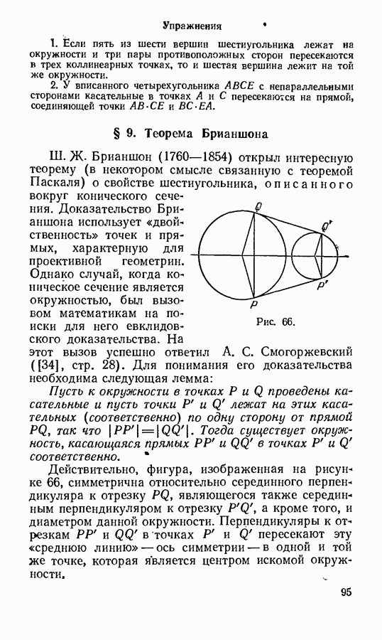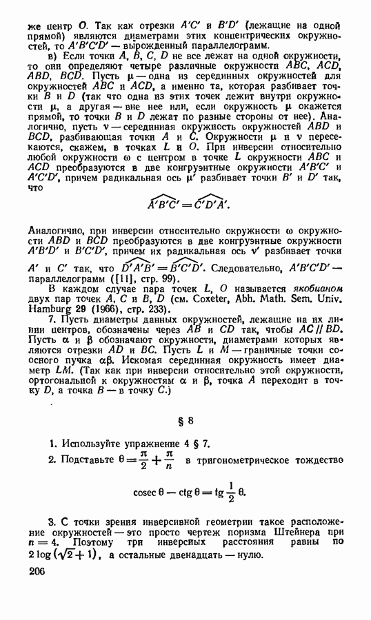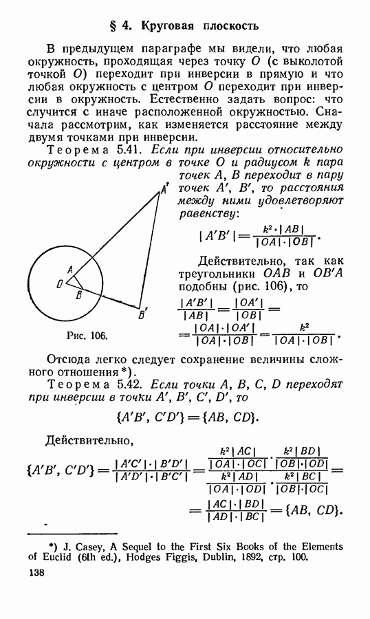 которое называется эксцентриситетом конического сечения. Точка О называется его фокусом. Описывая коническое сечение как образ при полярном преобразовании окружности а, мы рассматриваем его в обоих аспектах: как множество полюсов прямых, касательных к окружности а, так и как оболочку из поляр точек, лежащих на окружности а. Если