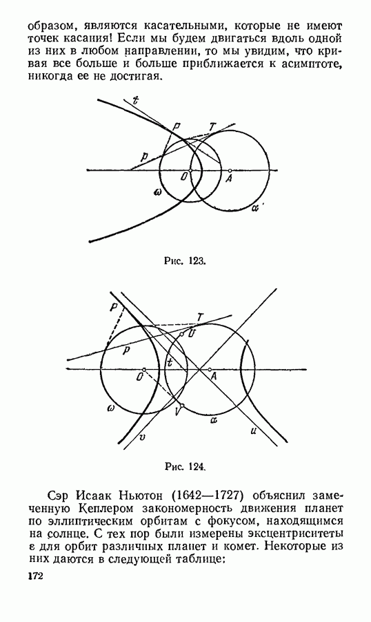 Рис. 124. Сэр Исаак Ньютон (1642—1727) объяснил замеченную Кеплером закономерность движения планет по эллиптическим орбитам с фокусом, находящимся на солнце. С тех пор были измерены эксцентриситеты (см. скан) Упражнения(см. скан)