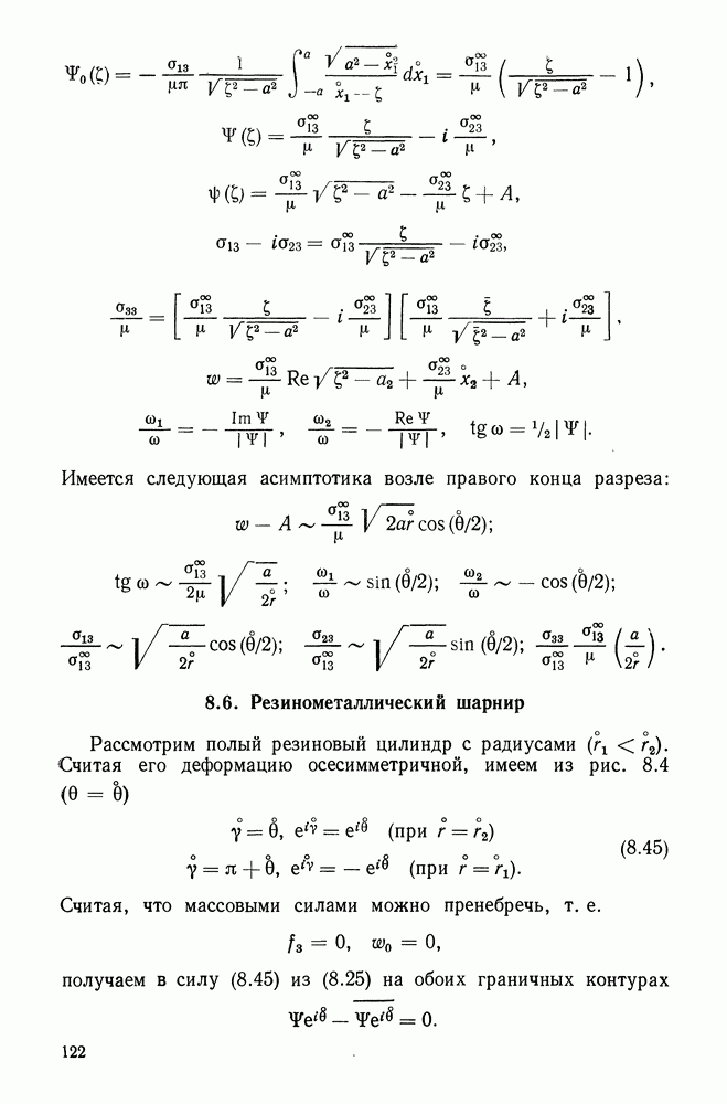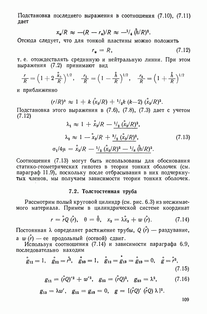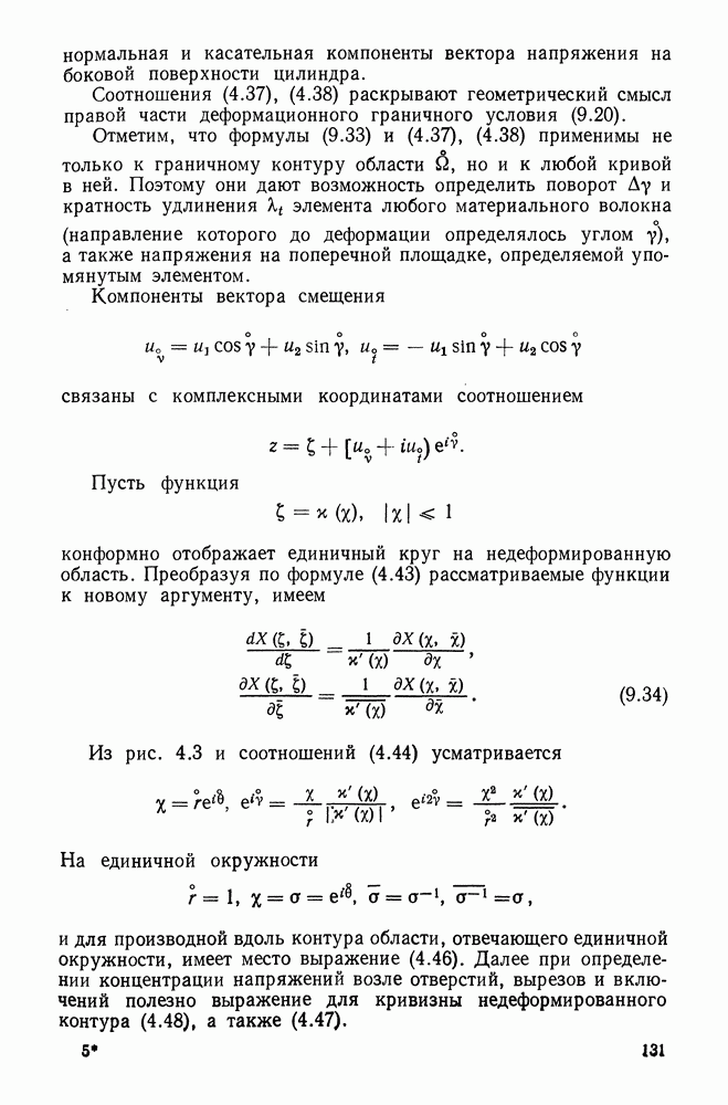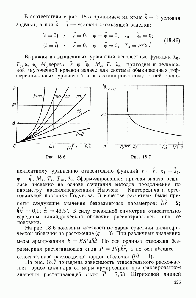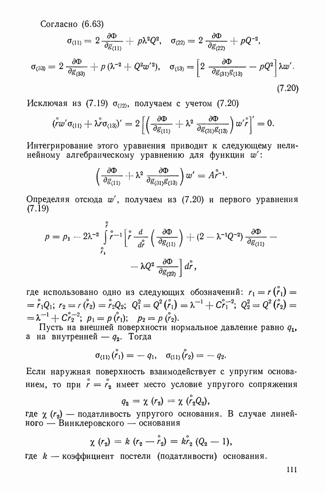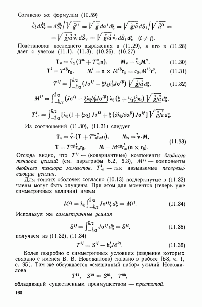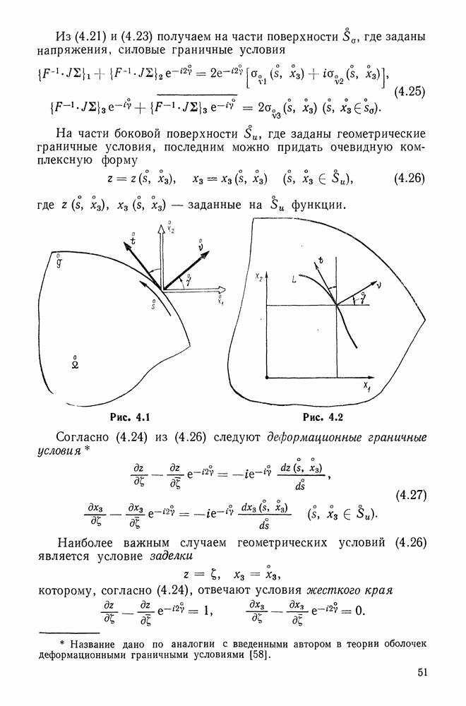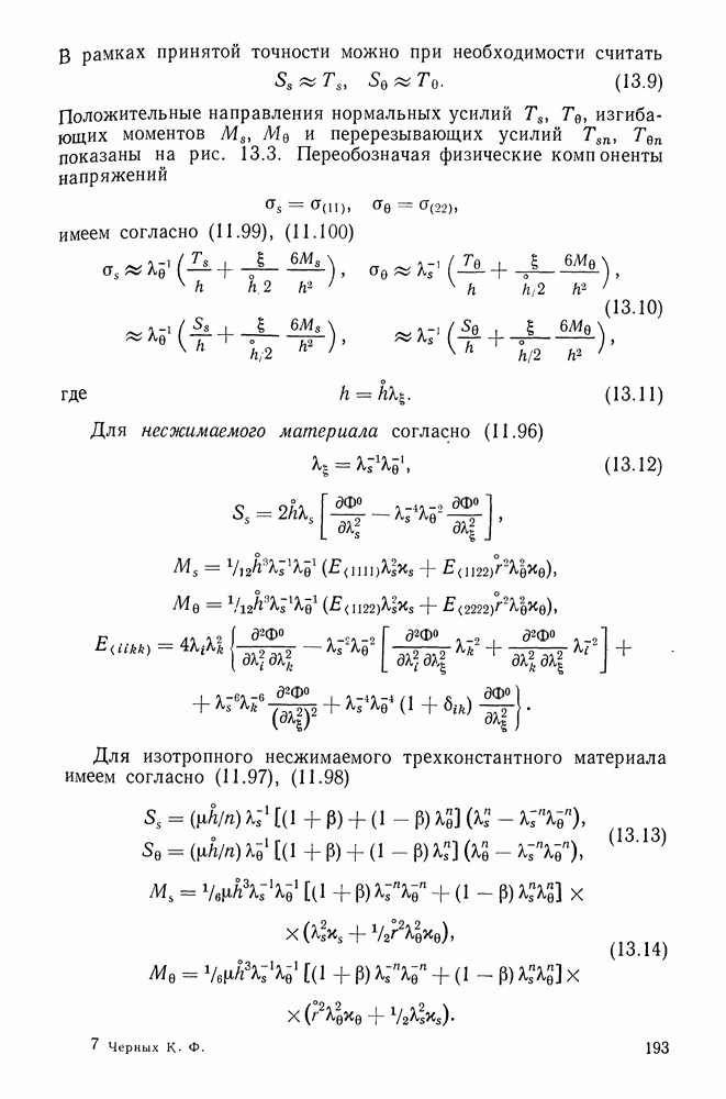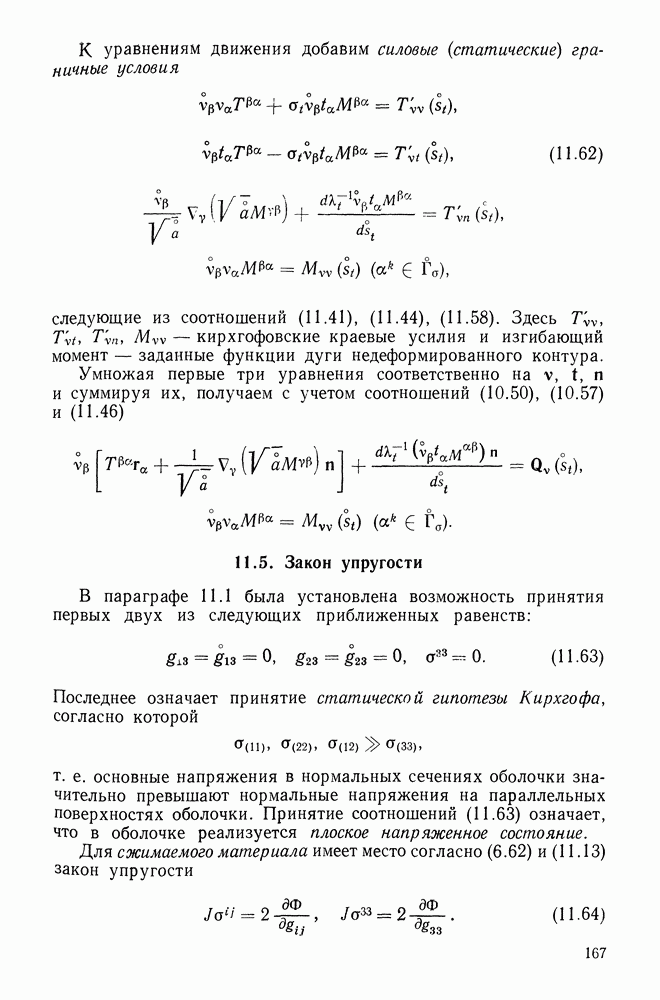 представляют собой осевую силу и компоненты момента, отвечающие внутренним напряжениям в стержне. Подставляя в последние соотношения выражения (15.57), какой-либо из вариантов (15.42), (15.26)-(15.29), (15.31), (15.32), (15.34)-(15.37) закона упругости, а также (15.54)-(15.55), получаем связь между краевыми усилиями — моментом и компонентами деформации края оболочки. При этом в получаемых описанным способом соотношениях подкрепляющий край оболочки стержень представлен лишь своими жесткостными характеристиками.