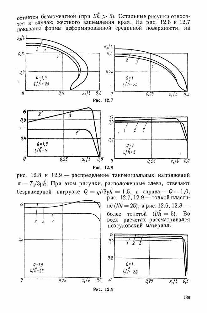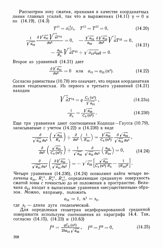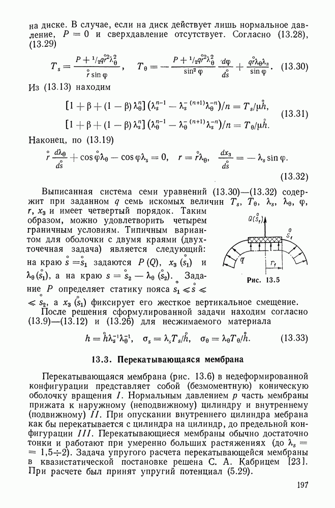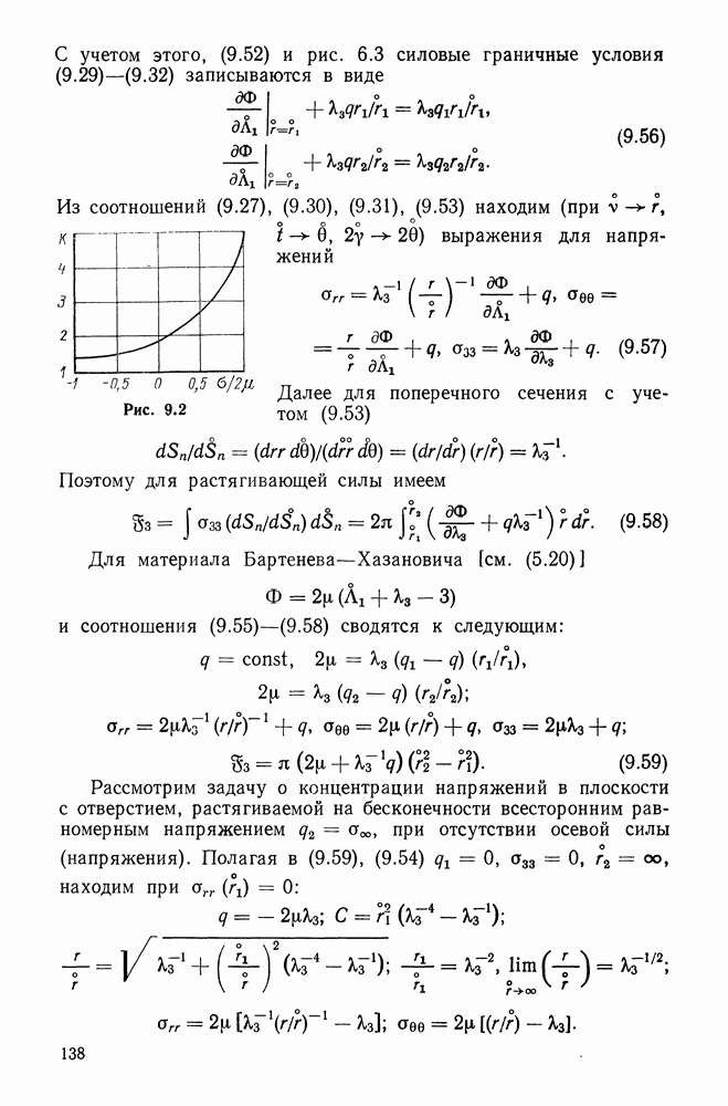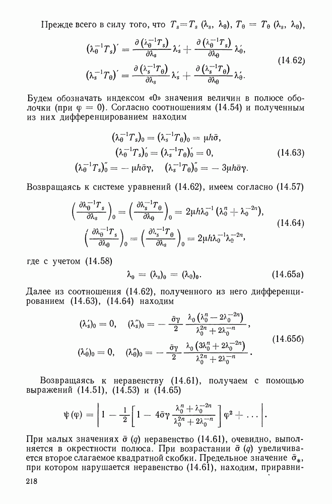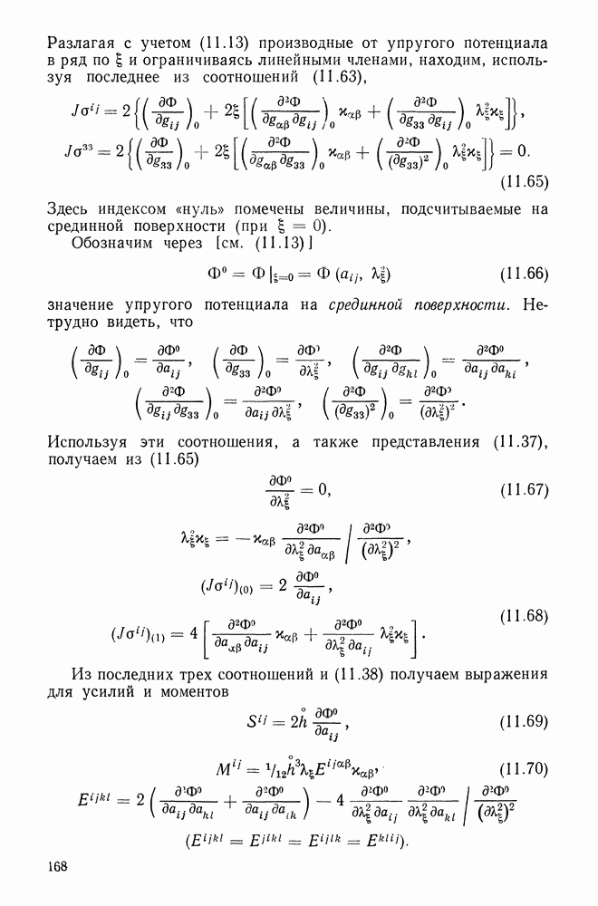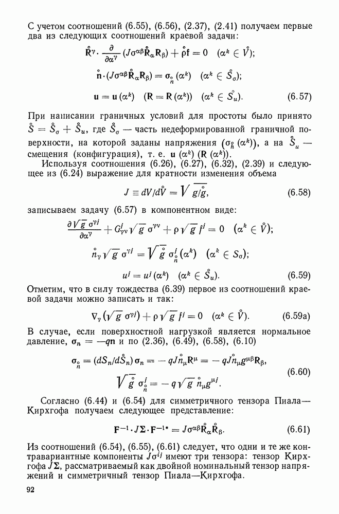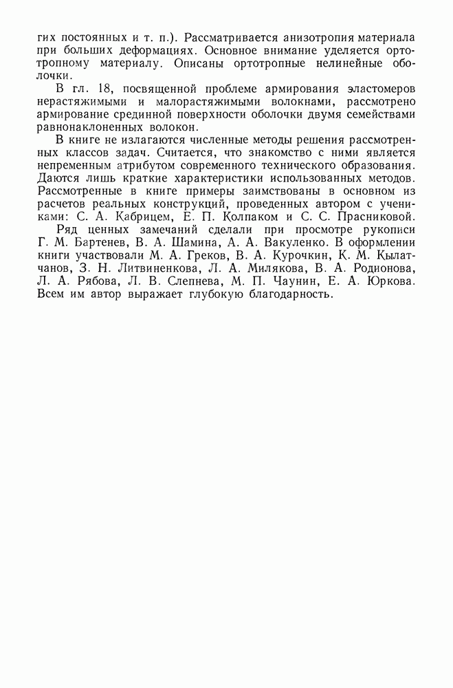 представляют собой осевую силу и компоненты момента, отвечающие внутренним напряжениям в стержне. Подставляя в последние соотношения выражения (15.57), какой-либо из вариантов (15.42), (15.26)-(15.29), (15.31), (15.32), (15.34)-(15.37) закона упругости, а также (15.54)-(15.55), получаем связь между краевыми усилиями — моментом и компонентами деформации края оболочки. При этом в получаемых описанным способом соотношениях подкрепляющий край оболочки стержень представлен лишь своими жесткостными характеристиками.