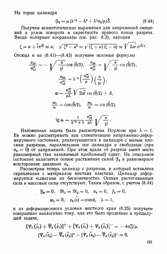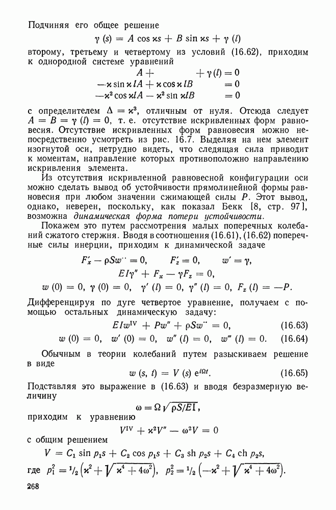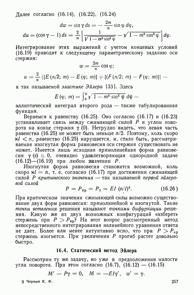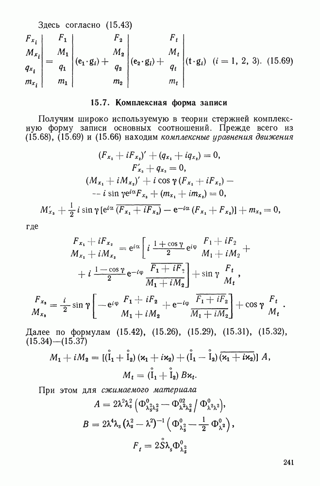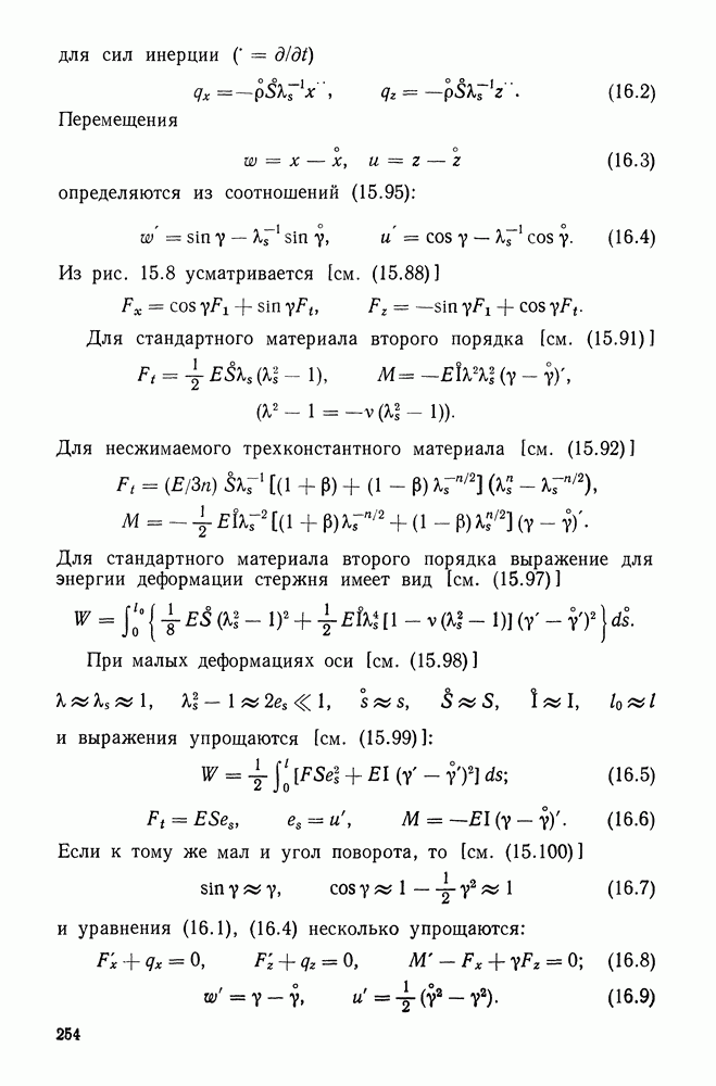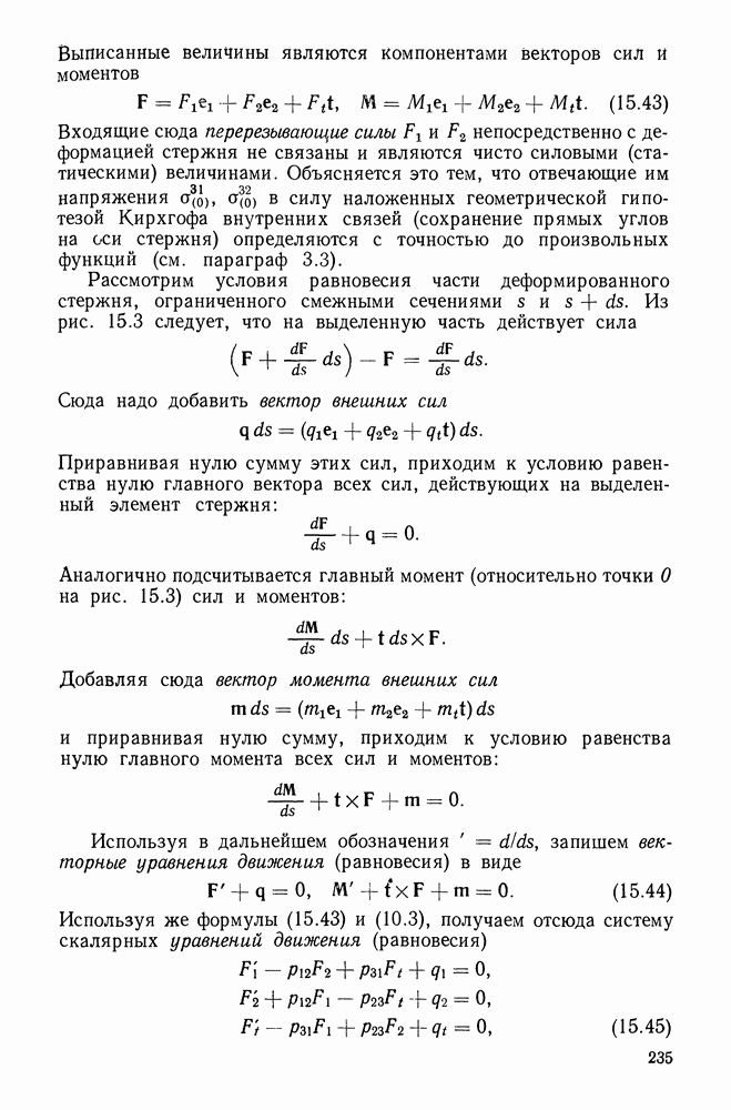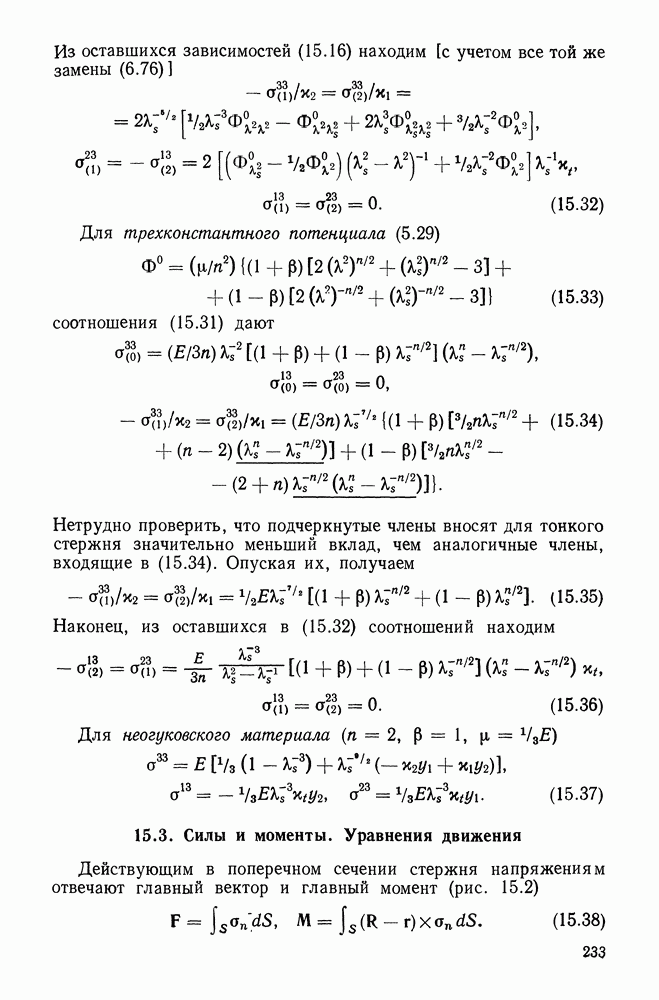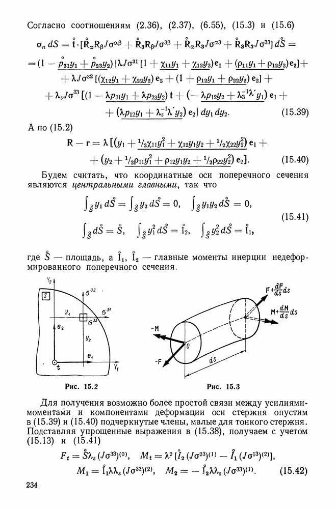 главный вектор и главный момент (подсчитываем относительно точки пересечения поперечного сечения с осью) напряжений в сечении стержня. Согласно соотношениям (15.44) (где индекс с не использовался)