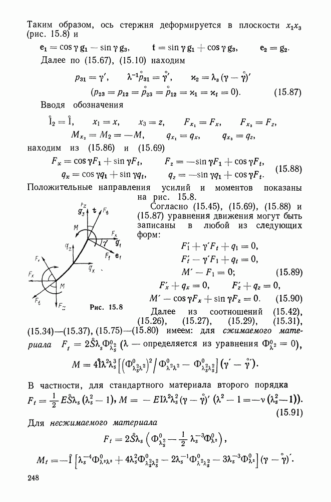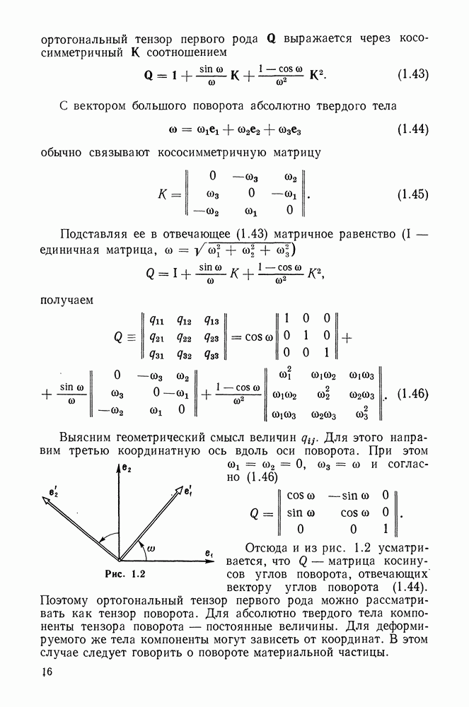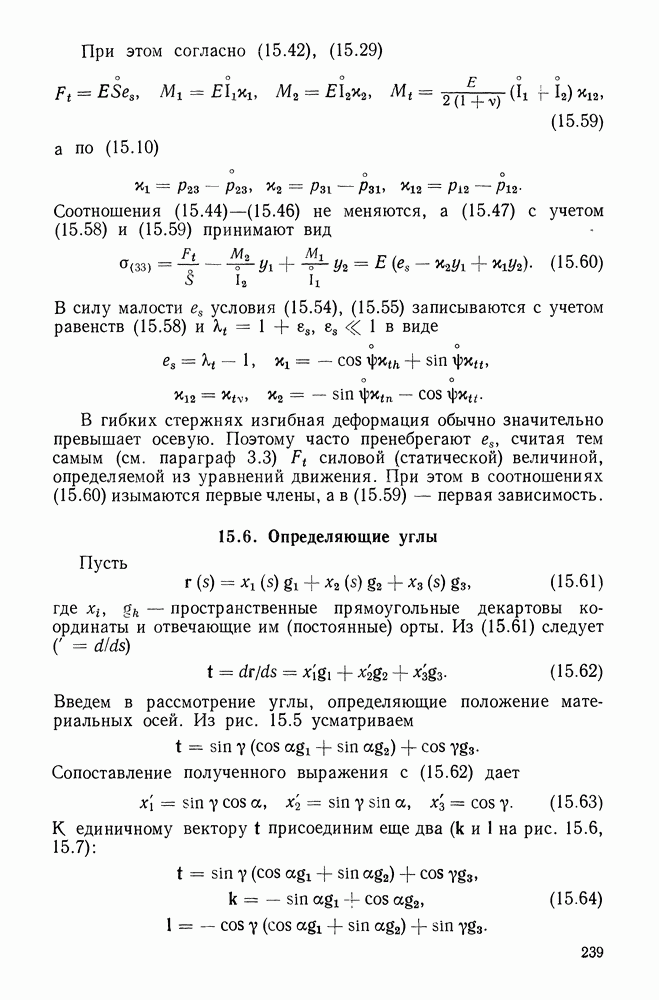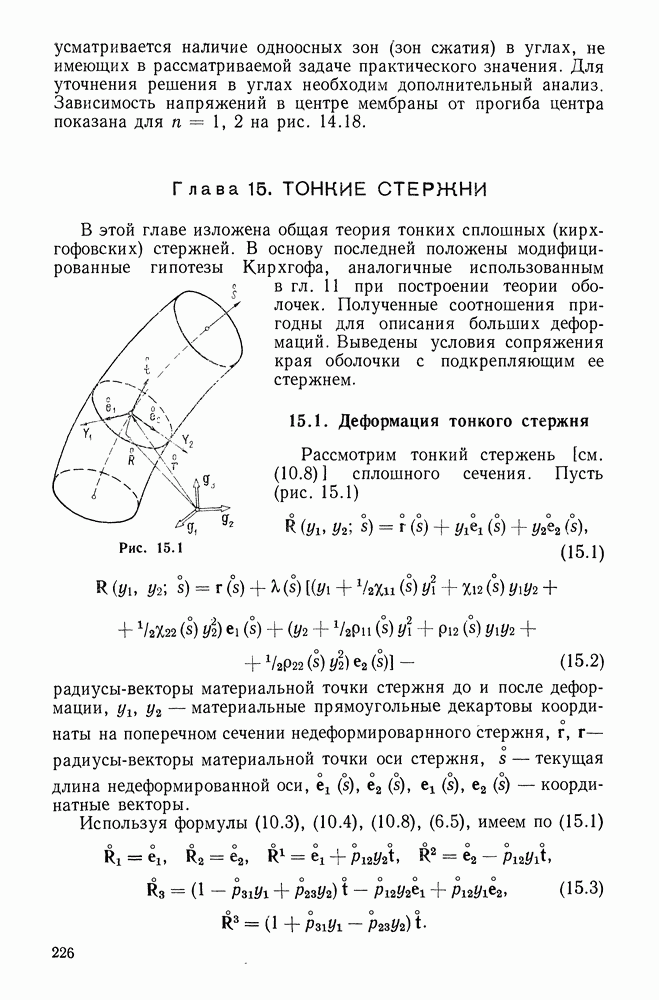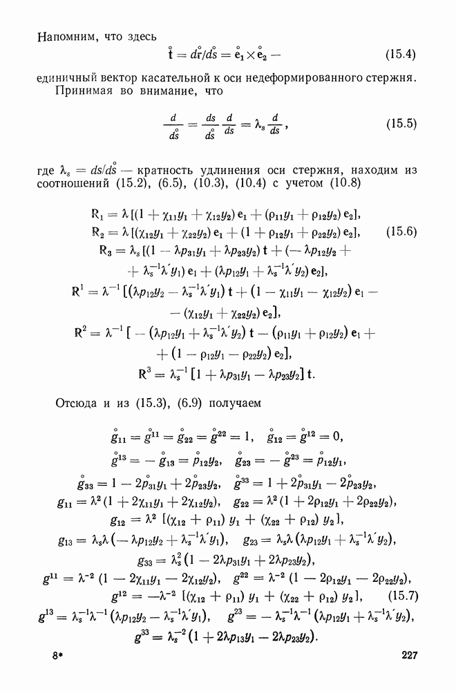 стало быть, является ортогональным (см. параграф 1.4). Его уместно называть тензором поворота поперечного сечения стержня (точнее, его части, примыкающей к оси). Из (15.49) следует также