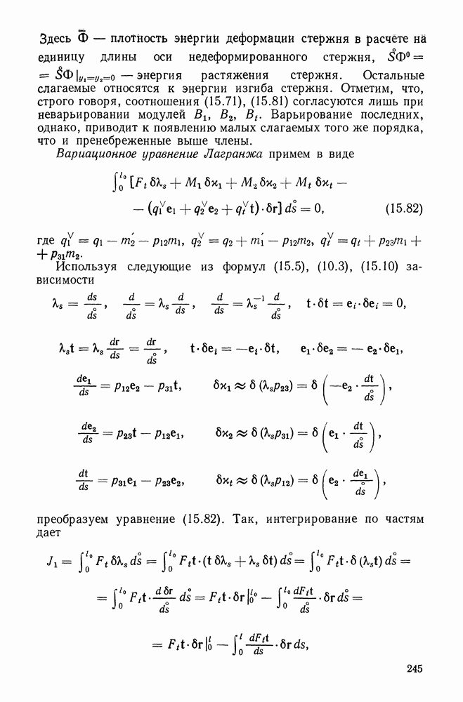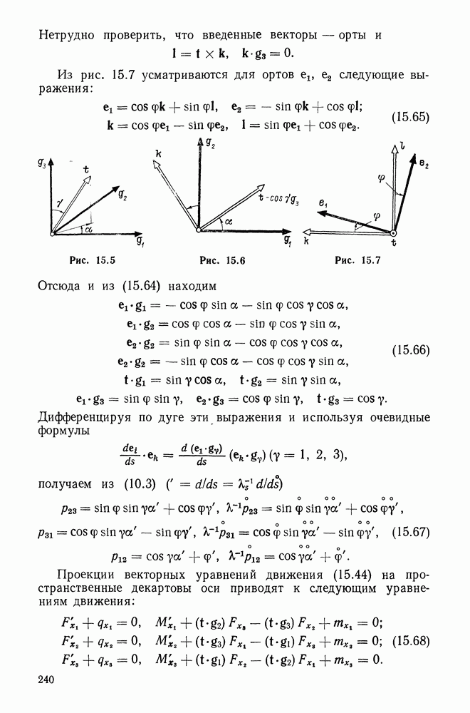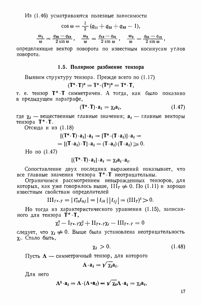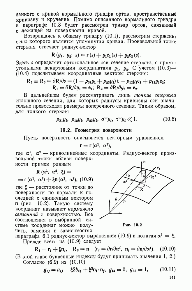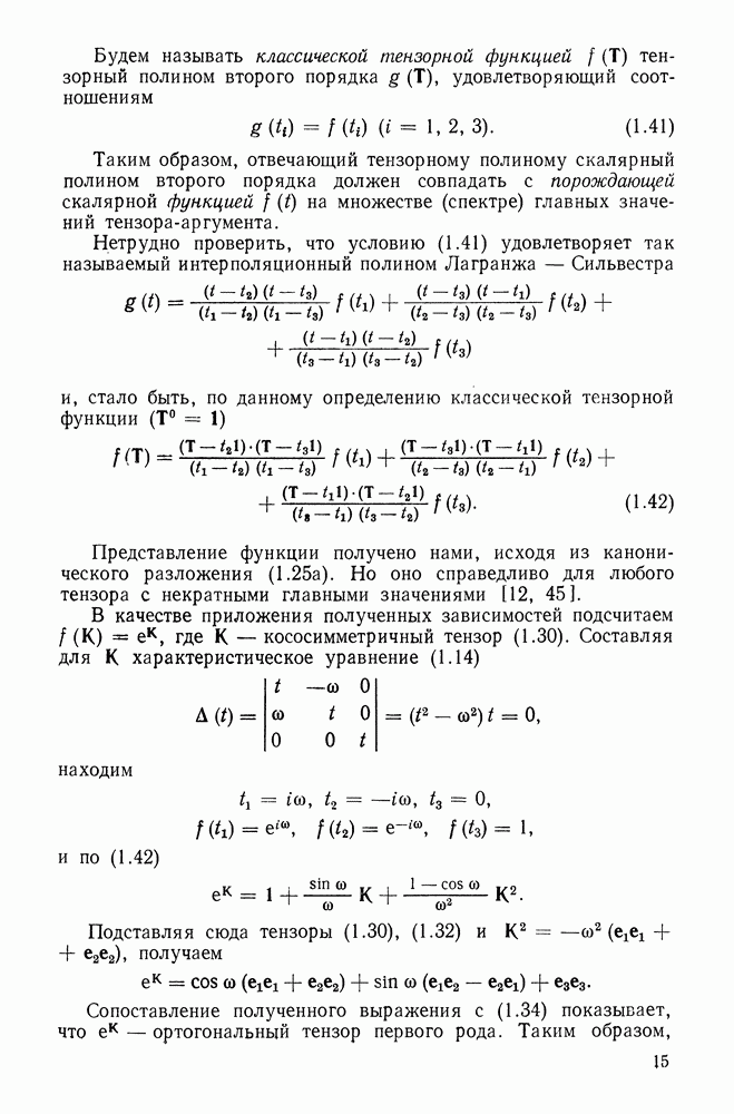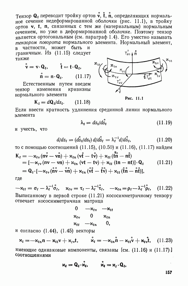 стало быть, является ортогональным (см. параграф 1.4). Его уместно называть тензором поворота поперечного сечения стержня (точнее, его части, примыкающей к оси). Из (15.49) следует также
