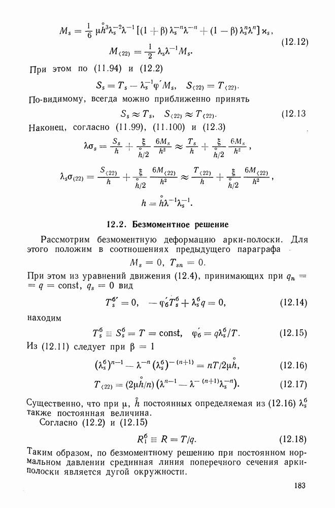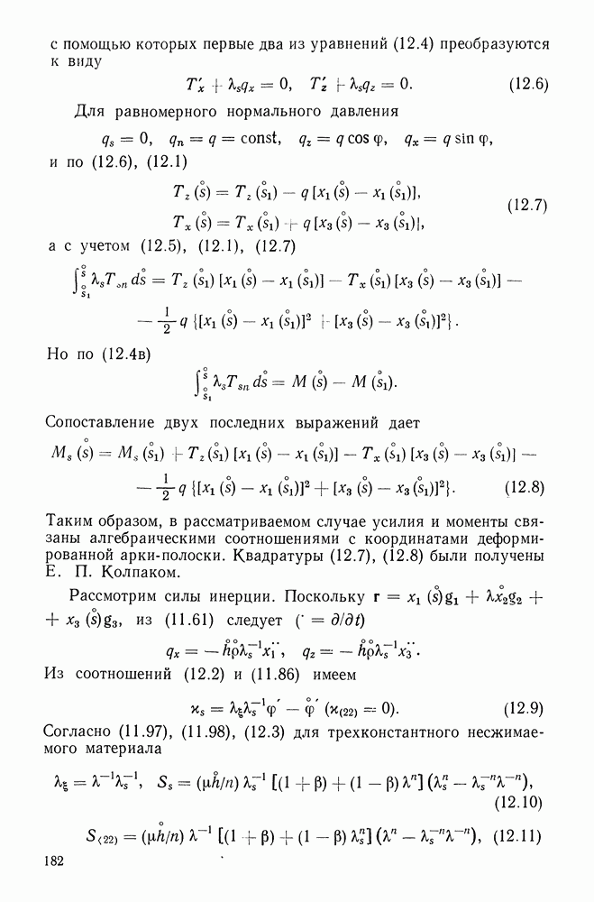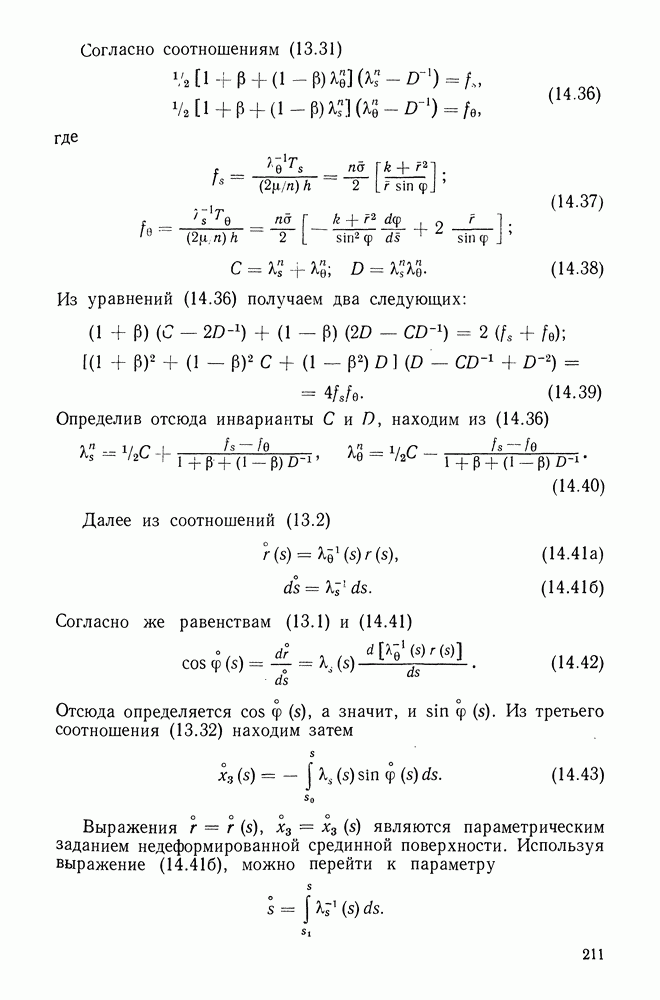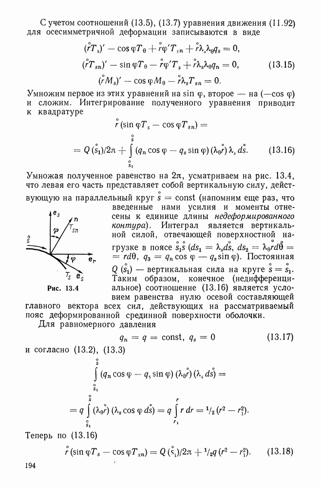 Интегрируя уравнения (15.56) по дуге оси стержня (отождествляемой с граничным контуром срединной поверхности оболочки), находим