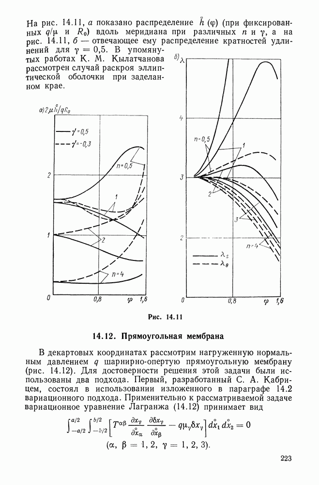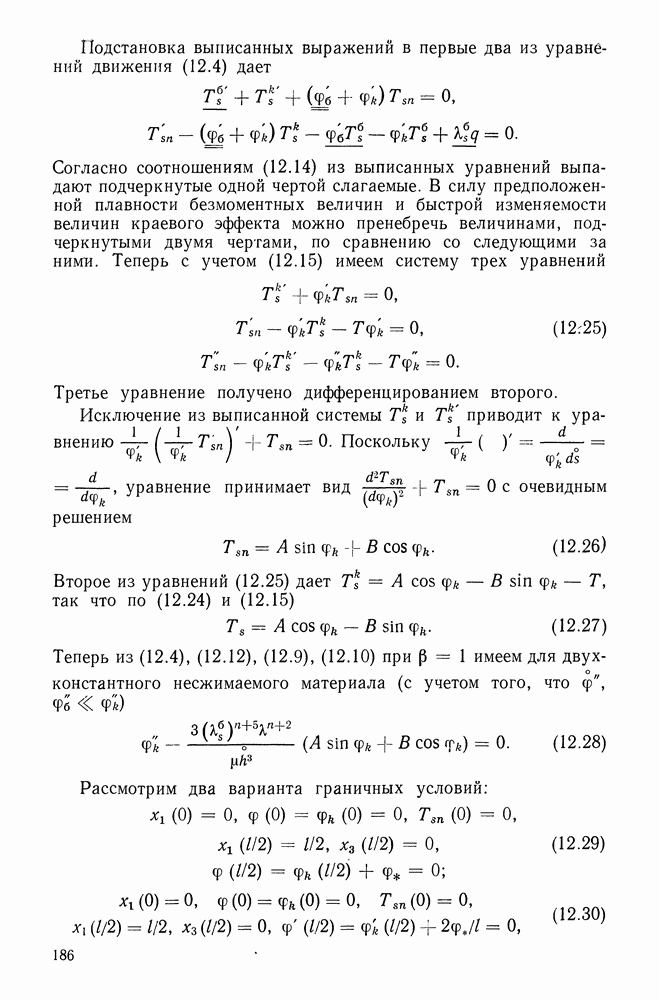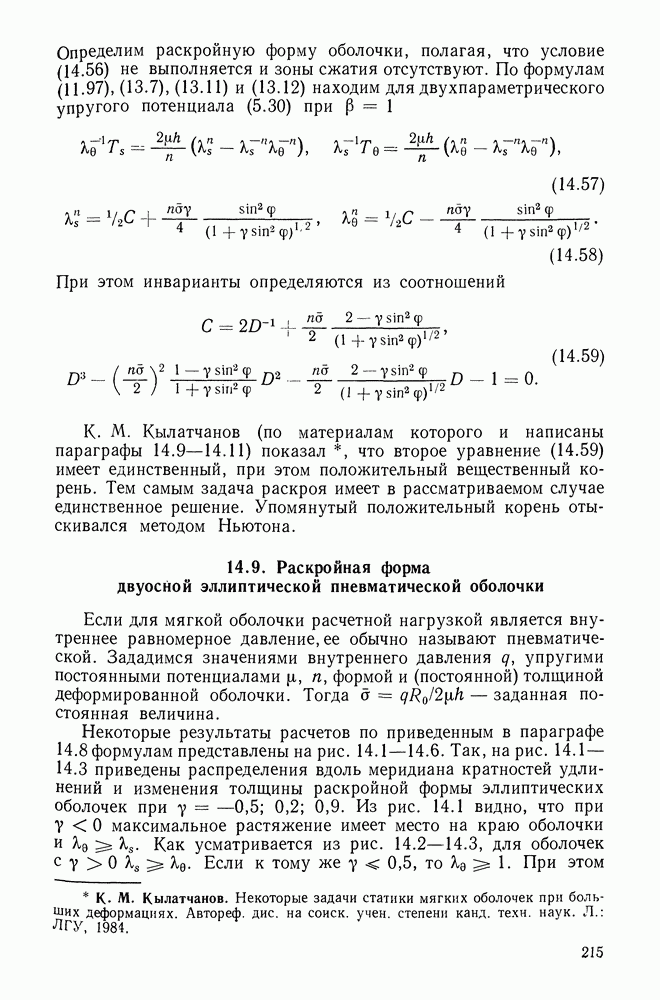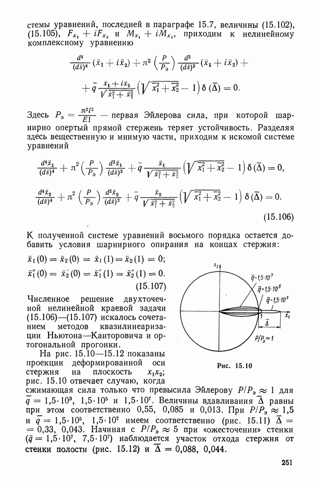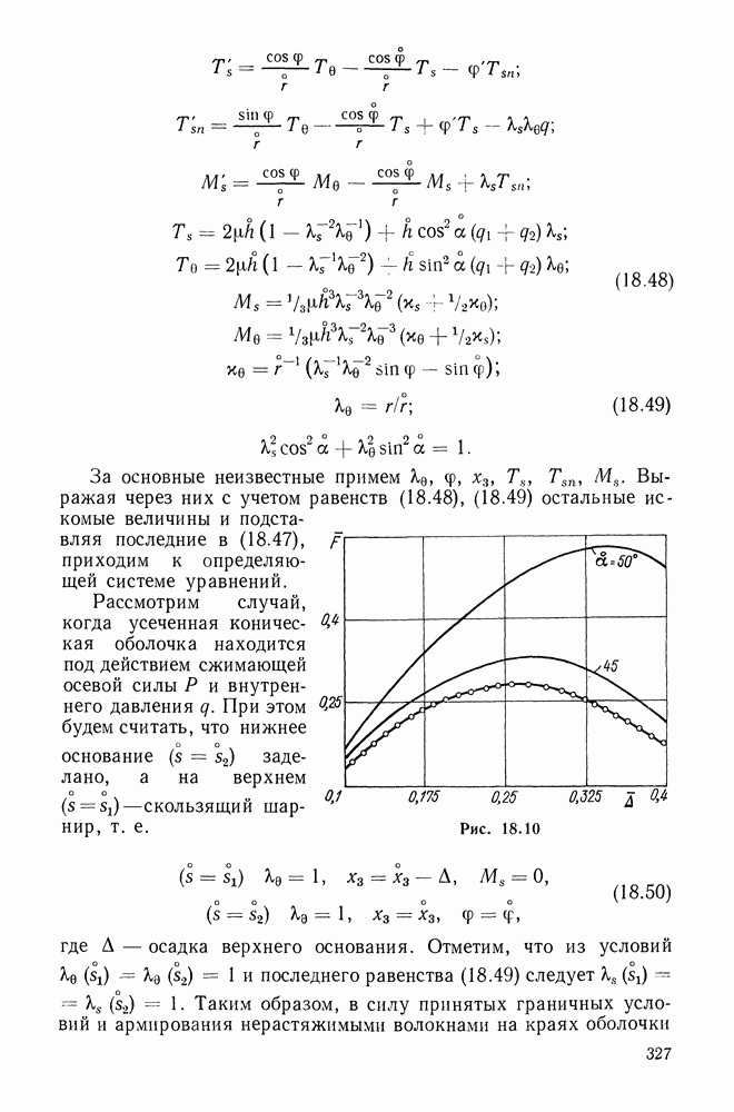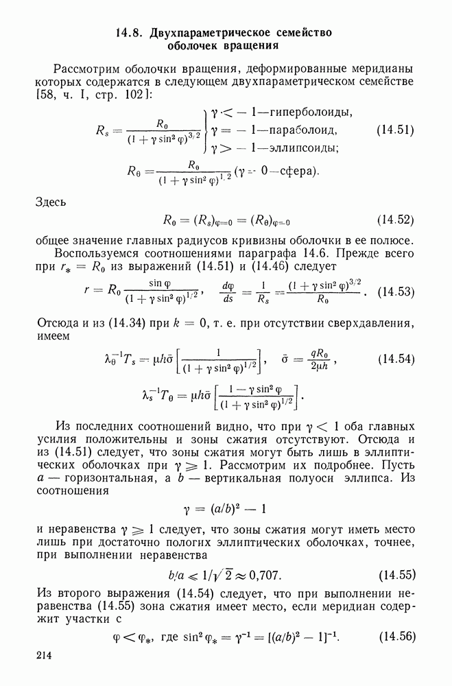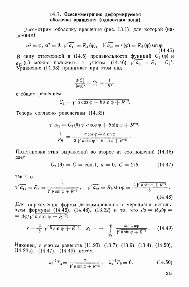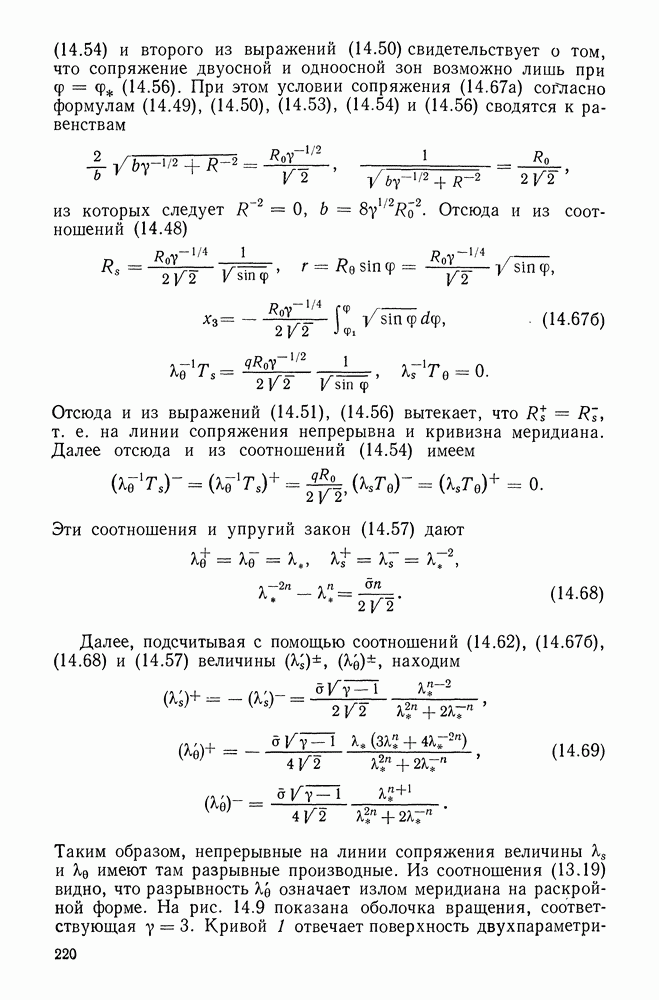 Используя теперь то важное обстоятельство, что стержень деформируется совместно с подкрепляемым им краем оболочки, из (15.48) и (15.49) находим