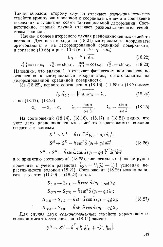 т. е. в процессе деформации положение главных осей стержня относительно края оболочки не меняется. Тогда из выписанного равенства и из (11.15) следует