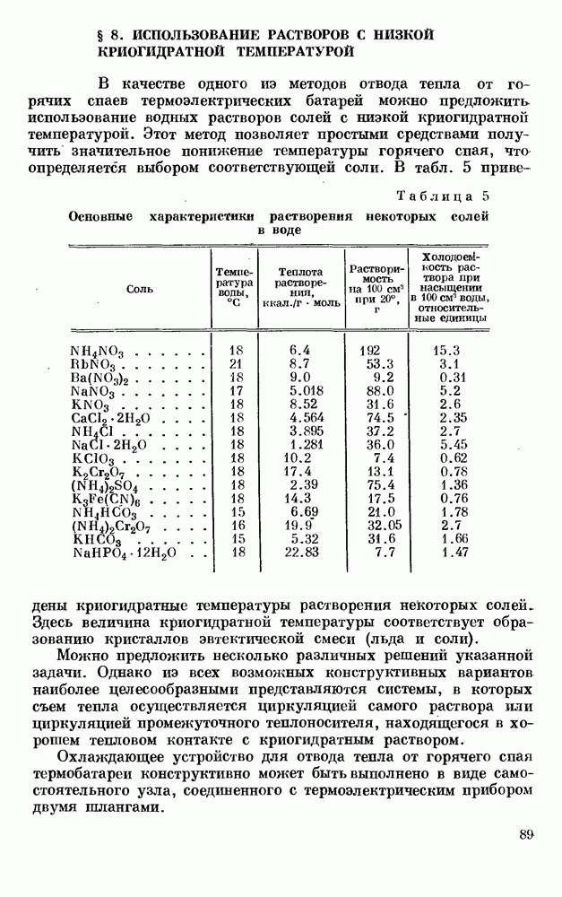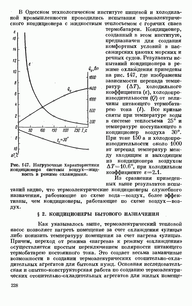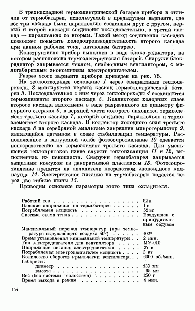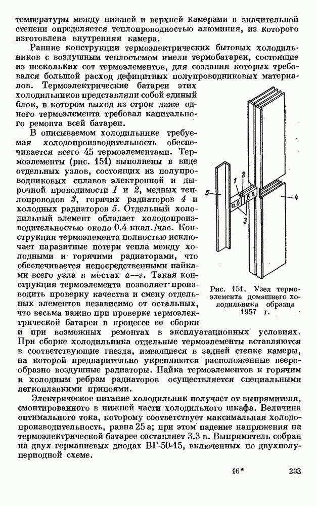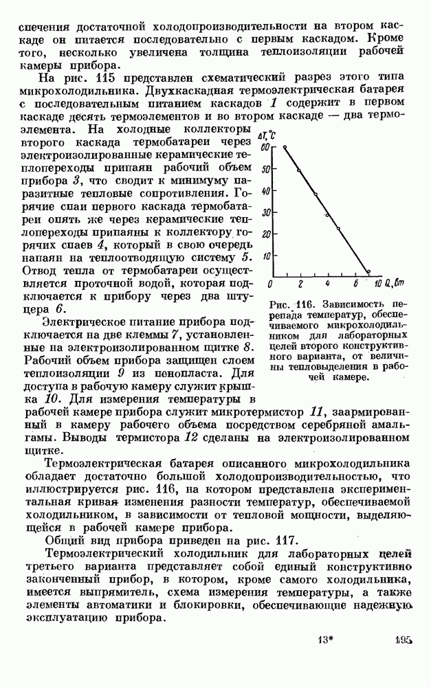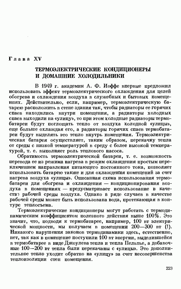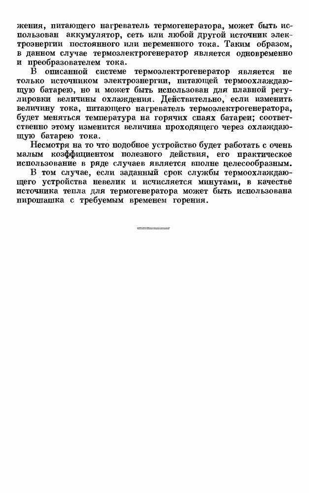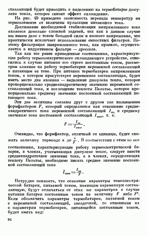 Таким образом, если в качестве материалов для ветвей термопары применить полуметаллы с достаточно широкой запретной зоной, то мы можем считать, что концентрация носителей остается постоянной. При этом условие (34) также не выполняется строго на всем протяжении ветви термоэлемента, и это приводит к некоторому снижению его эффективности. Однако, так как перепад температур на охлаждающей термопаре, как правило, не превышает нескольких десятков градусов, отступления от (34) и соответствующие потери эффективности обычно не превышают 10—20%. В этом отношении многокаскадные батареи приобретают еще одно преимущество: если общий рабочий перепад разделен на небольшие перепады температур, то в каждом каскаде условие (34) может быть удовлетворено более точно соответствующим подбором концентраций примесей. Можно также строго удовлетворить это условие, если обеспечить постепенное изменение концентрации примесей вдоль ветви термопары; это, однако, представляет большие технологические трудности, которые до настоящего времени полностью не преодолены.