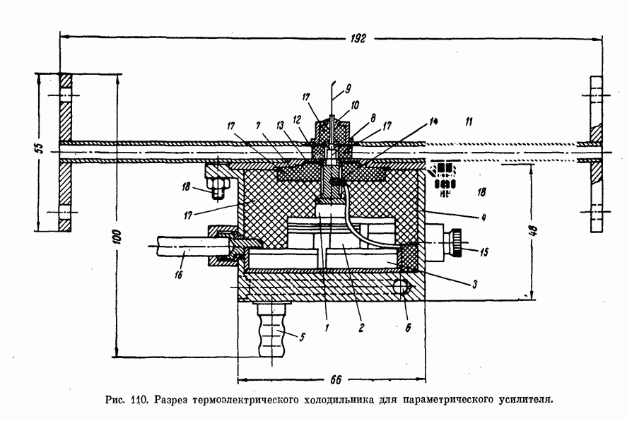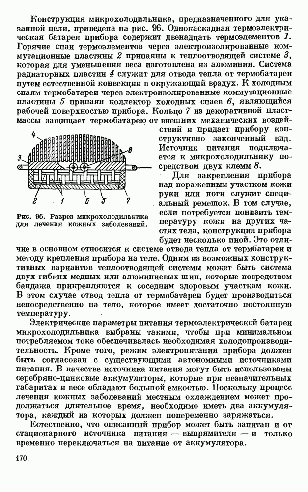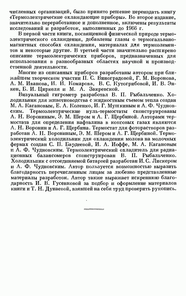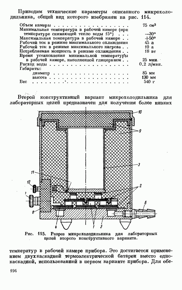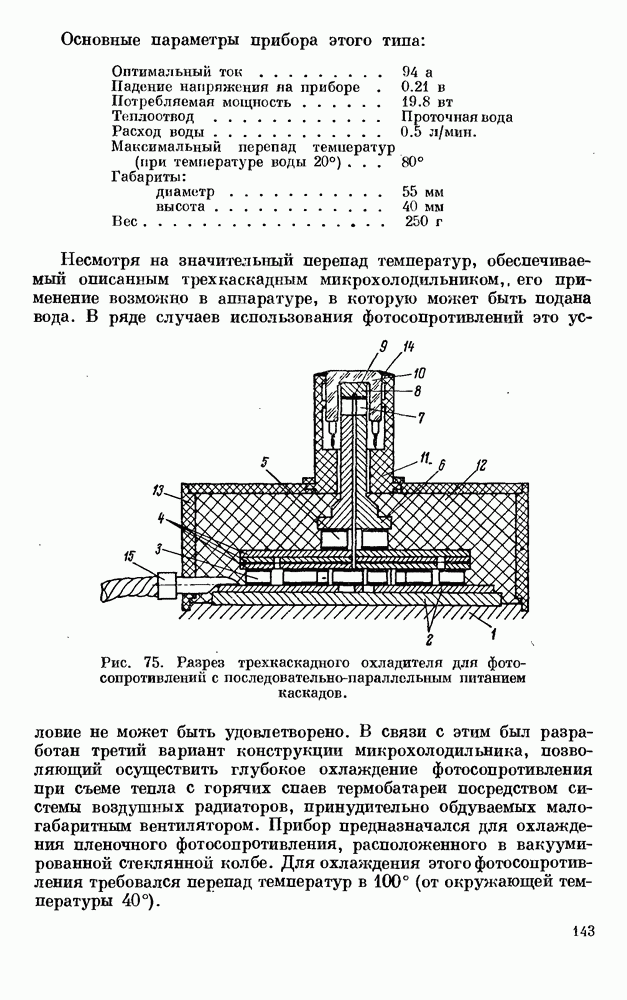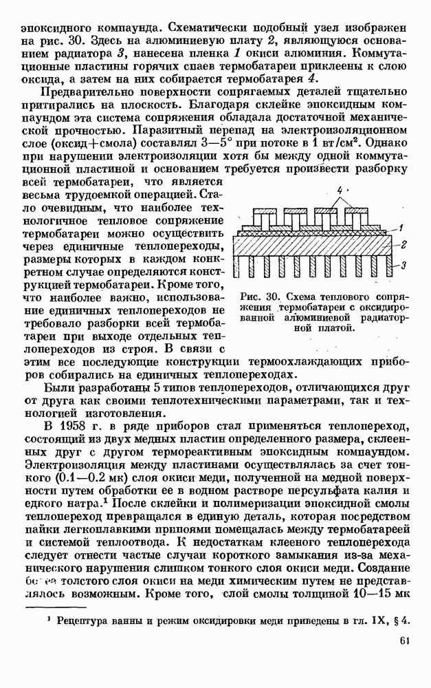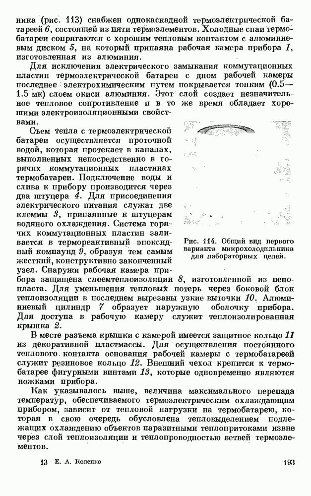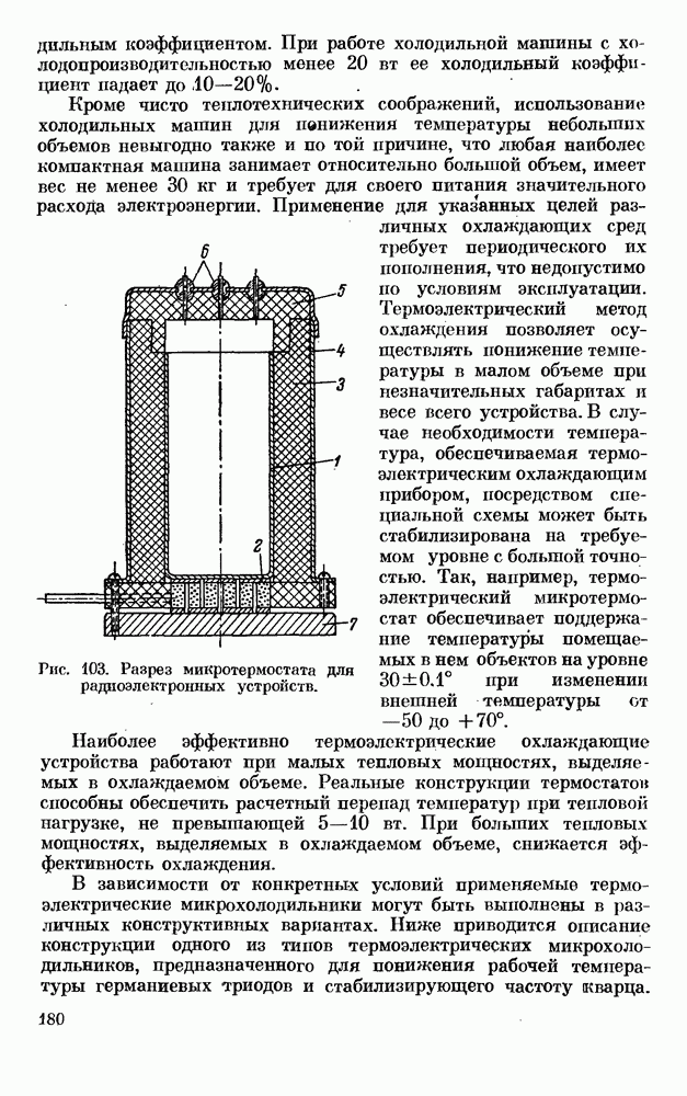 Таким образом, если в качестве материалов для ветвей термопары применить полуметаллы с достаточно широкой запретной зоной, то мы можем считать, что концентрация носителей остается постоянной. При этом условие (34) также не выполняется строго на всем протяжении ветви термоэлемента, и это приводит к некоторому снижению его эффективности. Однако, так как перепад температур на охлаждающей термопаре, как правило, не превышает нескольких десятков градусов, отступления от (34) и соответствующие потери эффективности обычно не превышают 10—20%. В этом отношении многокаскадные батареи приобретают еще одно преимущество: если общий рабочий перепад разделен на небольшие перепады температур, то в каждом каскаде условие (34) может быть удовлетворено более точно соответствующим подбором концентраций примесей. Можно также строго удовлетворить это условие, если обеспечить постепенное изменение концентрации примесей вдоль ветви термопары; это, однако, представляет большие технологические трудности, которые до настоящего времени полностью не преодолены.