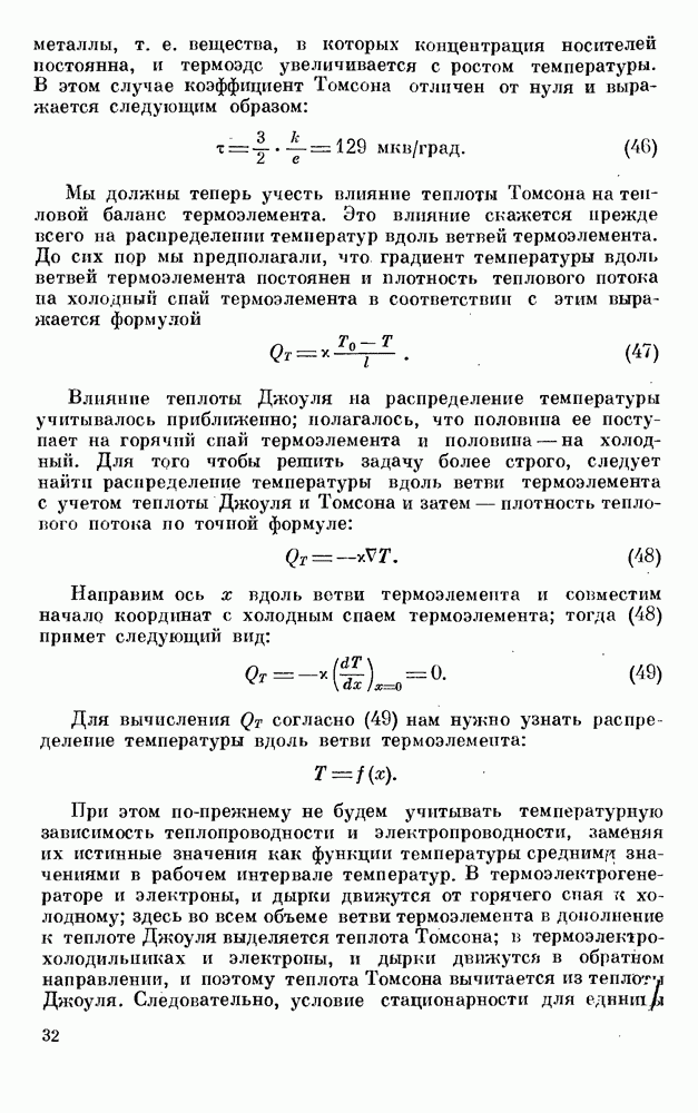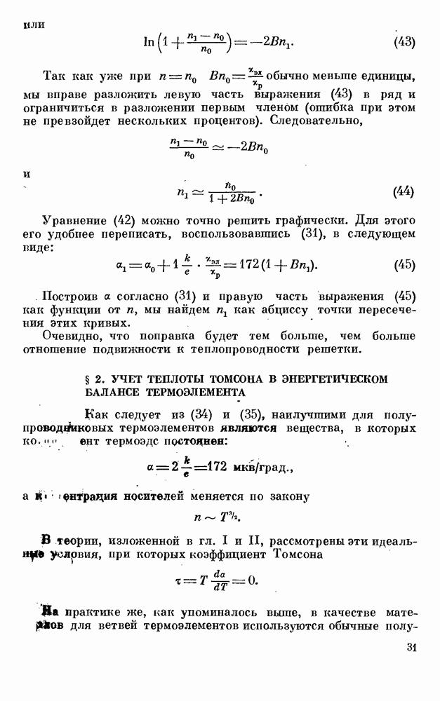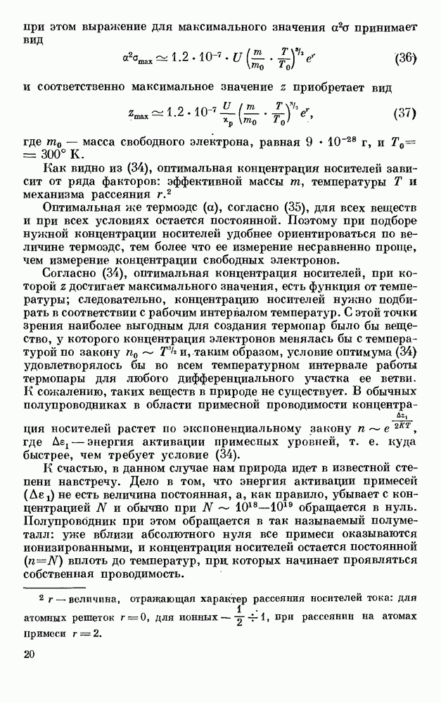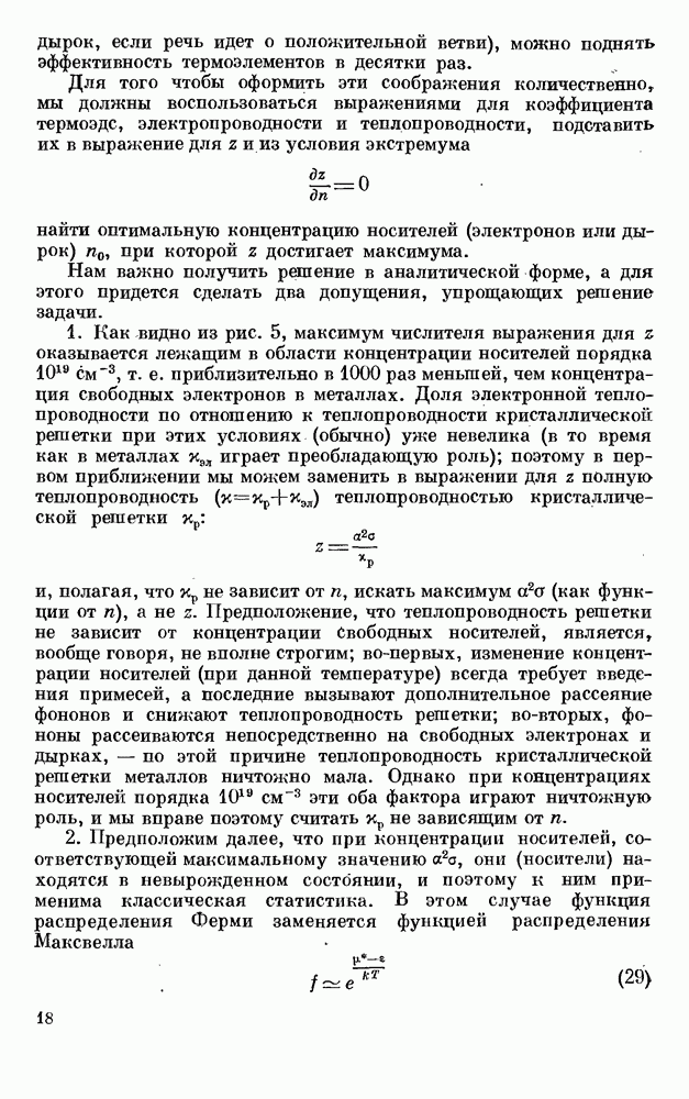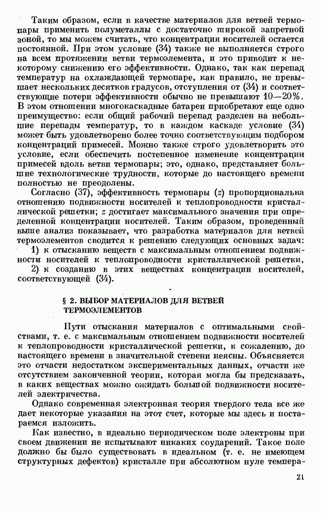 таким образом, условие оптимума (34) удовлетворялось бы во всем температурном интервале работы термопары для любого дифференциального участка ее ветви. К сожалению, таких веществ в природе не существует. В обычных полупроводниках в области примесной проводимости концентрация носителей растет по экспоненциальному закону