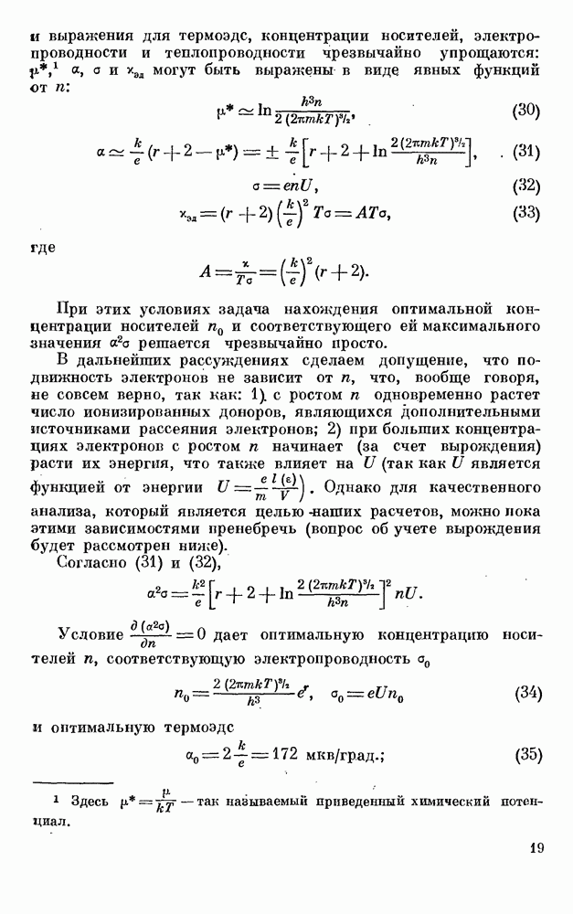 Однако для качественного анализа, который является целью наших расчетов, можно пока этими зависимостями пренебречь (вопрос об учете вырождения будет рассмотрен ниже).