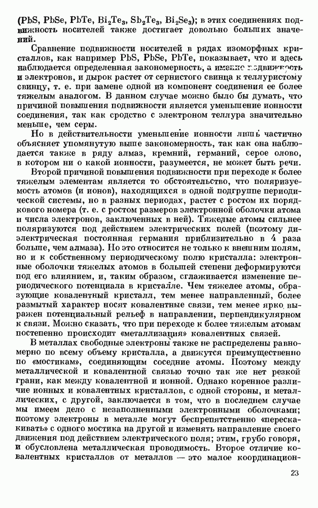 т. е. приблизительно в 1000 раз меньшей, чем концентрация свободных электронов в металлах. Доля электронной теплопроводности по отношению к теплопроводности кристаллической решетки при этих условиях (обычно) уже невелика (в то время как в металлах