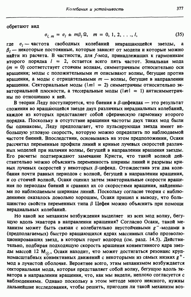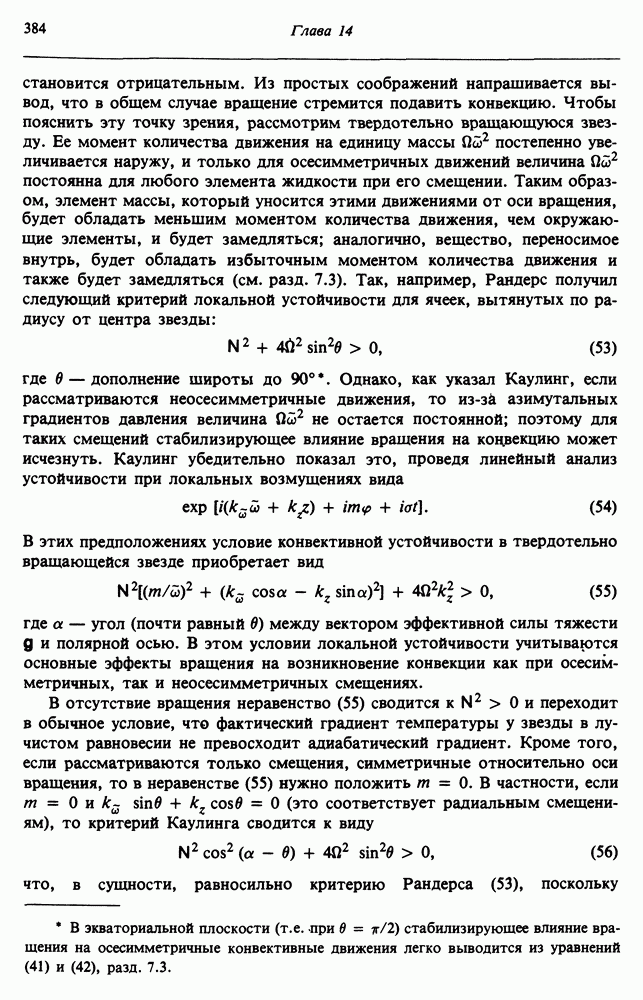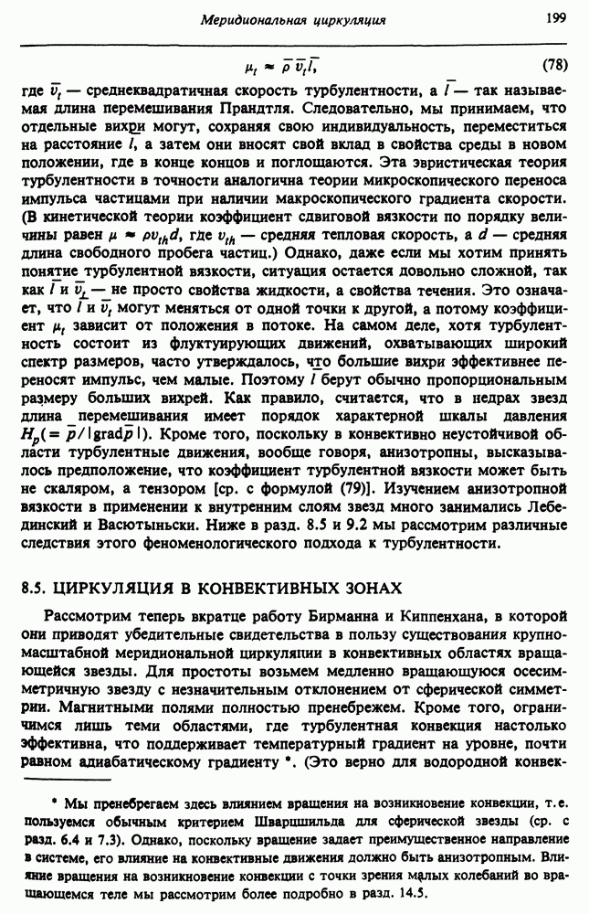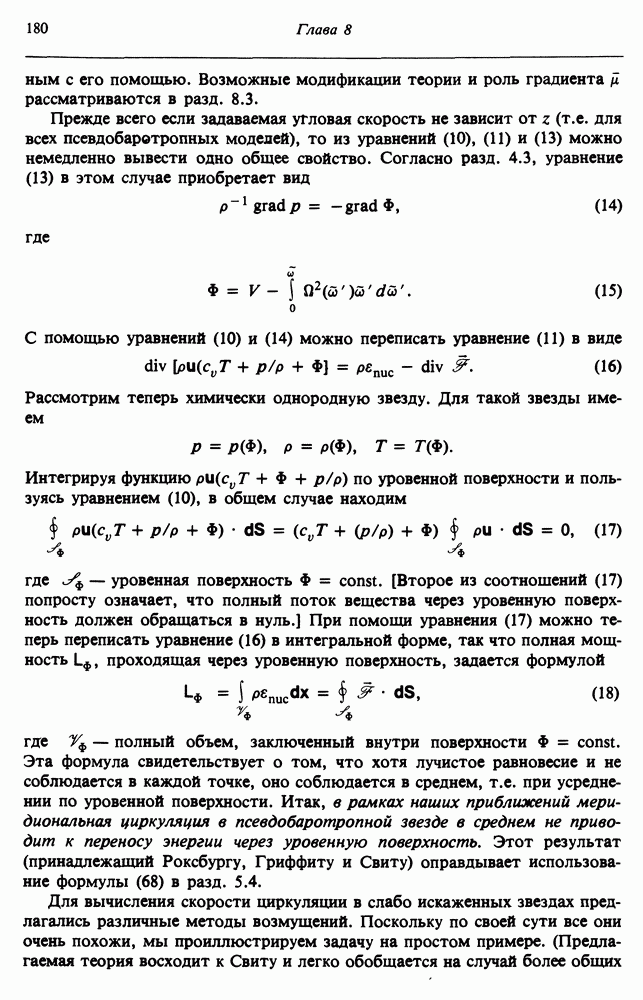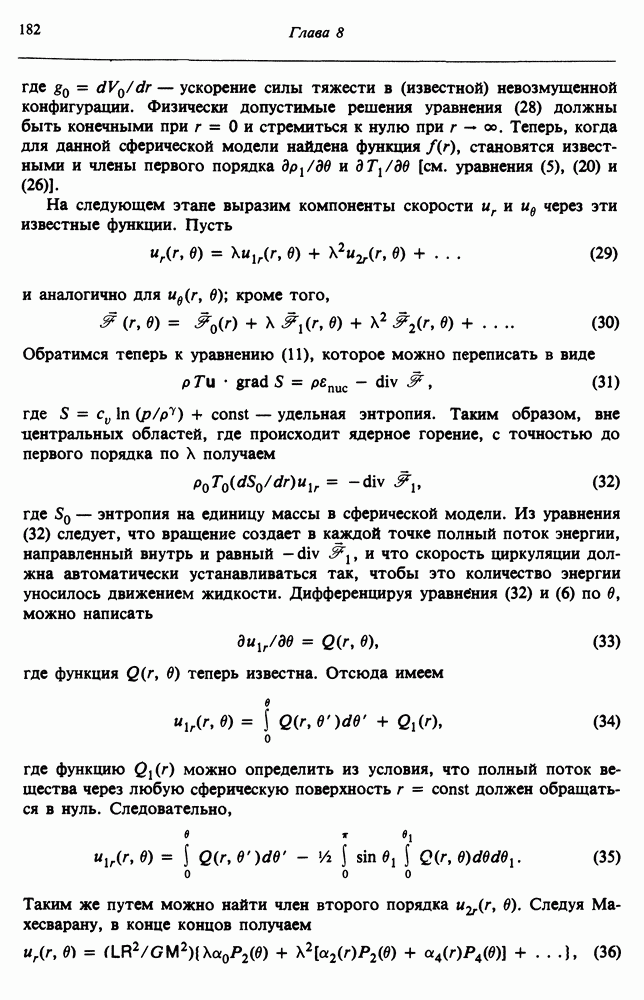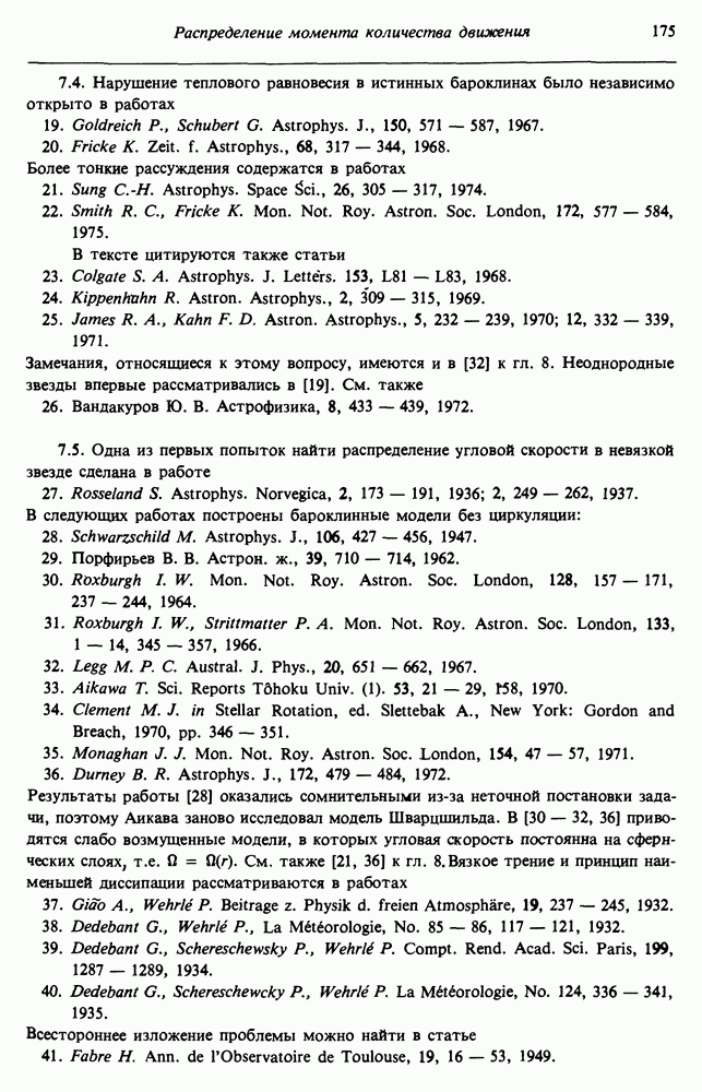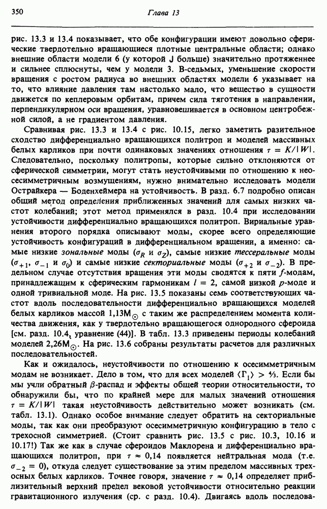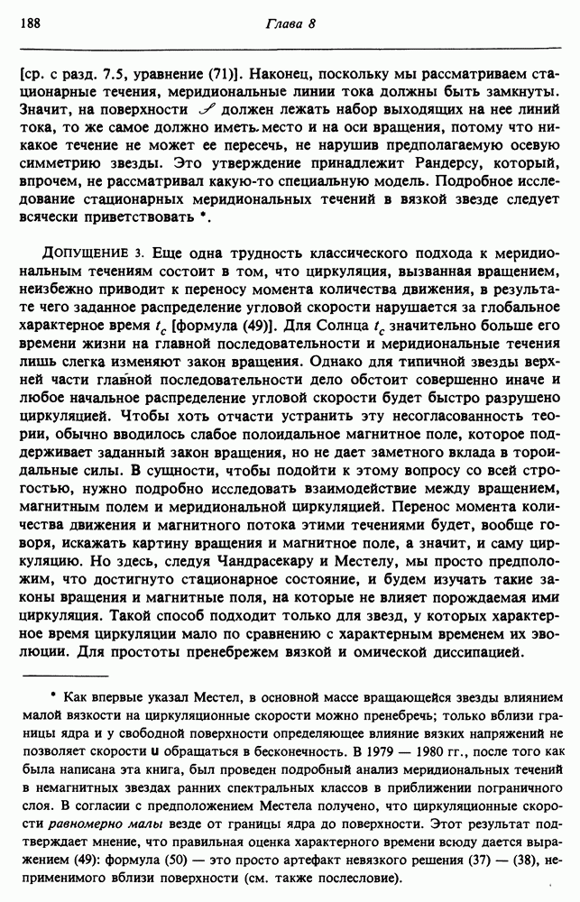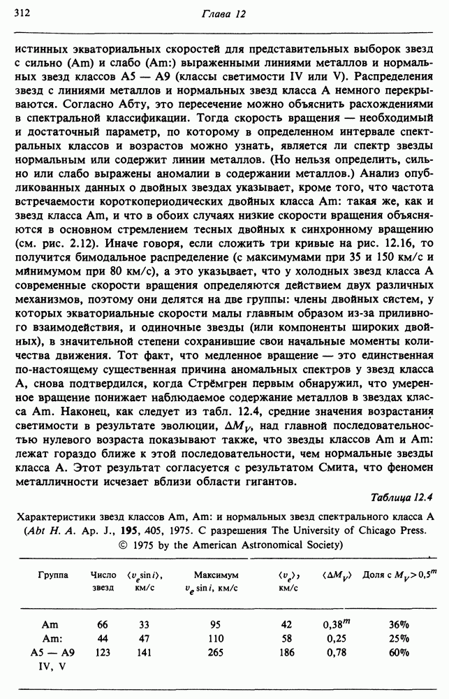 Благодаря появлению быстродействующих вычислительных машин в нашем понимании внутреннего строения и эволюции вращающихся звезд достигнут значительный прогресс. Однако, как указывалось в гл. 7, истинное распределение момента количества движения внутри звезды все еще практически не известно, поэтому во всех предлагавшихся до сих пор моделях закон вращения всегда задается ad hoc. Другими словами, даже самые подробные вычисления носят еще весьма предварительный характер, в сущности их задача — только оценить самые важные изменения, вызываемые вращением в моделях звезд. В разд. 12.2 рассматриваются изменения внутренних слоев химически однородных звезд главной последовательности под действием вращения. Следующий раздел посвящен влиянию вращения на наблюдаемые параметры, которые зависят от угла между осью вращения и лучом зрения. В разд. 12.4 рассматриваются аномально низкие скорости вращения звезд классов