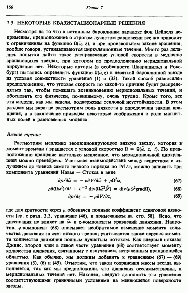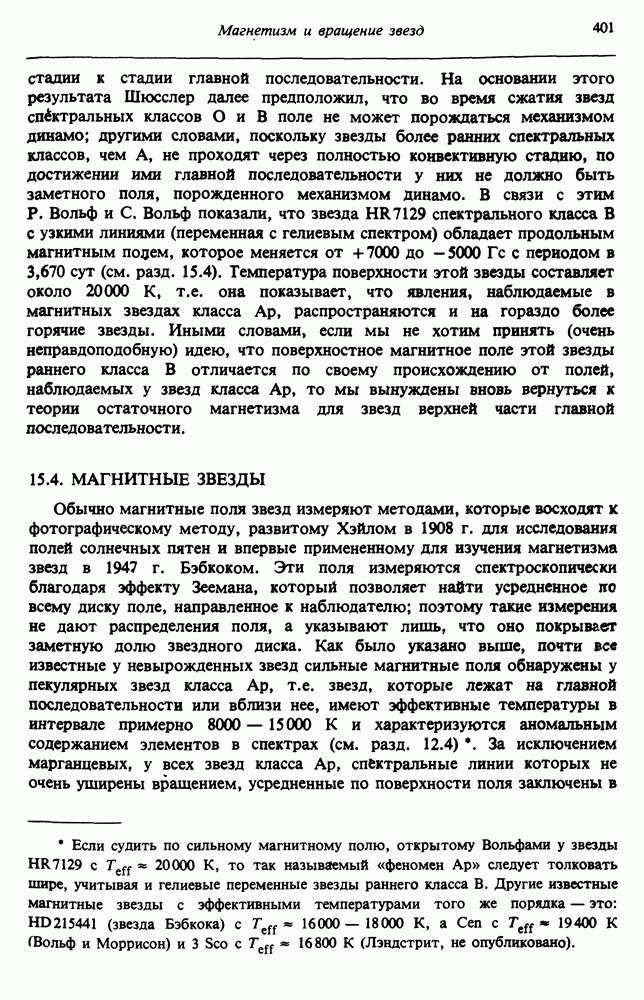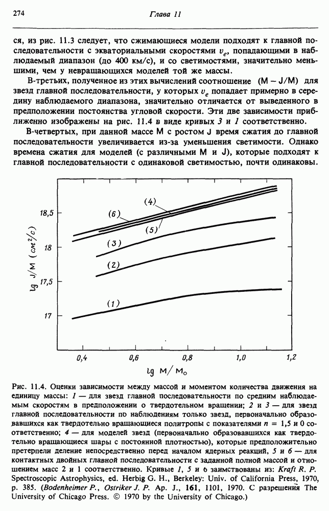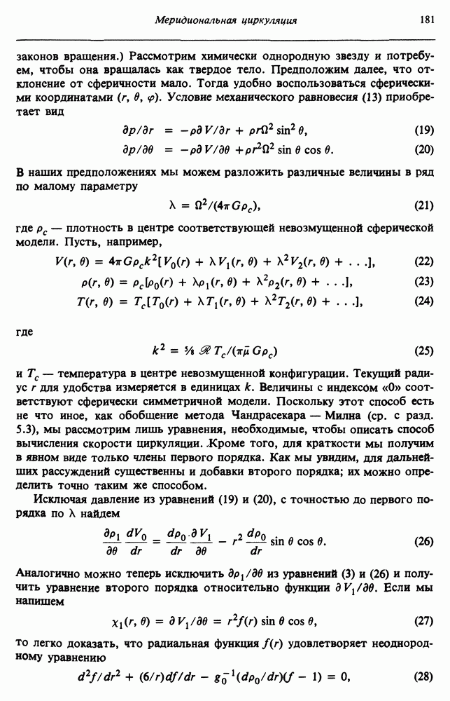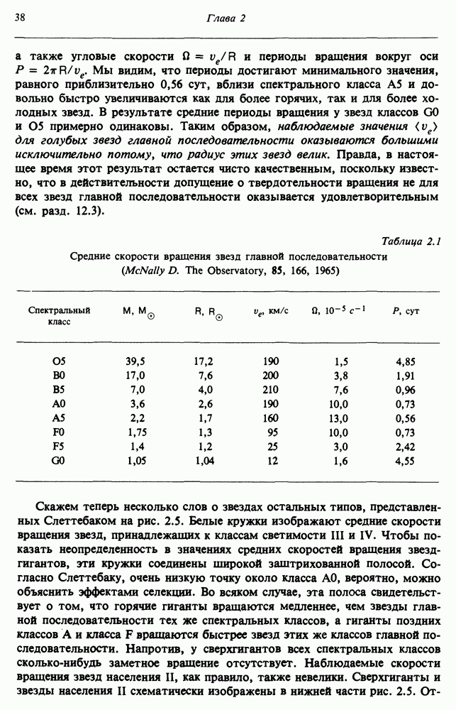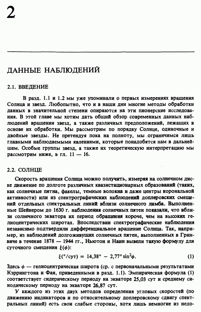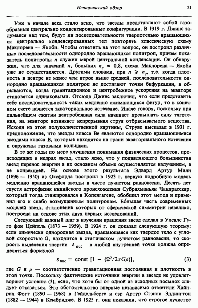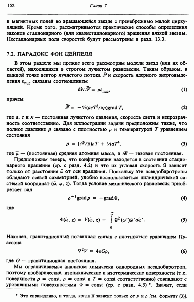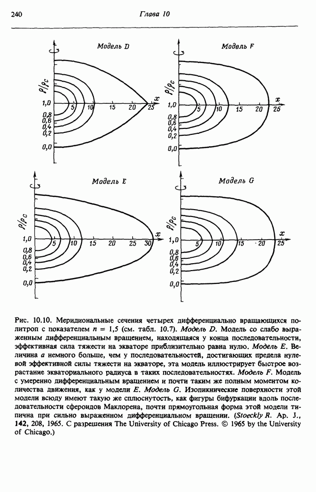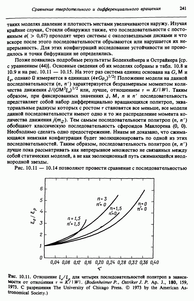 Благодаря появлению быстродействующих вычислительных машин в нашем понимании внутреннего строения и эволюции вращающихся звезд достигнут значительный прогресс. Однако, как указывалось в гл. 7, истинное распределение момента количества движения внутри звезды все еще практически не известно, поэтому во всех предлагавшихся до сих пор моделях закон вращения всегда задается ad hoc. Другими словами, даже самые подробные вычисления носят еще весьма предварительный характер, в сущности их задача — только оценить самые важные изменения, вызываемые вращением в моделях звезд. В разд. 12.2 рассматриваются изменения внутренних слоев химически однородных звезд главной последовательности под действием вращения. Следующий раздел посвящен влиянию вращения на наблюдаемые параметры, которые зависят от угла между осью вращения и лучом зрения. В разд. 12.4 рассматриваются аномально низкие скорости вращения звезд классов