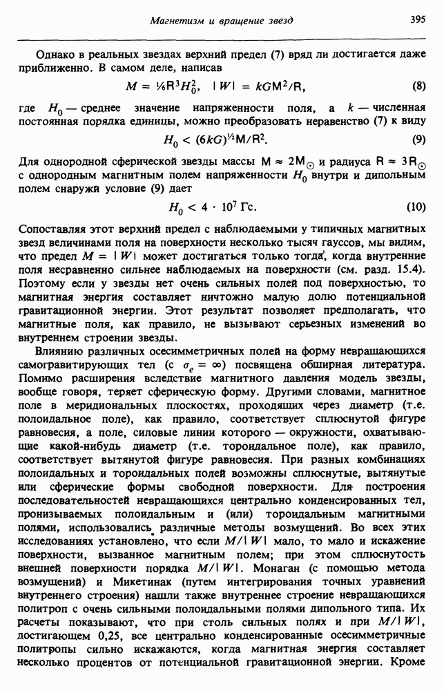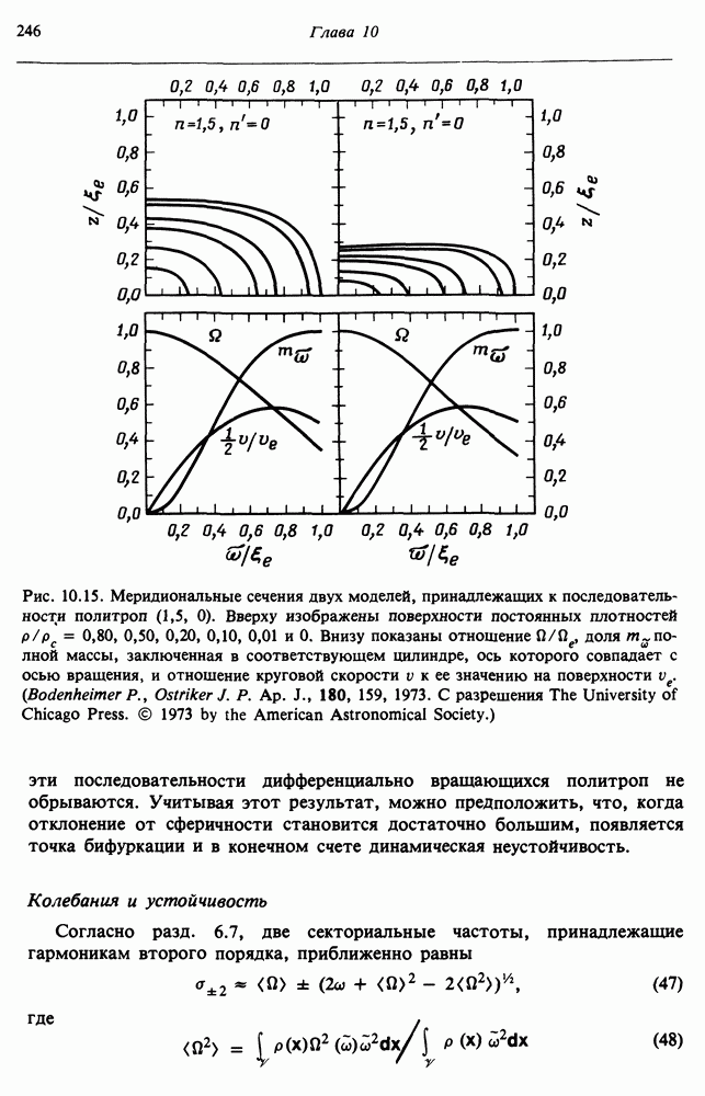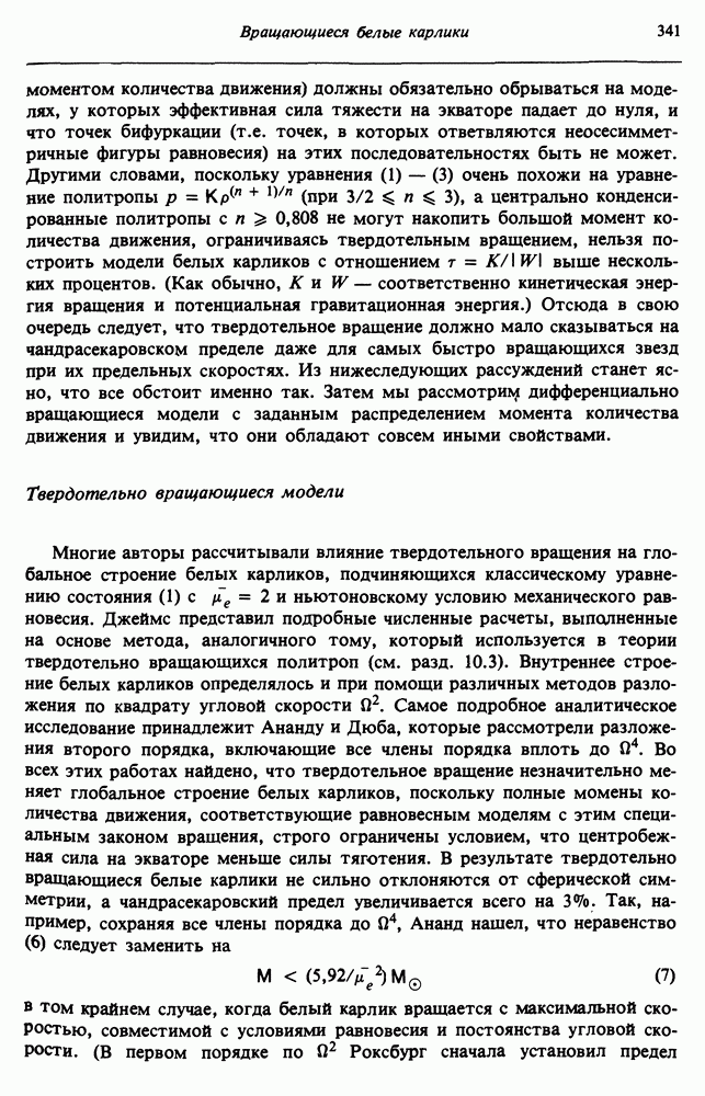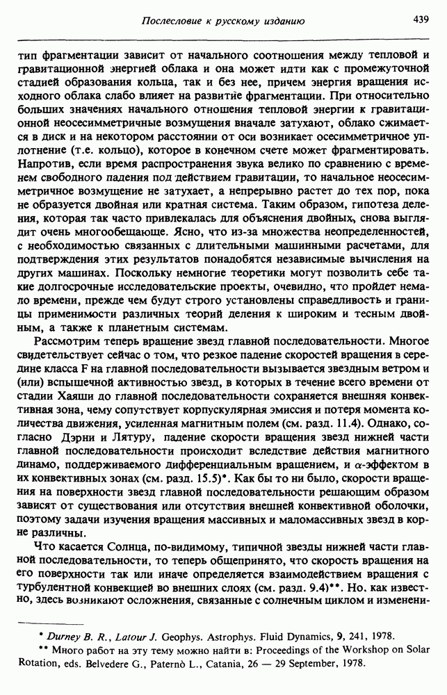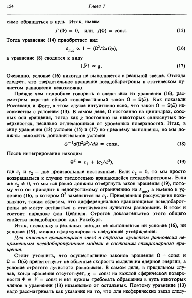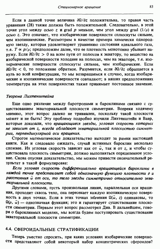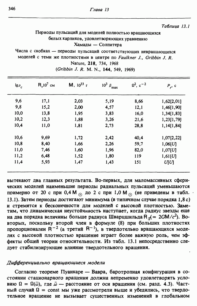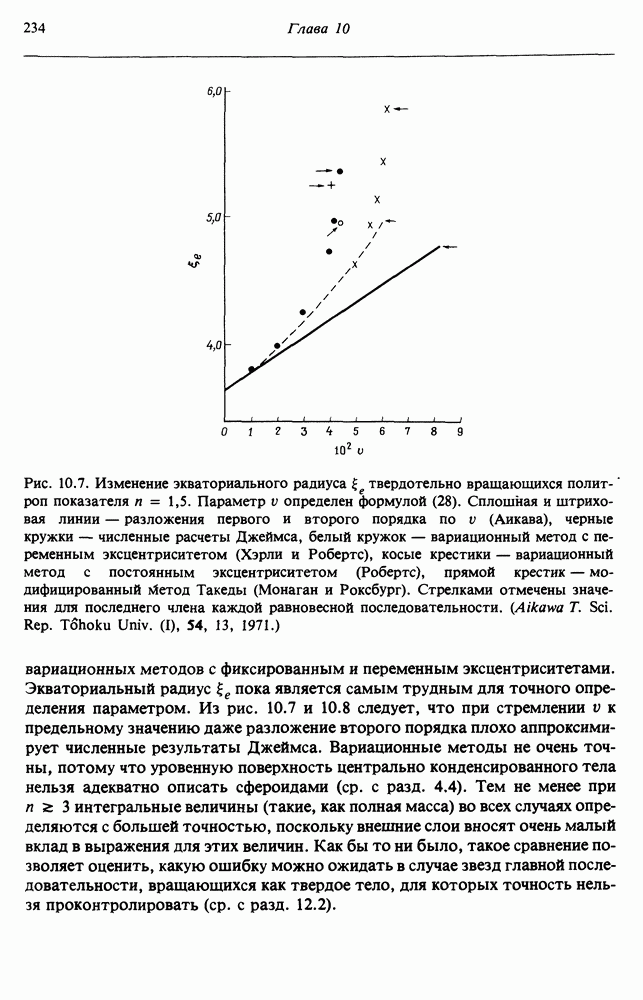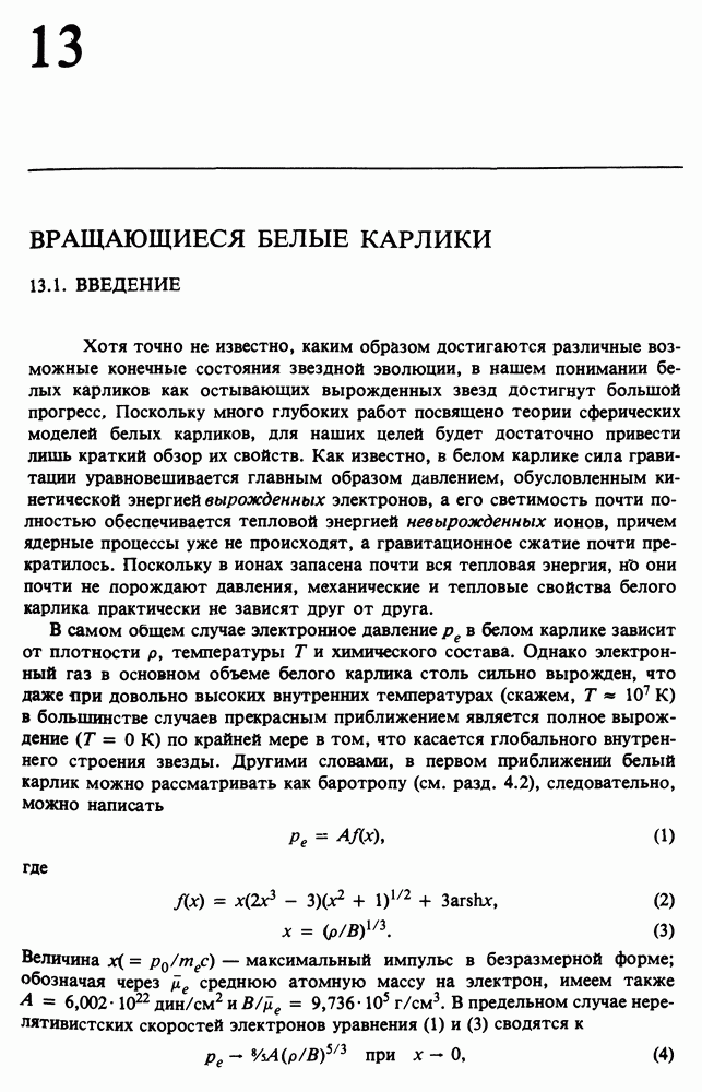 Благодаря появлению быстродействующих вычислительных машин в нашем понимании внутреннего строения и эволюции вращающихся звезд достигнут значительный прогресс. Однако, как указывалось в гл. 7, истинное распределение момента количества движения внутри звезды все еще практически не известно, поэтому во всех предлагавшихся до сих пор моделях закон вращения всегда задается ad hoc. Другими словами, даже самые подробные вычисления носят еще весьма предварительный характер, в сущности их задача — только оценить самые важные изменения, вызываемые вращением в моделях звезд. В разд. 12.2 рассматриваются изменения внутренних слоев химически однородных звезд главной последовательности под действием вращения. Следующий раздел посвящен влиянию вращения на наблюдаемые параметры, которые зависят от угла между осью вращения и лучом зрения. В разд. 12.4 рассматриваются аномально низкие скорости вращения звезд классов