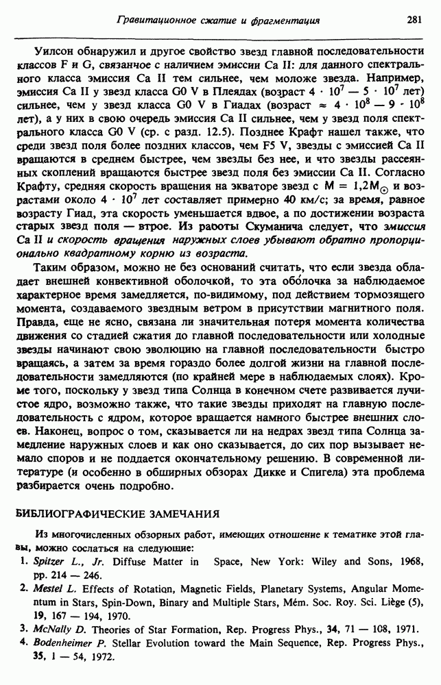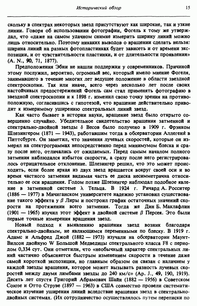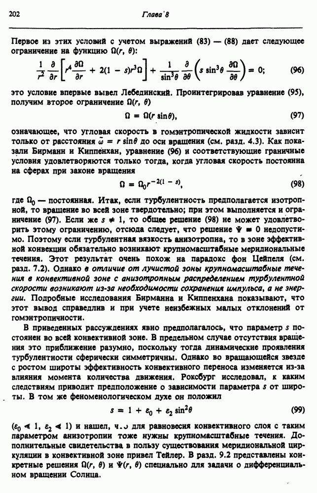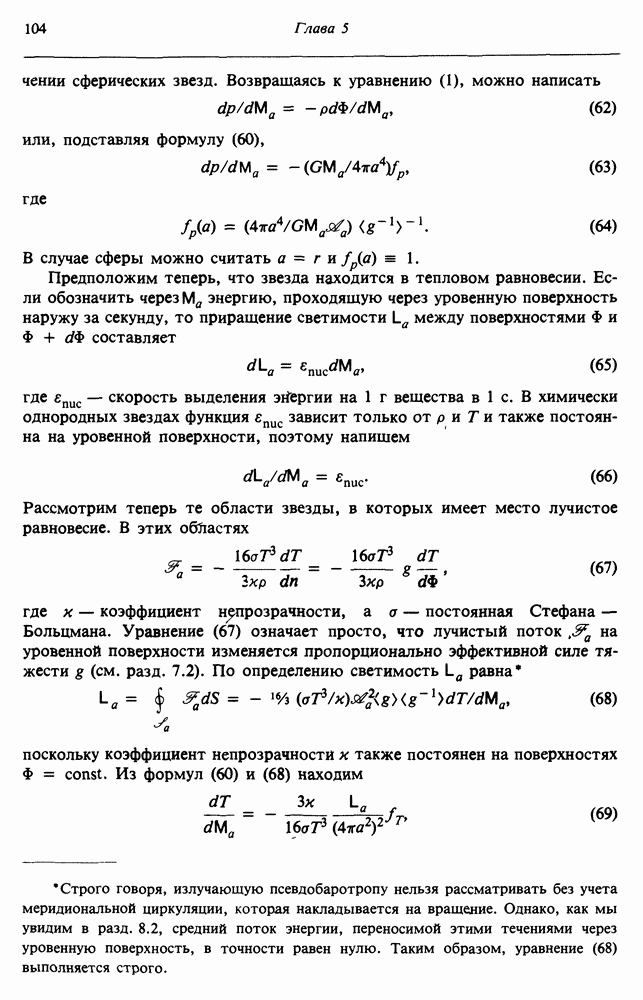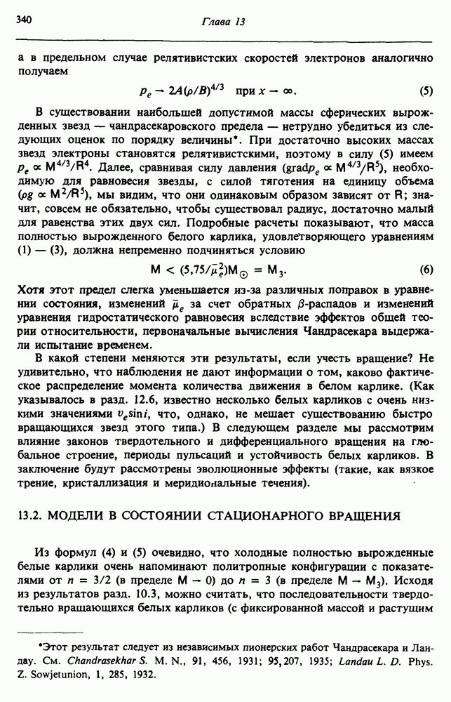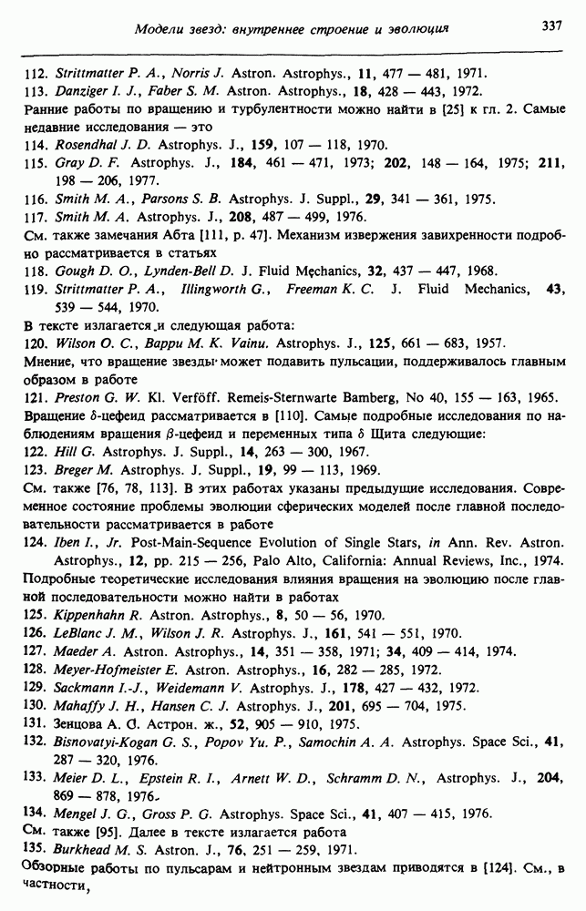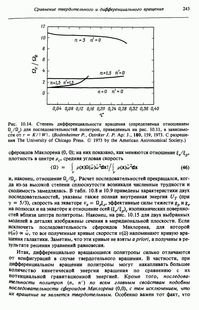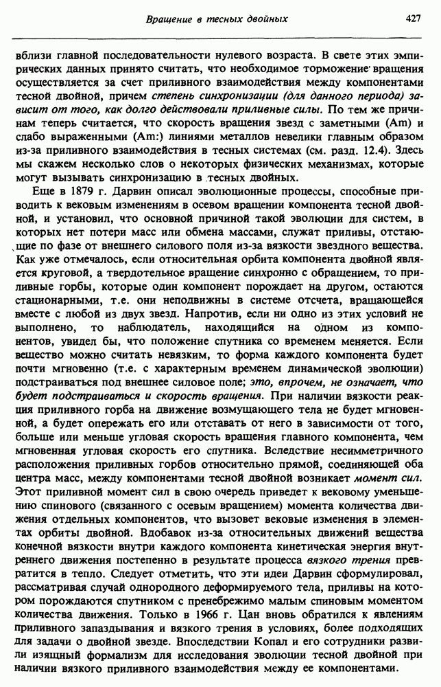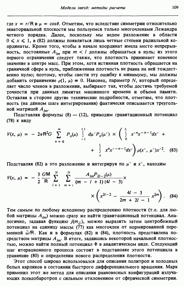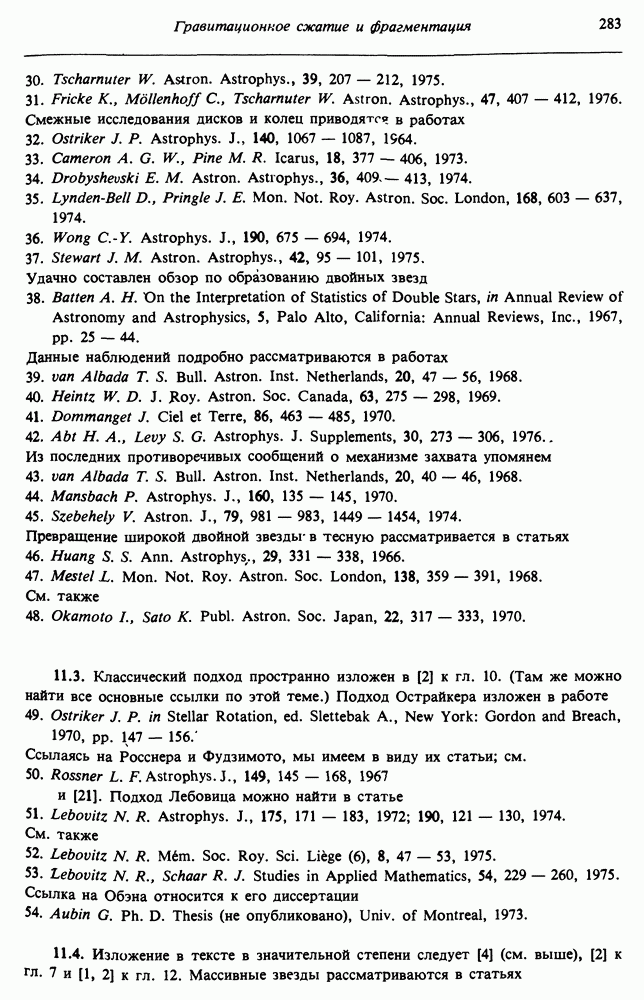Благодаря появлению быстродействующих вычислительных машин в нашем понимании внутреннего строения и эволюции вращающихся звезд достигнут значительный прогресс. Однако, как указывалось в гл. 7, истинное распределение момента количества движения внутри звезды все еще практически не известно, поэтому во всех предлагавшихся до сих пор моделях закон вращения всегда задается ad hoc. Другими словами, даже самые подробные вычисления носят еще весьма предварительный характер, в сущности их задача — только оценить самые важные изменения, вызываемые вращением в моделях звезд. В разд. 12.2 рассматриваются изменения внутренних слоев химически однородных звезд главной последовательности под действием вращения. Следующий раздел посвящен влиянию вращения на наблюдаемые параметры, которые зависят от угла между осью вращения и лучом зрения. В разд. 12.4 рассматриваются аномально низкие скорости вращения звезд классов