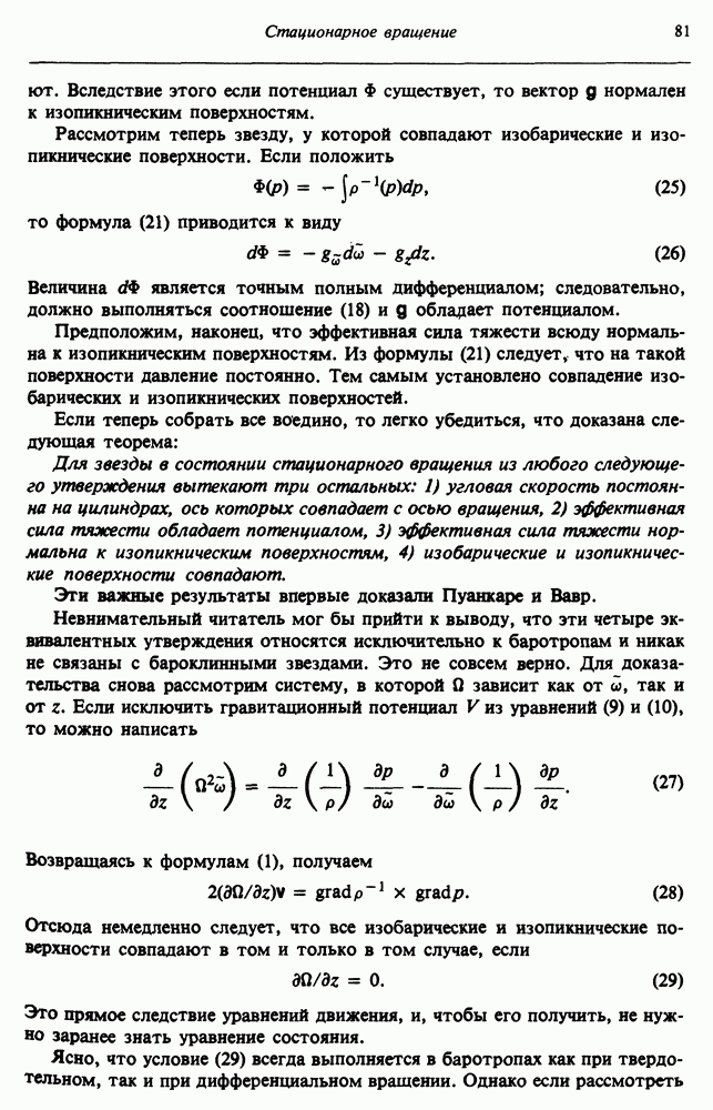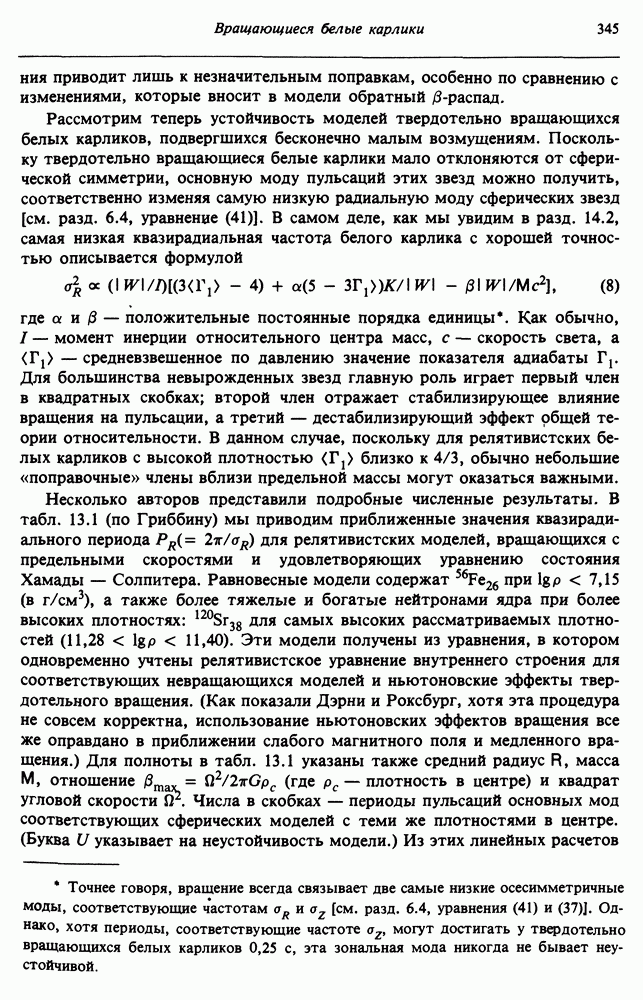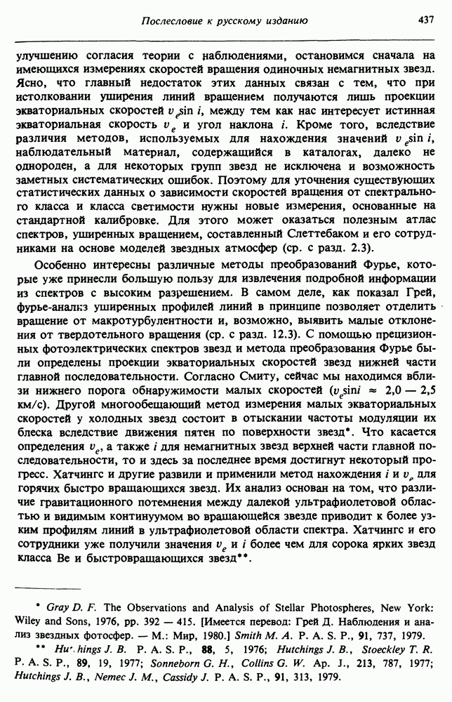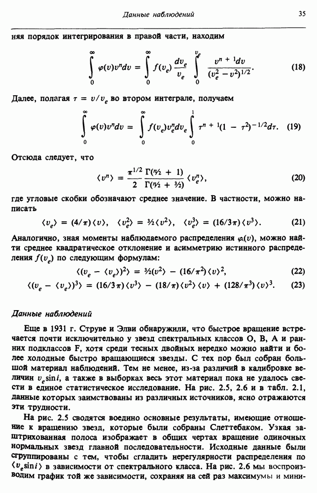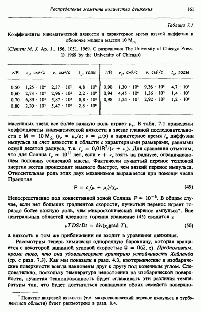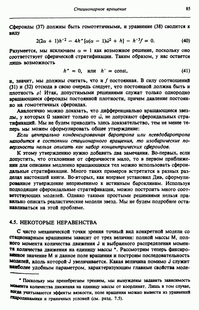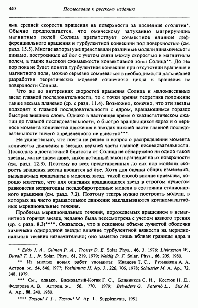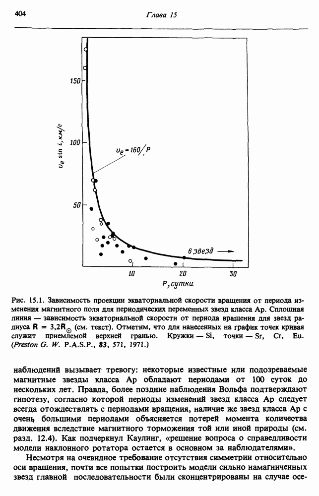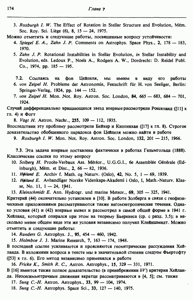 Благодаря появлению быстродействующих вычислительных машин в нашем понимании внутреннего строения и эволюции вращающихся звезд достигнут значительный прогресс. Однако, как указывалось в гл. 7, истинное распределение момента количества движения внутри звезды все еще практически не известно, поэтому во всех предлагавшихся до сих пор моделях закон вращения всегда задается ad hoc. Другими словами, даже самые подробные вычисления носят еще весьма предварительный характер, в сущности их задача — только оценить самые важные изменения, вызываемые вращением в моделях звезд. В разд. 12.2 рассматриваются изменения внутренних слоев химически однородных звезд главной последовательности под действием вращения. Следующий раздел посвящен влиянию вращения на наблюдаемые параметры, которые зависят от угла между осью вращения и лучом зрения. В разд. 12.4 рассматриваются аномально низкие скорости вращения звезд классов