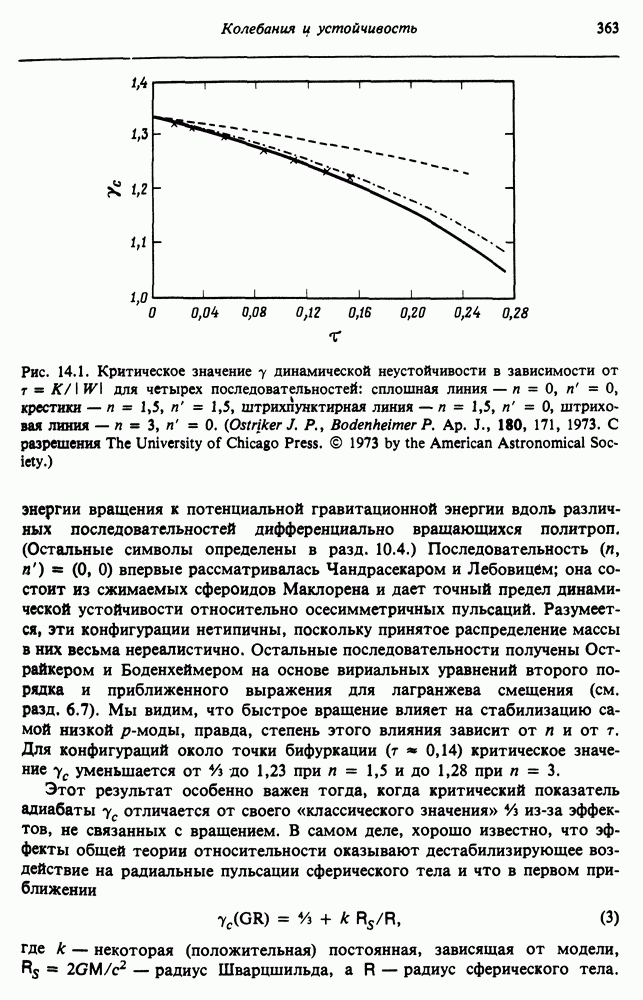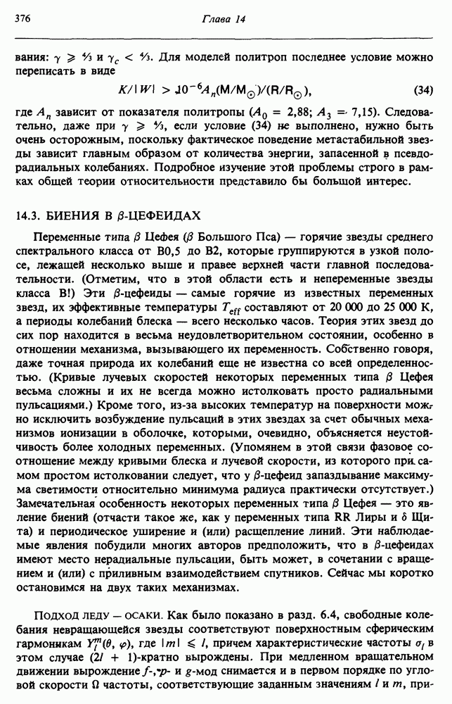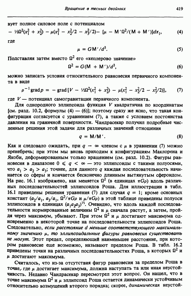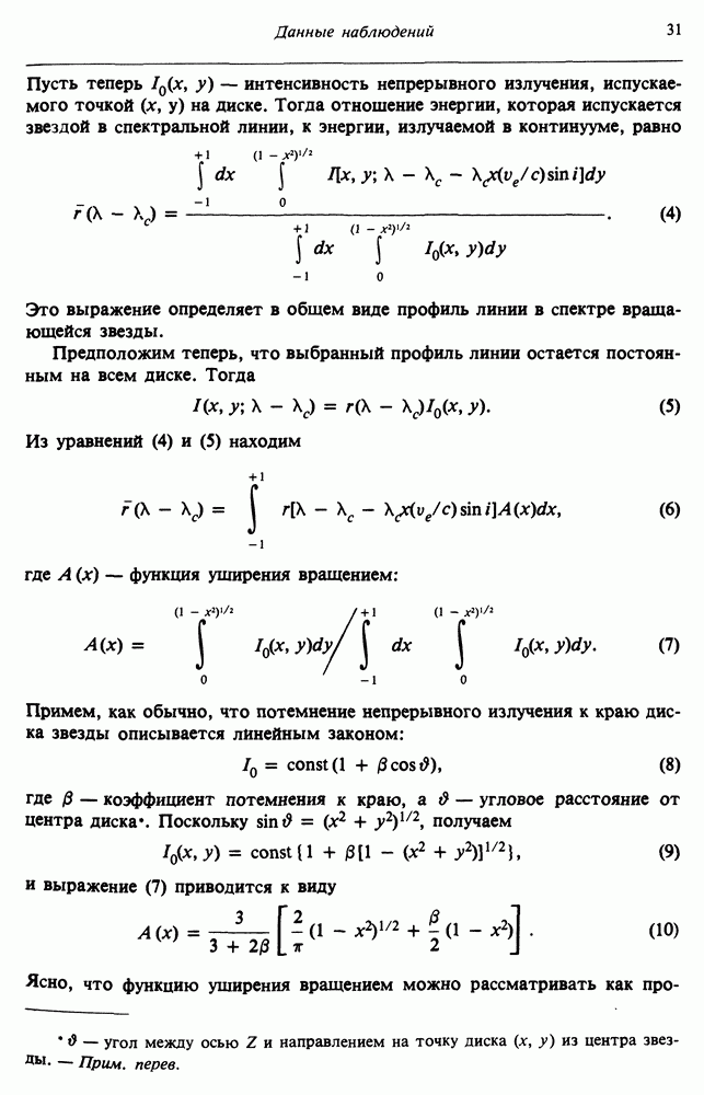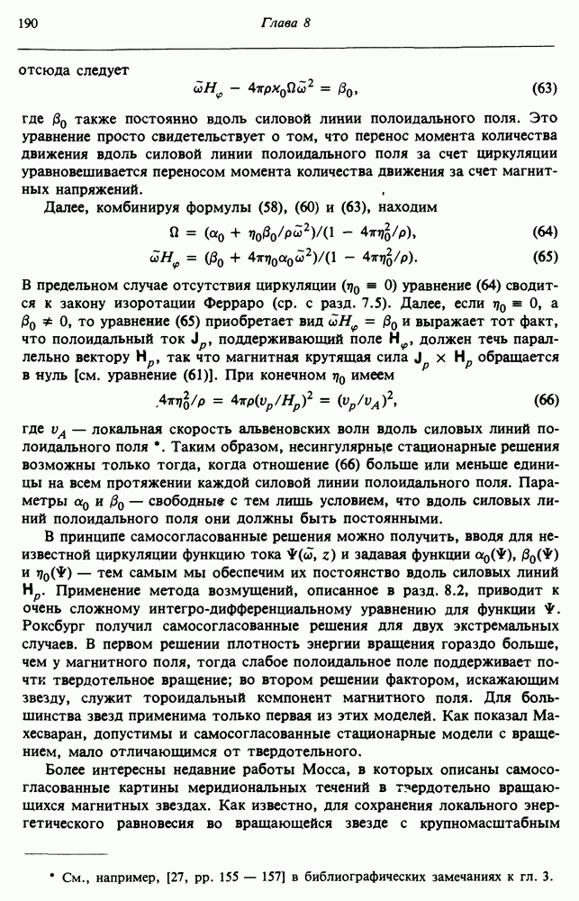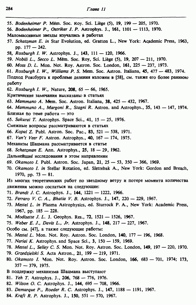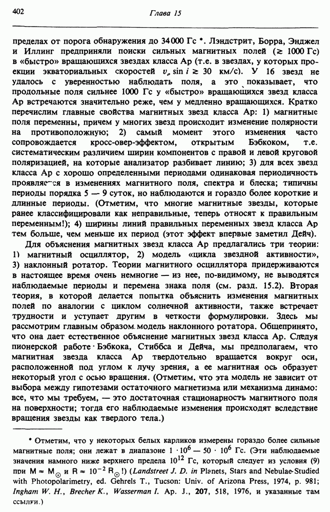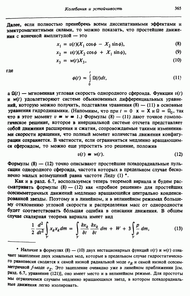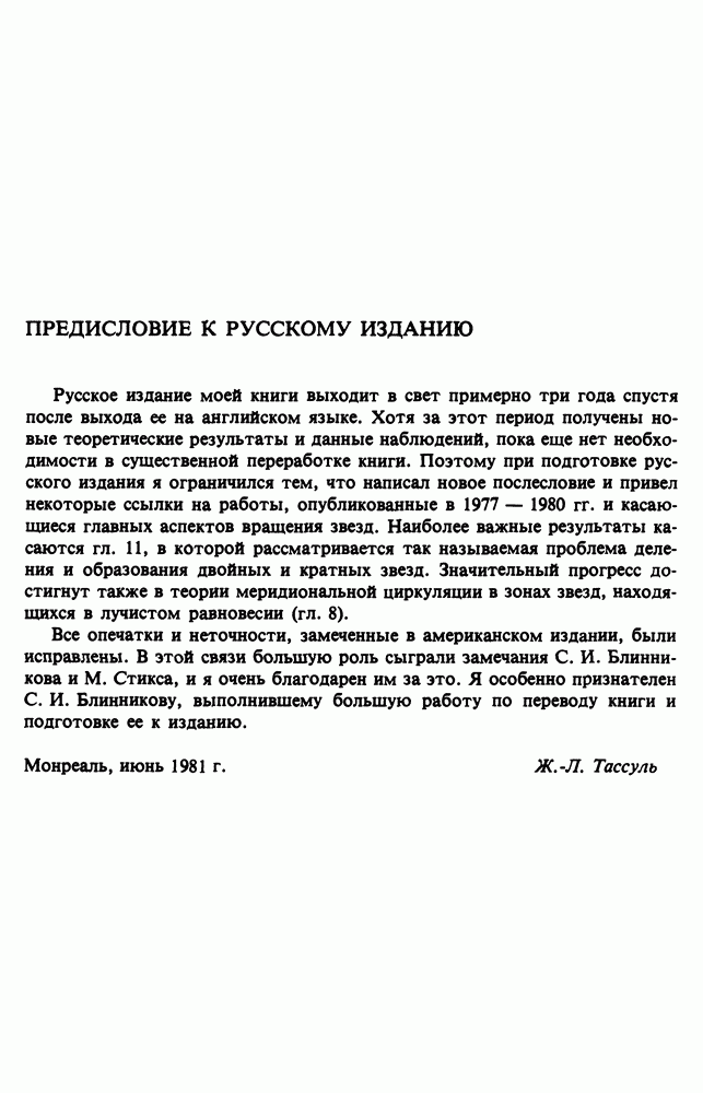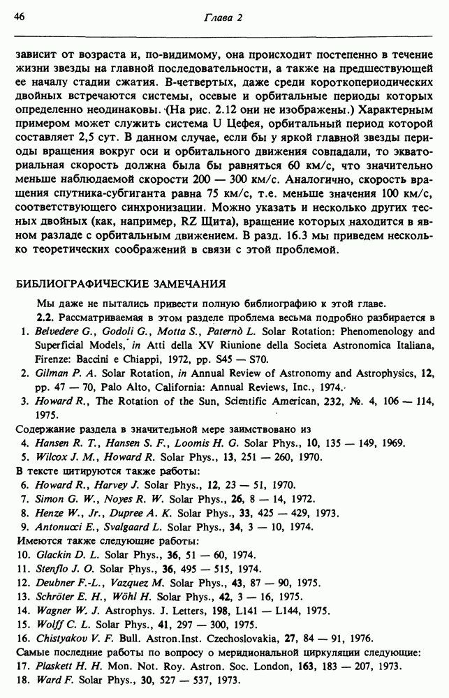 Благодаря появлению быстродействующих вычислительных машин в нашем понимании внутреннего строения и эволюции вращающихся звезд достигнут значительный прогресс. Однако, как указывалось в гл. 7, истинное распределение момента количества движения внутри звезды все еще практически не известно, поэтому во всех предлагавшихся до сих пор моделях закон вращения всегда задается ad hoc. Другими словами, даже самые подробные вычисления носят еще весьма предварительный характер, в сущности их задача — только оценить самые важные изменения, вызываемые вращением в моделях звезд. В разд. 12.2 рассматриваются изменения внутренних слоев химически однородных звезд главной последовательности под действием вращения. Следующий раздел посвящен влиянию вращения на наблюдаемые параметры, которые зависят от угла между осью вращения и лучом зрения. В разд. 12.4 рассматриваются аномально низкие скорости вращения звезд классов