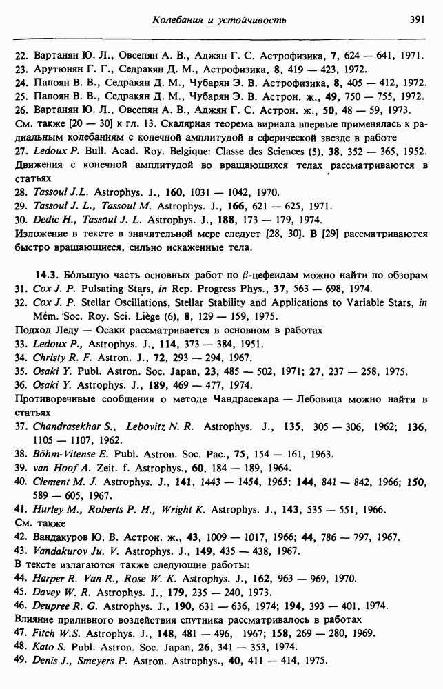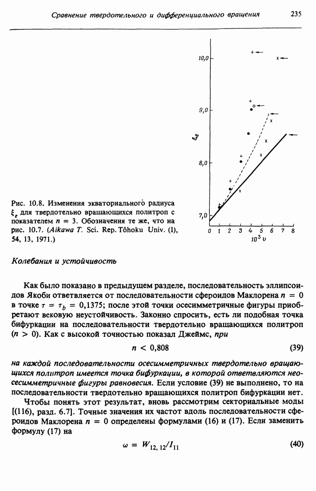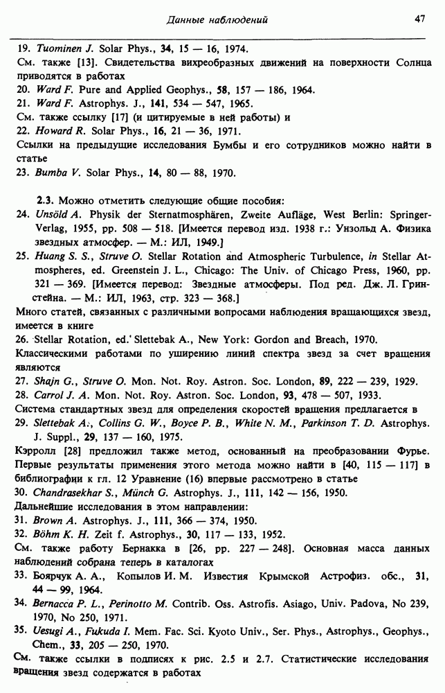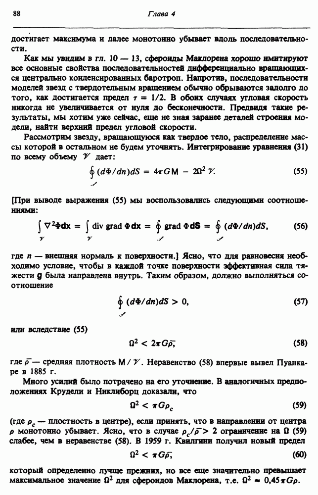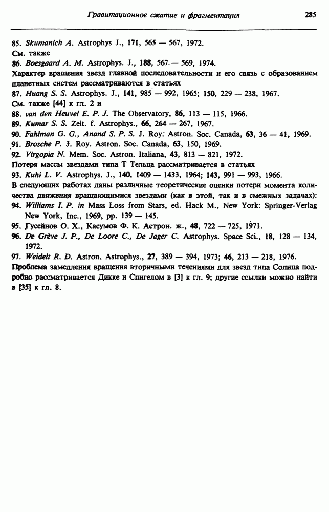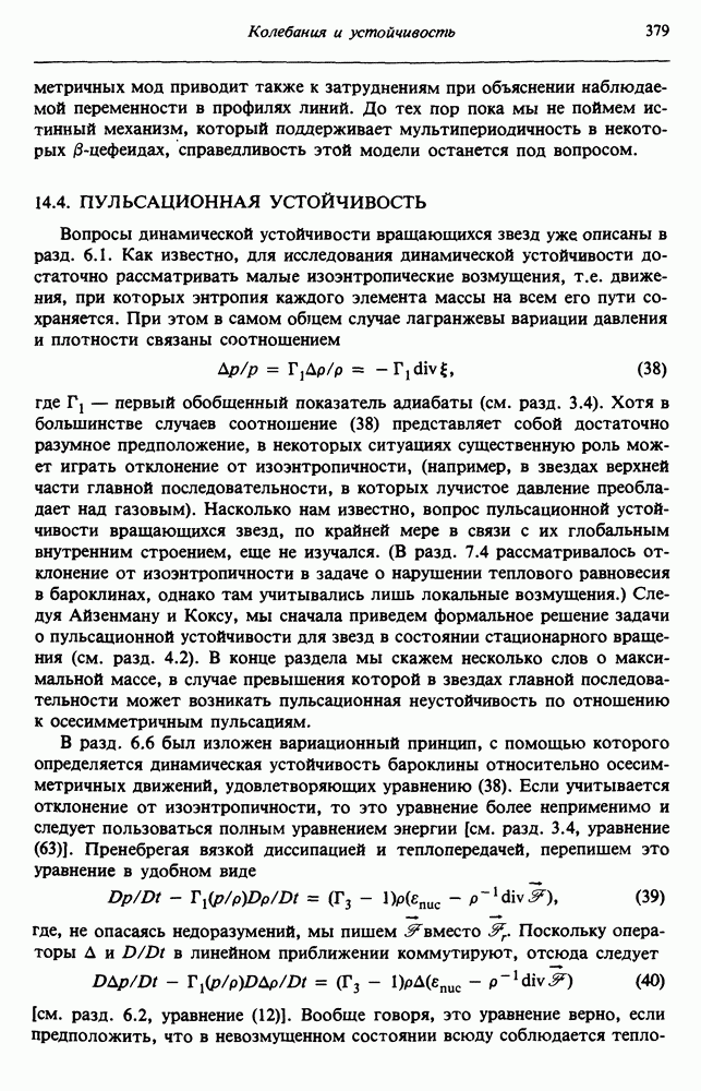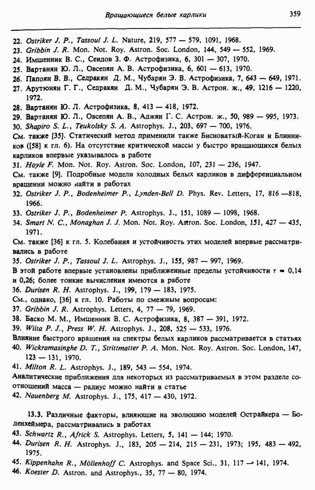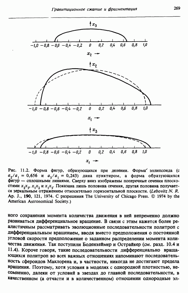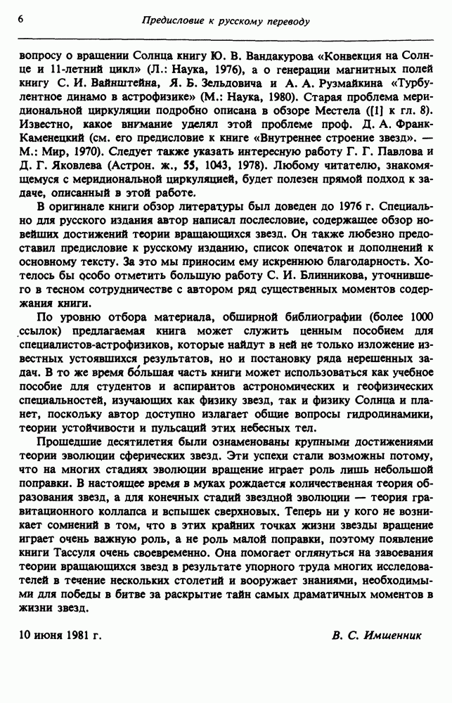Благодаря появлению быстродействующих вычислительных машин в нашем понимании внутреннего строения и эволюции вращающихся звезд достигнут значительный прогресс. Однако, как указывалось в гл. 7, истинное распределение момента количества движения внутри звезды все еще практически не известно, поэтому во всех предлагавшихся до сих пор моделях закон вращения всегда задается ad hoc. Другими словами, даже самые подробные вычисления носят еще весьма предварительный характер, в сущности их задача — только оценить самые важные изменения, вызываемые вращением в моделях звезд. В разд. 12.2 рассматриваются изменения внутренних слоев химически однородных звезд главной последовательности под действием вращения. Следующий раздел посвящен влиянию вращения на наблюдаемые параметры, которые зависят от угла между осью вращения и лучом зрения. В разд. 12.4 рассматриваются аномально низкие скорости вращения звезд классов