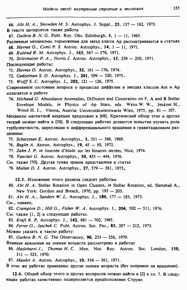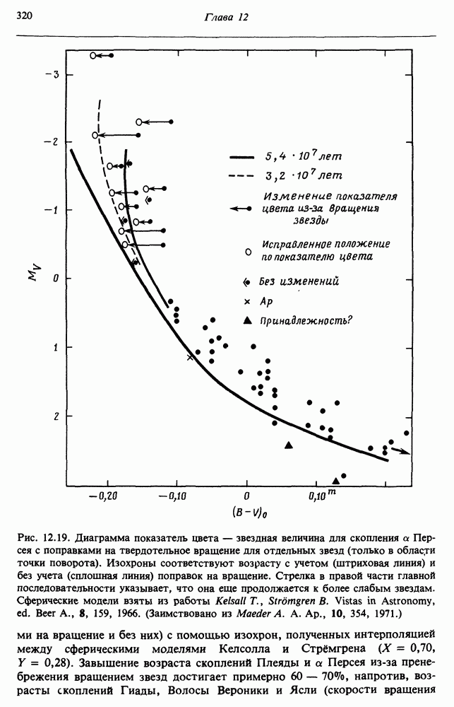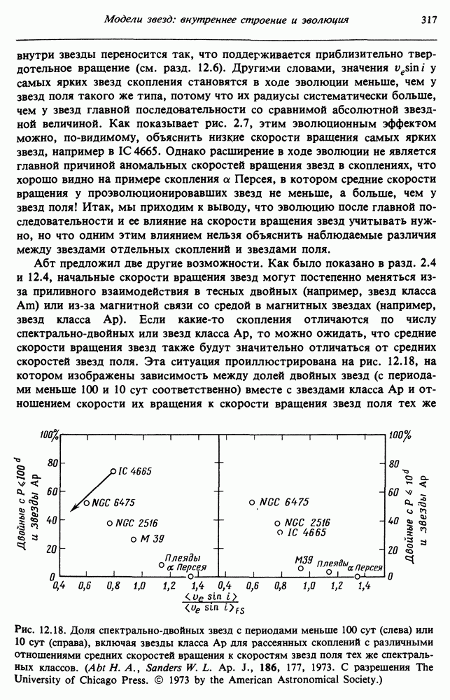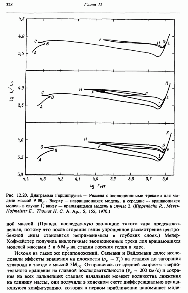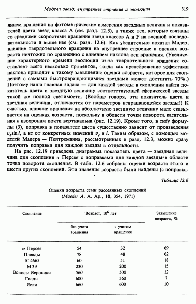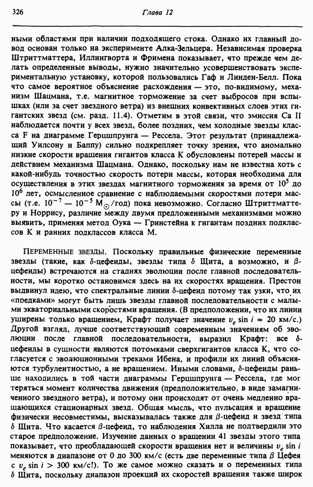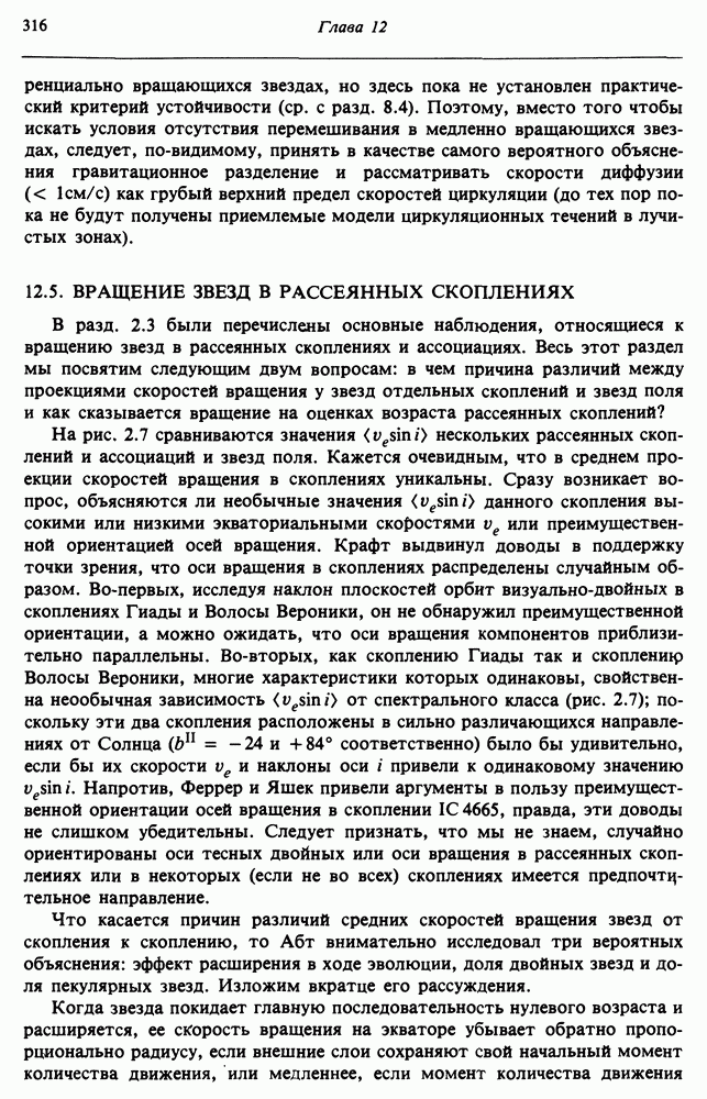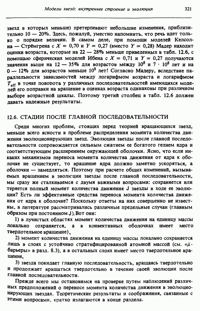 В разд. 12.5 изучаются эффекты вращения в звездах рассеянных скоплений. Мы завершаем главу общим анализом роли вращения на стадиях эволюции звезд после главной последовательности. Предполагается, что читатель уже знаком с теорией сферических звездных моделей.
