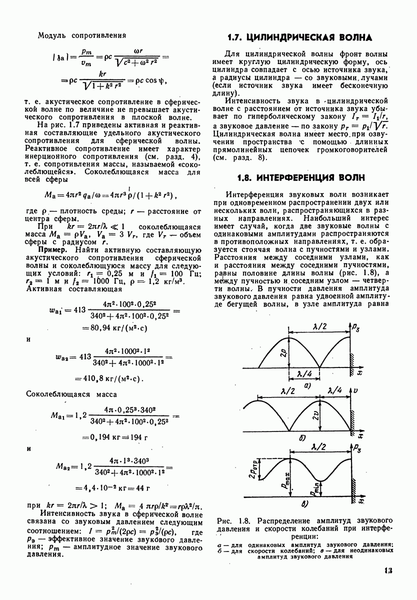 что соответствует углу 3°. На средних частотах для расстояний больше Удельное акустическое сопротивление в сферической волне