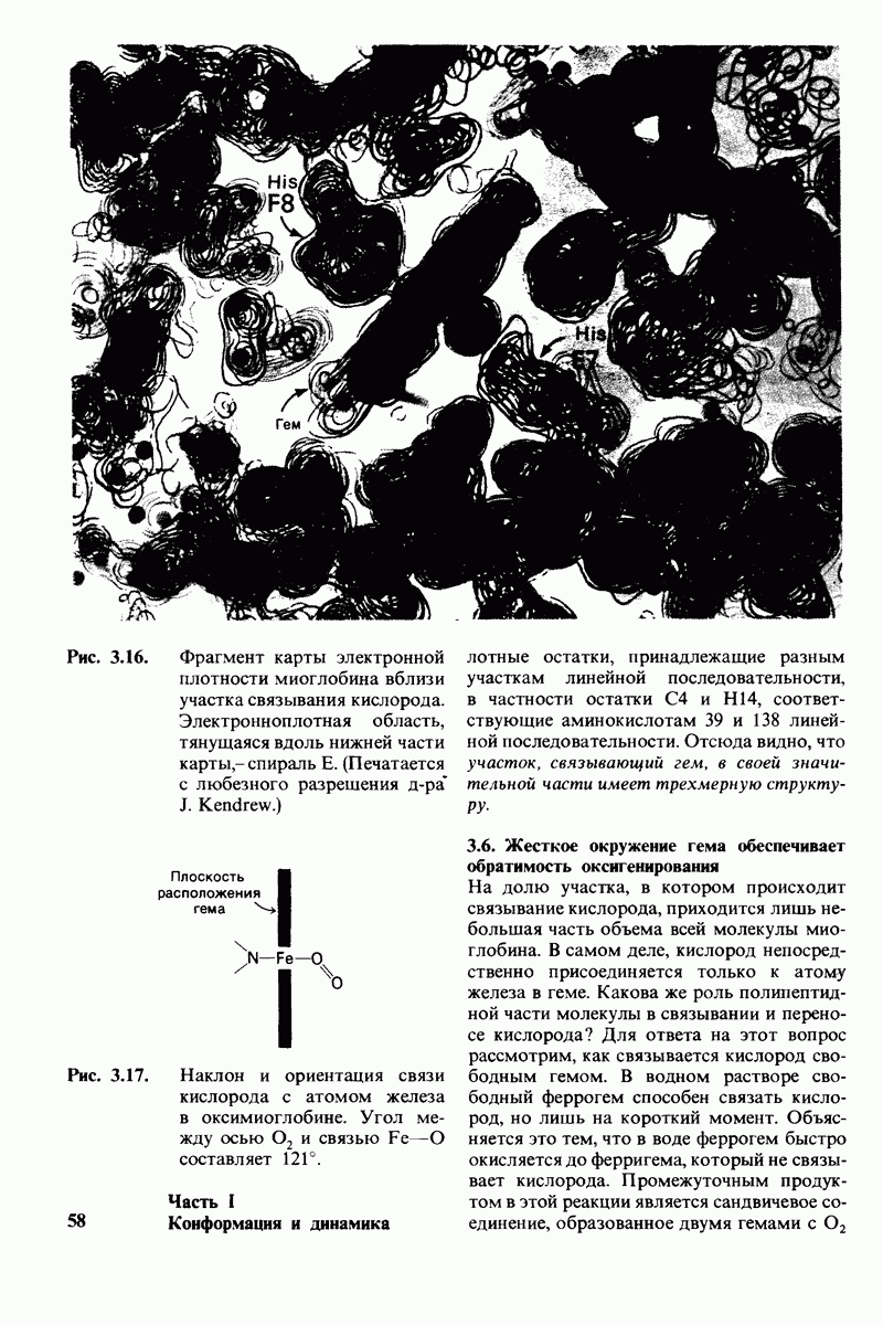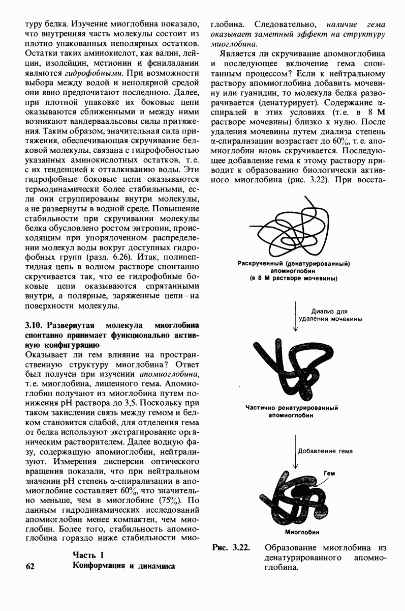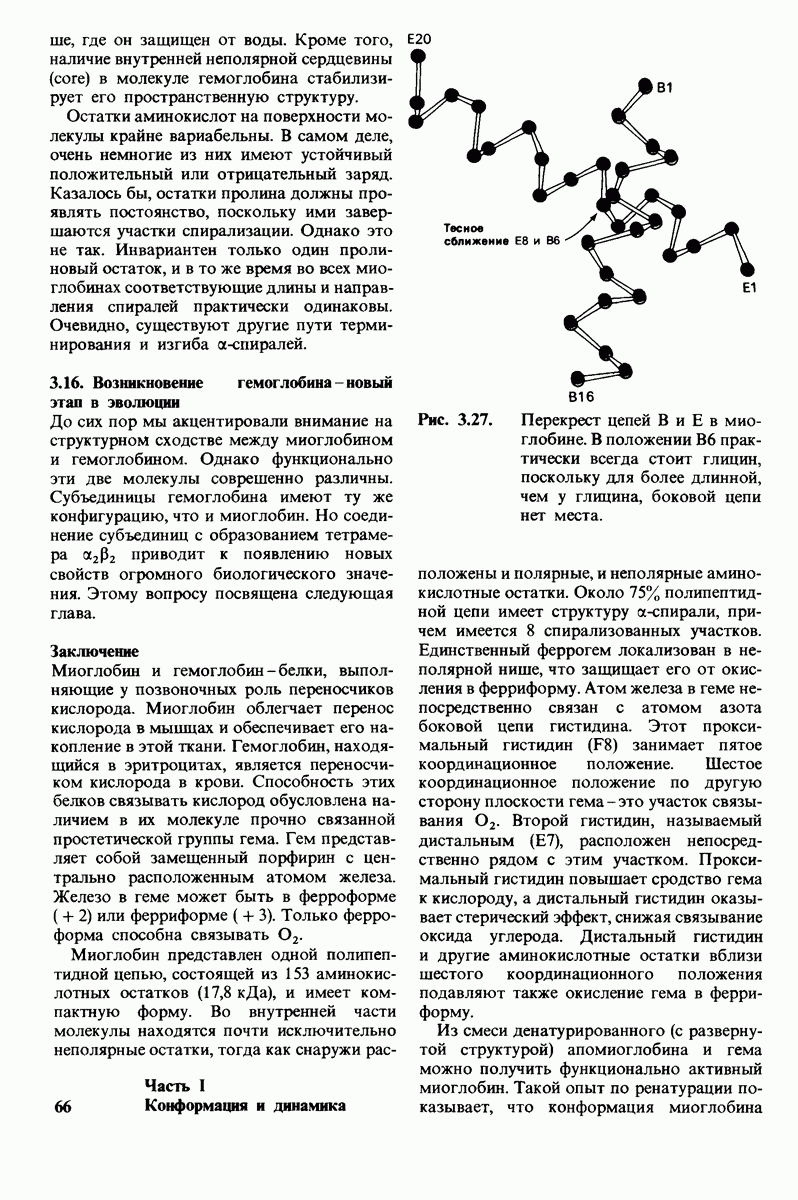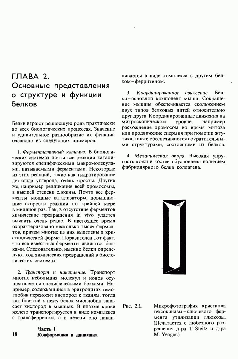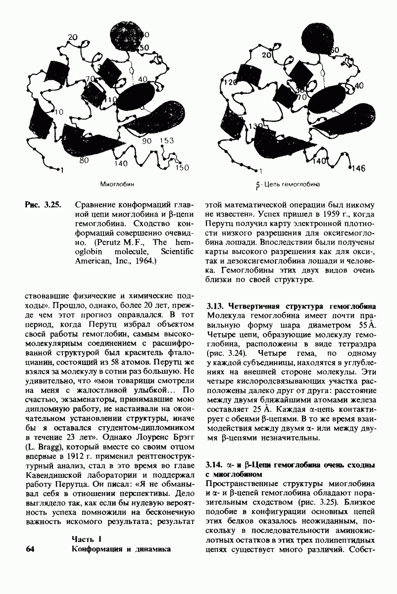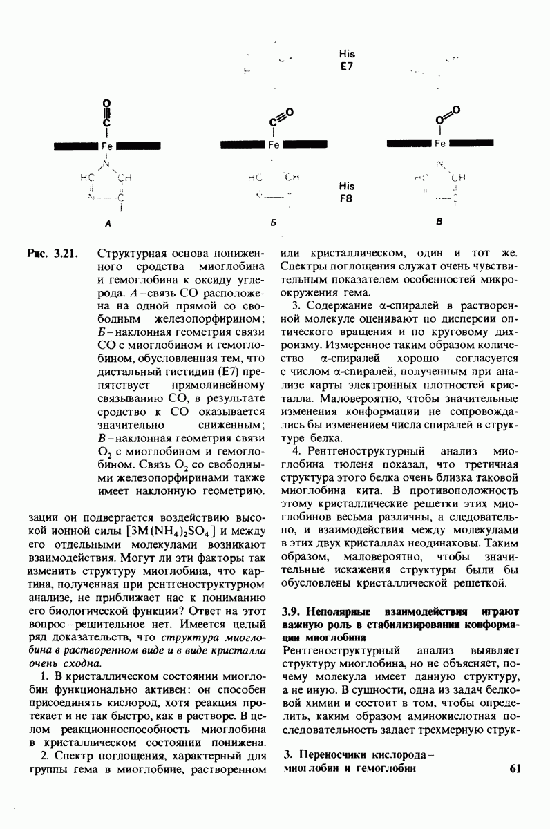 и между его отдельными молекулами возникают взаимодействия, Могут ли эти факторы так изменить структуру миоглобина, что картина, полученная при рентгеноструктурном анализе, не приближает нас к пониманию его биологической функции? Ответ на этот вопрос - решительное нет. Имеется целый ряд доказательств, что структура миоглобина в растворенном виде и в виде кристалла очень сходна.