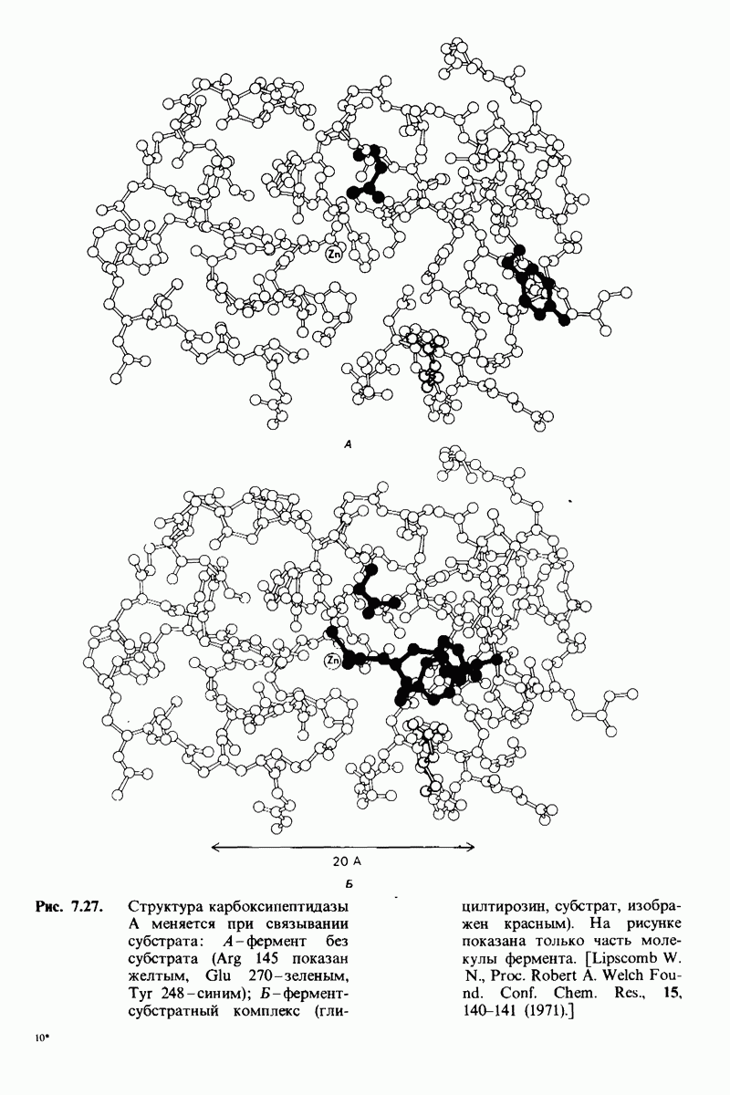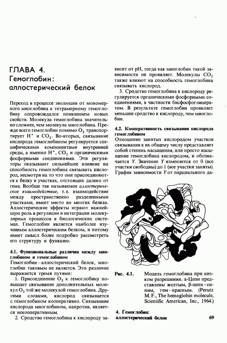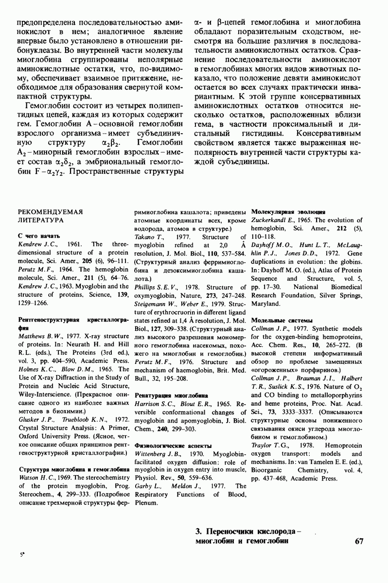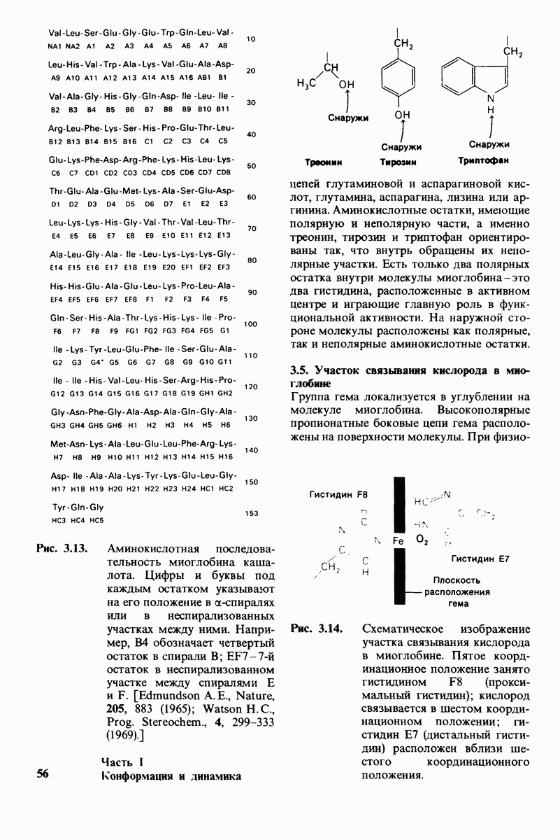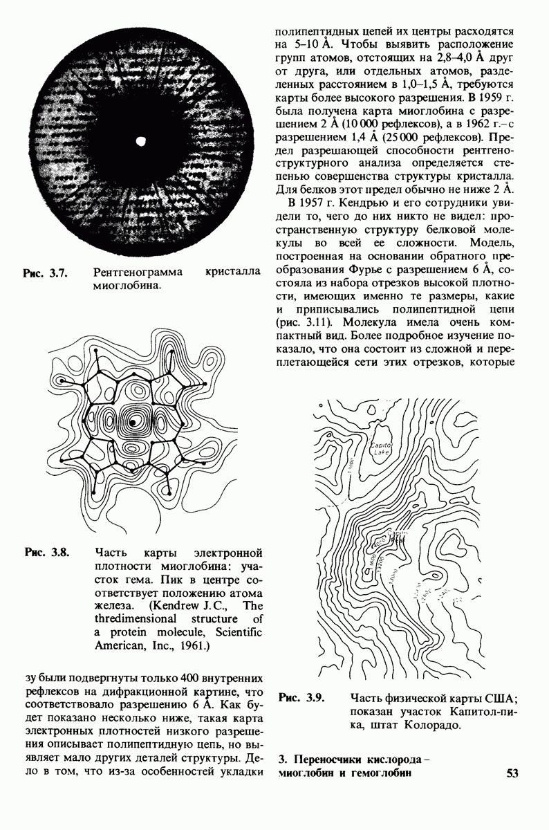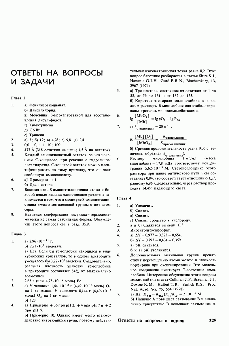 и между его отдельными молекулами возникают взаимодействия, Могут ли эти факторы так изменить структуру миоглобина, что картина, полученная при рентгеноструктурном анализе, не приближает нас к пониманию его биологической функции? Ответ на этот вопрос - решительное нет. Имеется целый ряд доказательств, что структура миоглобина в растворенном виде и в виде кристалла очень сходна.
