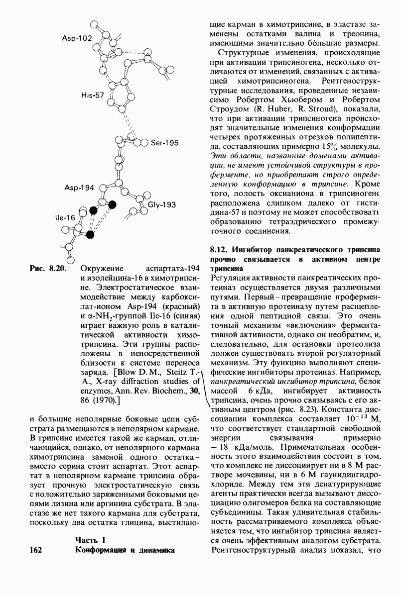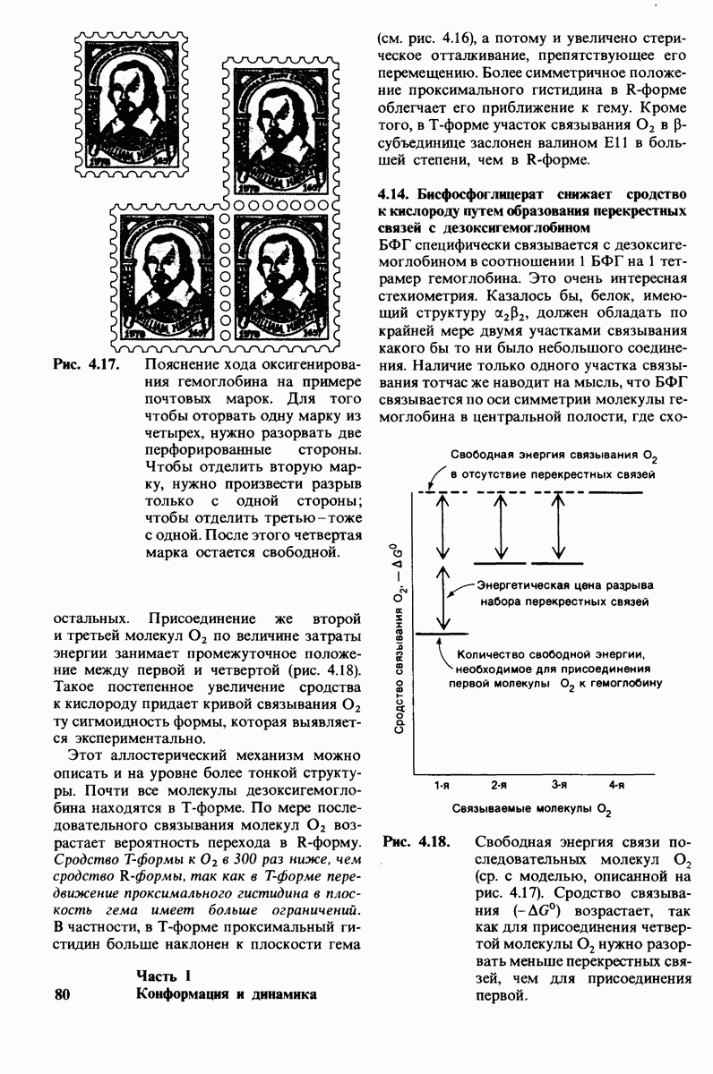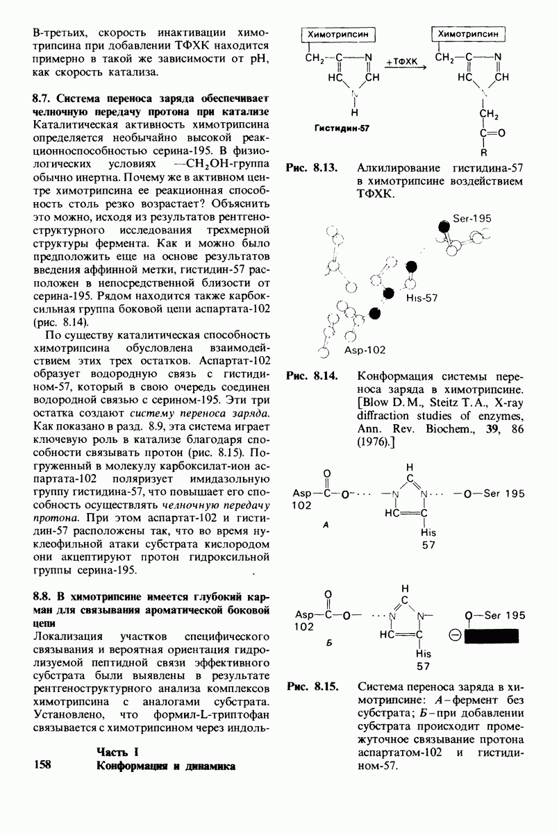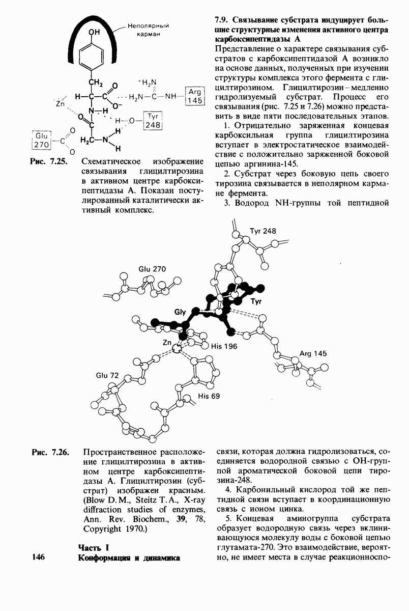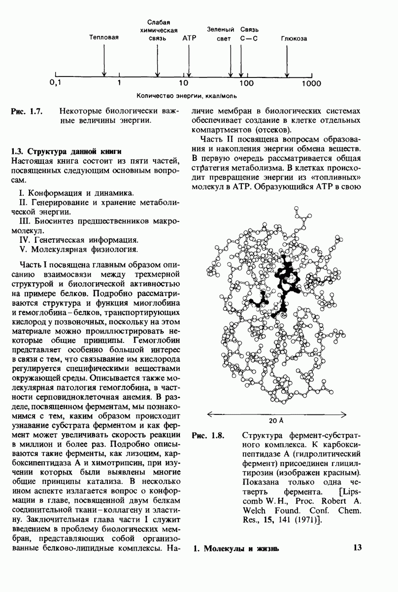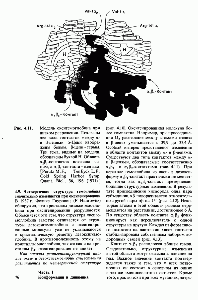 и между его отдельными молекулами возникают взаимодействия, Могут ли эти факторы так изменить структуру миоглобина, что картина, полученная при рентгеноструктурном анализе, не приближает нас к пониманию его биологической функции? Ответ на этот вопрос - решительное нет. Имеется целый ряд доказательств, что структура миоглобина в растворенном виде и в виде кристалла очень сходна.