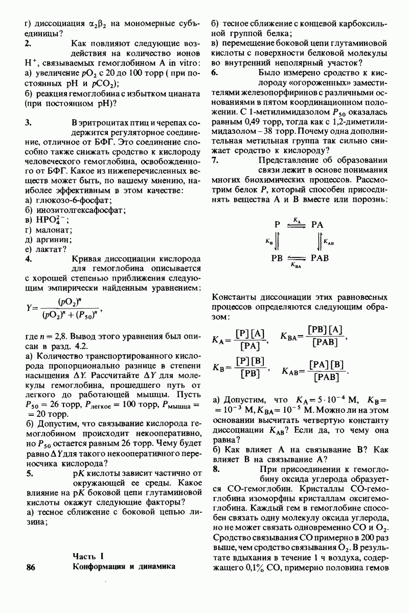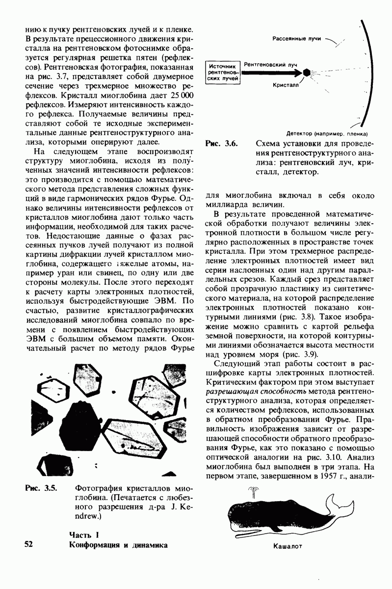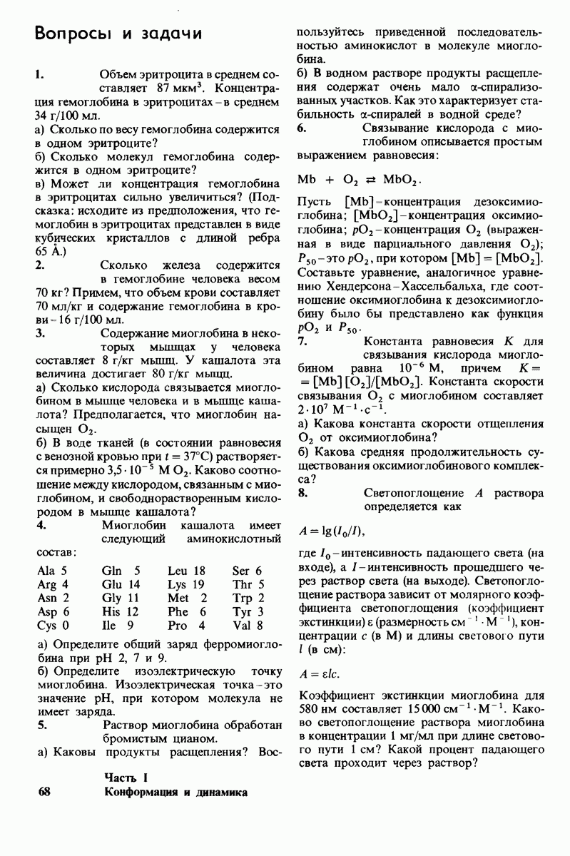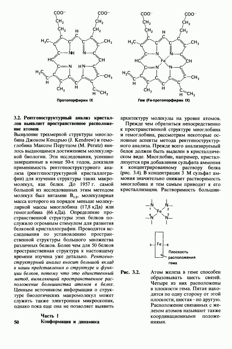 С помощью рентгеноструктурного анализа высокого разрешения была получена замечательно детальная, хотя статическая, картина молекулы миоглобина. Возникает существенный вопрос: имеет ли растворенный миоглобин такую же структуру, как миоглобин кристаллический? Кристаллический миоглобин отличается от растворенного в том отношении, что в процессе