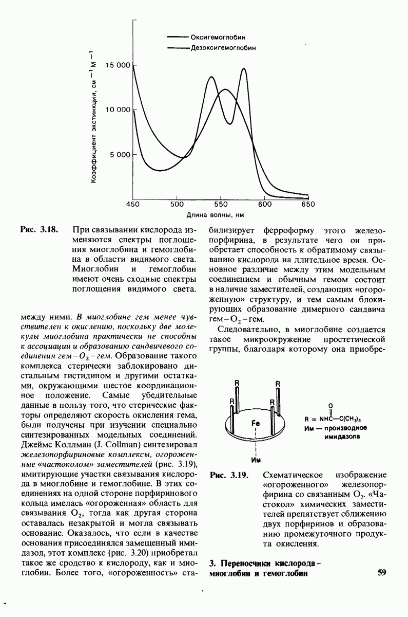 2. Спектр поглощения, характерный для группы гема в миоглобине, растворенном или кристаллическом, один и тот же. Спектры поглощения служат очень чувствительным показателем особенностей микроокружения гема,