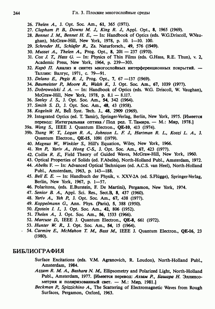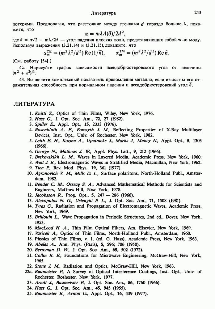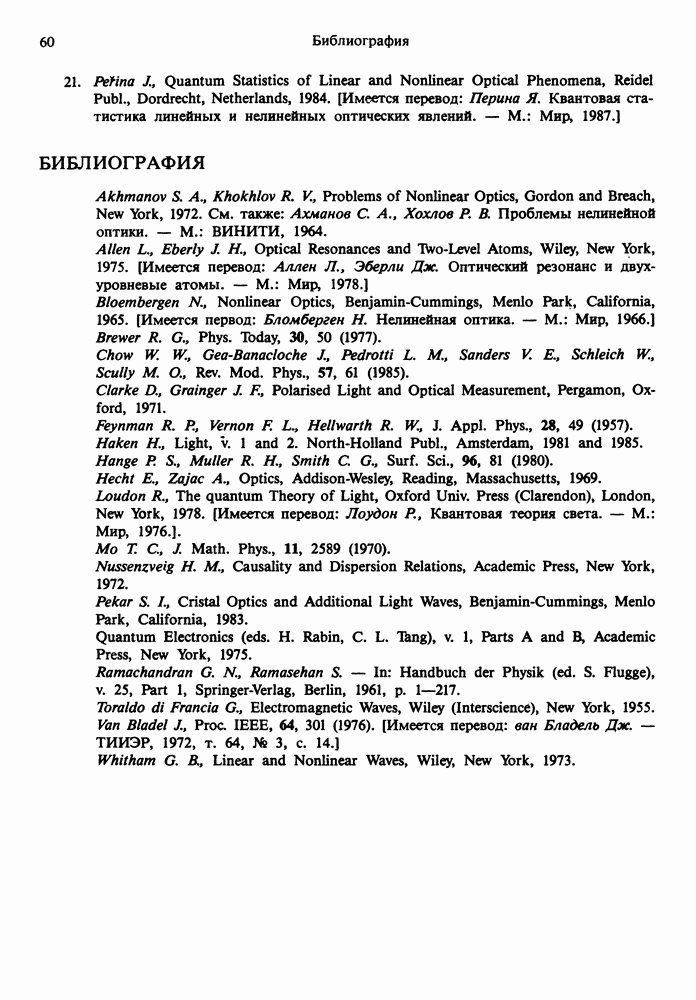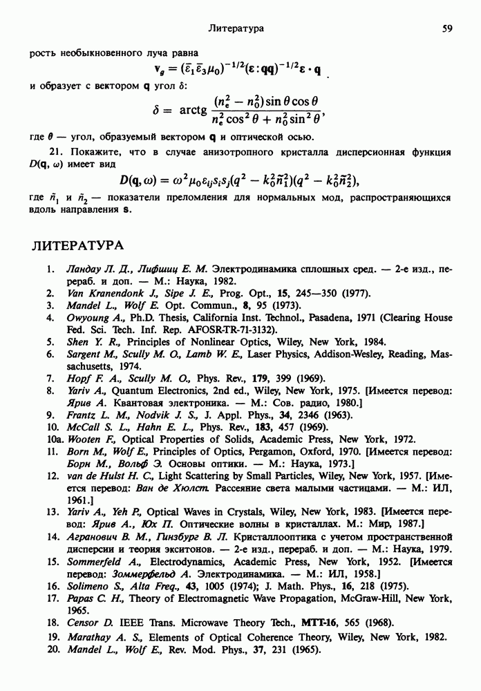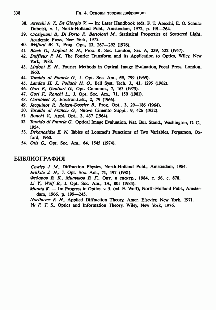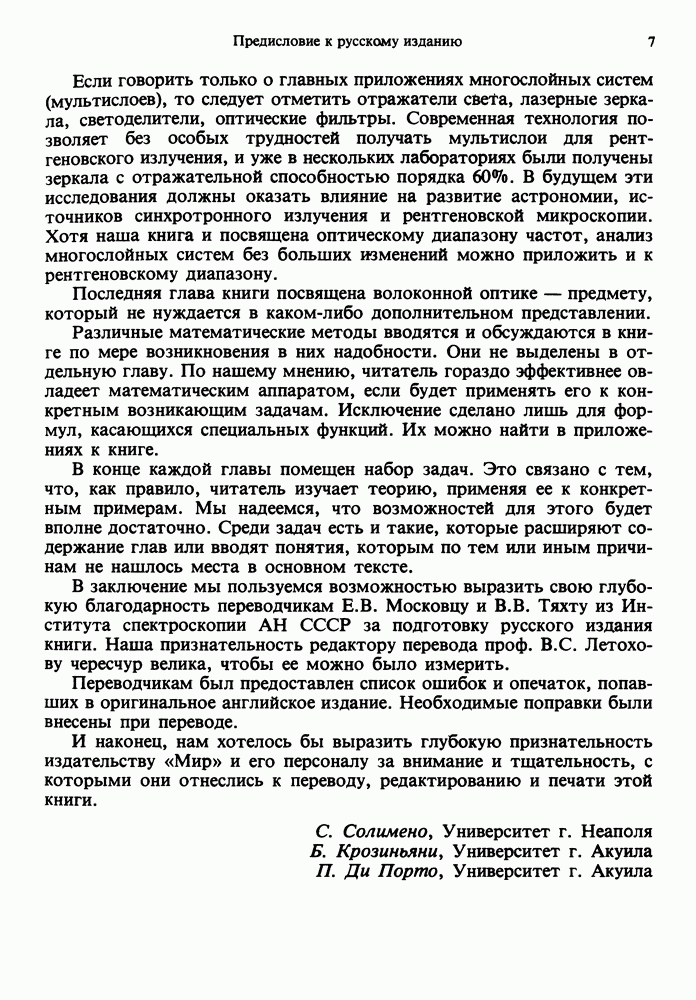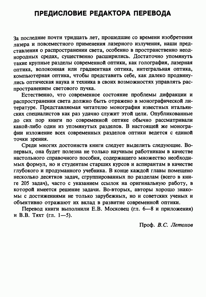 Среди многих достоинств книги следует выделить следующие. Во-первых, она будет полезна не только научным работникам в качестве настольного справочного пособия, содержащего множество необходимых формул, но и студентам старших курсов и аспирантам в качестве глубокого и продуманного учебника. В конце каждой главы помещено несколько десятков задач, сгруппированных по разделам (всего в книге 205 задач), часто с указанием ссылок на оригинальную работу, в которой имеется решение задачи. Во-вторых, авторы хорошо знакомы с достижениями не только зарубежных, но и советских ученых и объективно отражают их вклад в развитие современной оптики.
