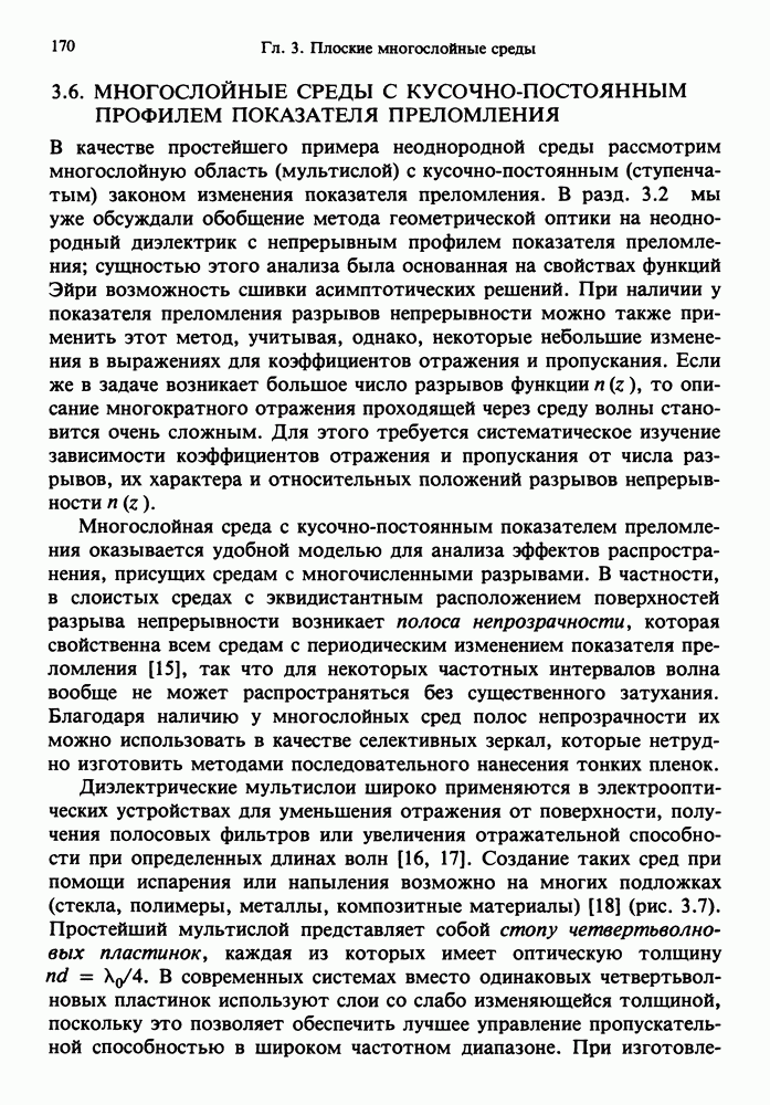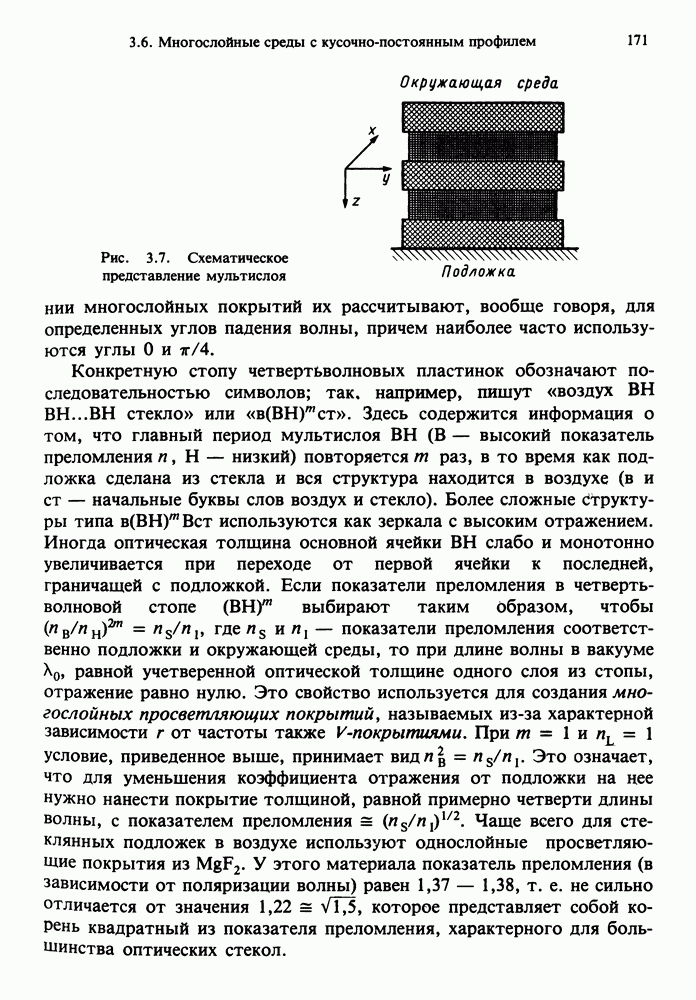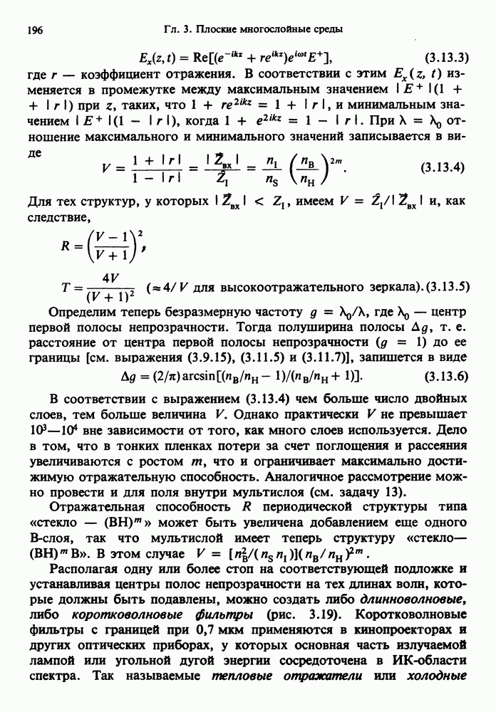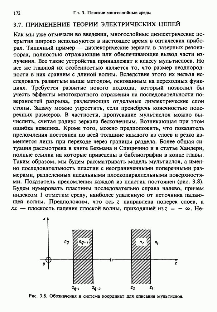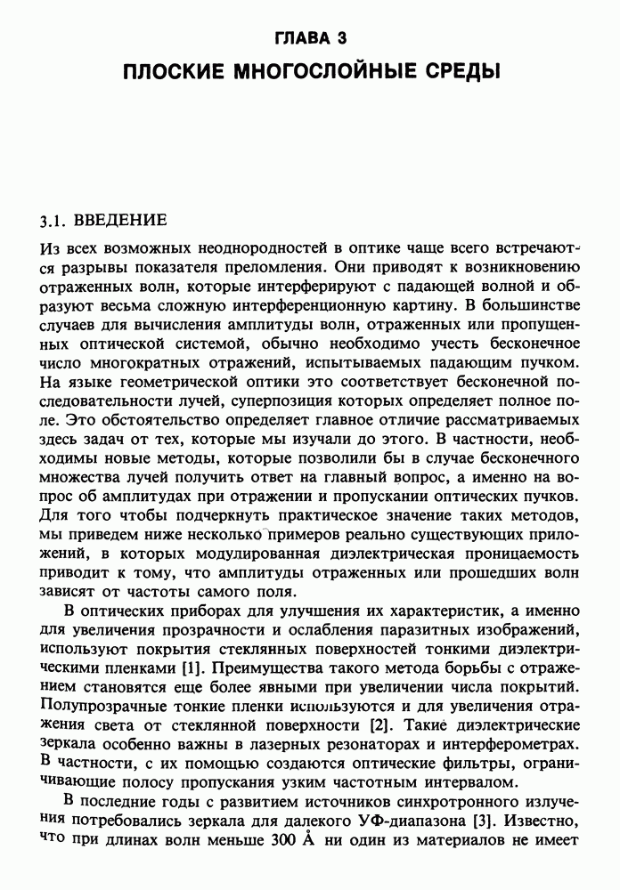 Если говорить только о главных приложениях многослойных систем (мультислоев), то следует отметить отражатели света, лазерные зеркала, светоделители, оптические фильтры. Современная технология позволяет без особых трудностей получать мультислои для рентгеновского излучения, и уже в нескольких лабораториях были получены зеркала с отражательной способностью порядка 60%. В будущем эти исследования должны оказать влияние на развитие астрономии, источников синхротронного излучения и рентгеновской микроскопии. Хотя наша книга и посвящена оптическому диапазону частот, анализ многослойных систем без больших изменений можно приложить и к рентгеновскому диапазону.