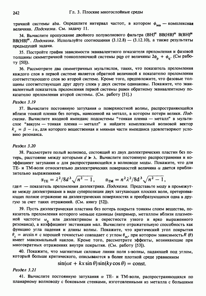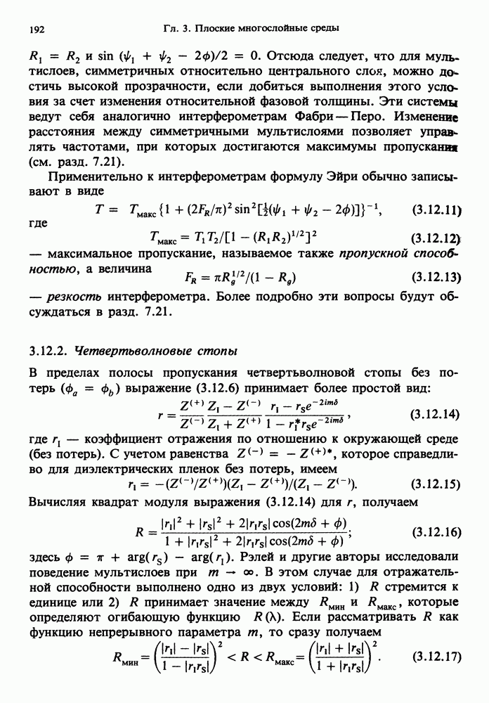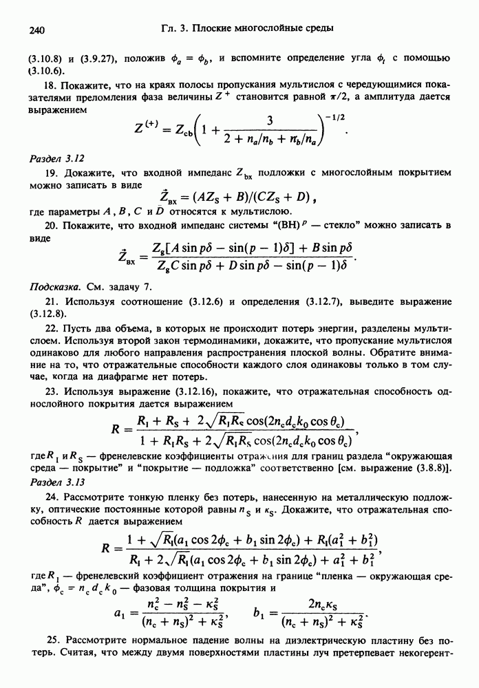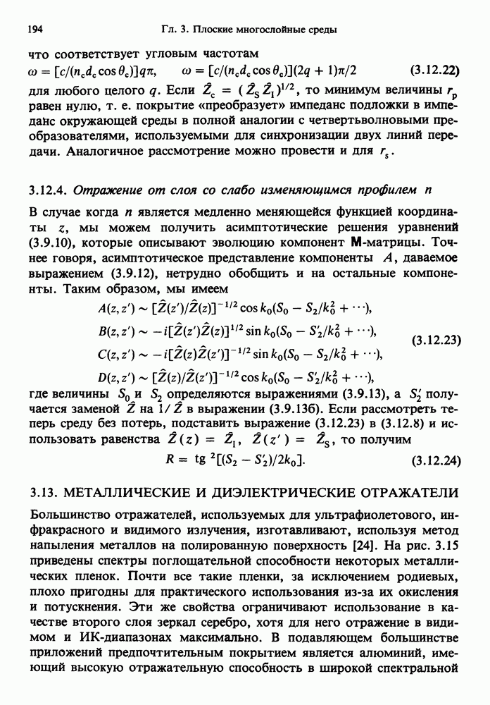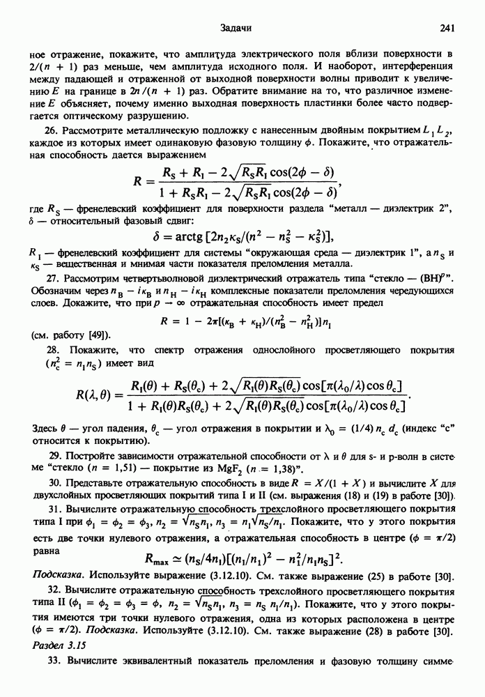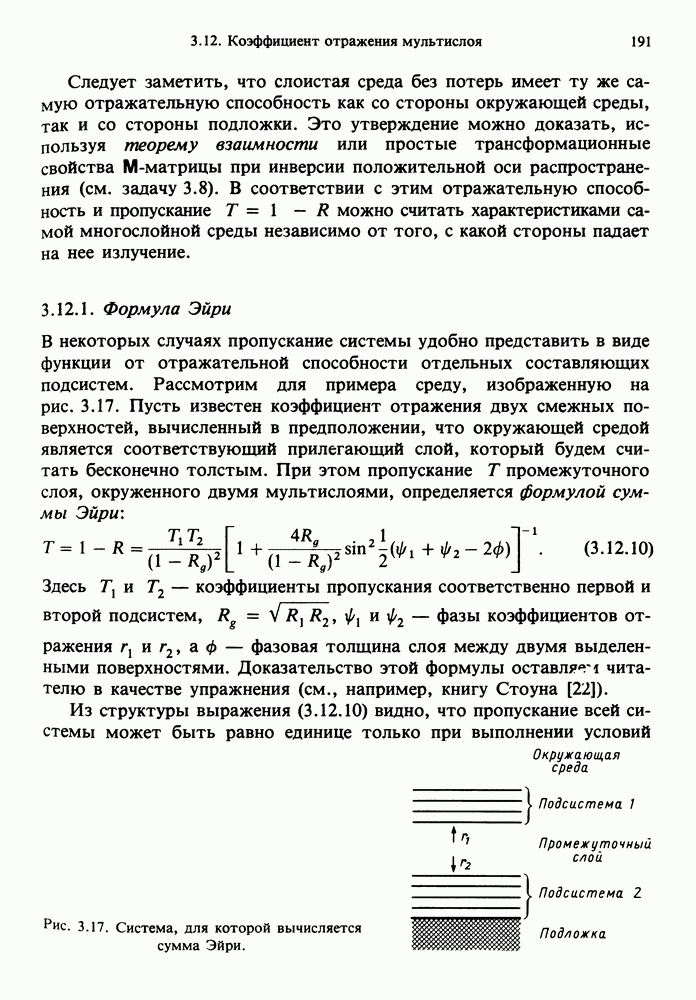 Если говорить только о главных приложениях многослойных систем (мультислоев), то следует отметить отражатели света, лазерные зеркала, светоделители, оптические фильтры. Современная технология позволяет без особых трудностей получать мультислои для рентгеновского излучения, и уже в нескольких лабораториях были получены зеркала с отражательной способностью порядка 60%. В будущем эти исследования должны оказать влияние на развитие астрономии, источников синхротронного излучения и рентгеновской микроскопии. Хотя наша книга и посвящена оптическому диапазону частот, анализ многослойных систем без больших изменений можно приложить и к рентгеновскому диапазону.