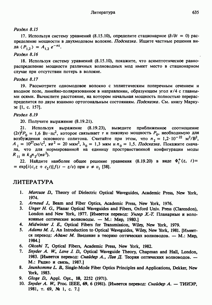 Последняя глава книги посвящена волоконной оптике — предмету, который не нуждается в каком-либо дополнительном представлении.