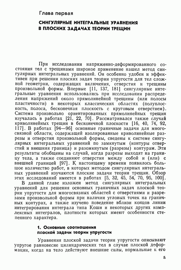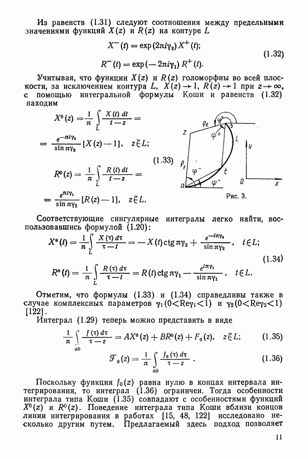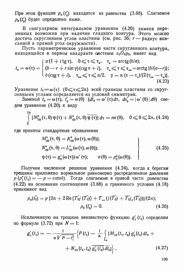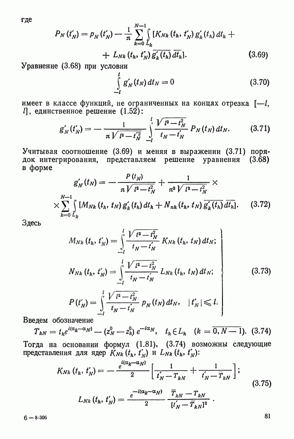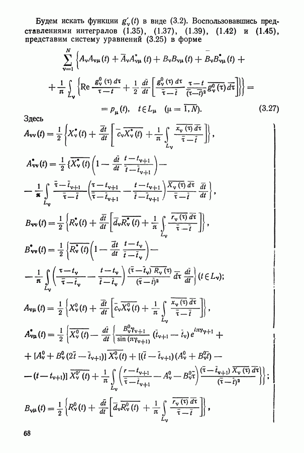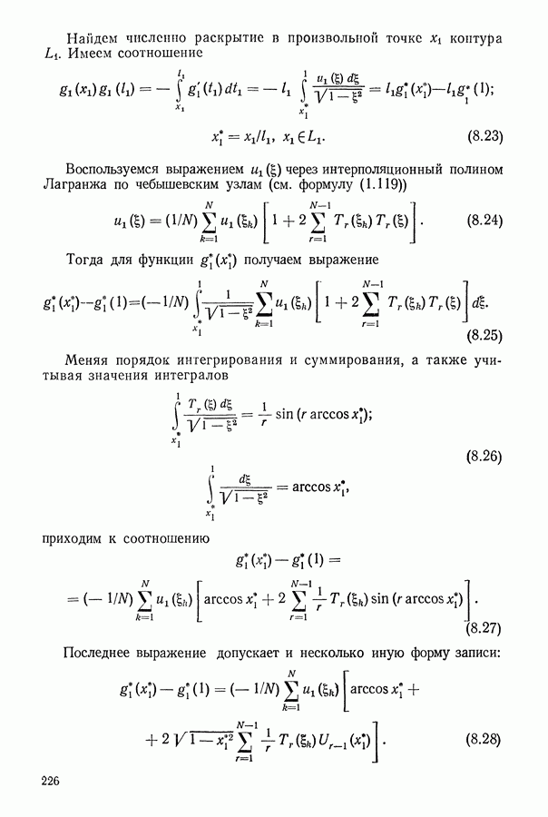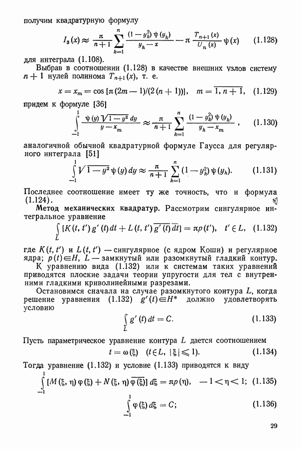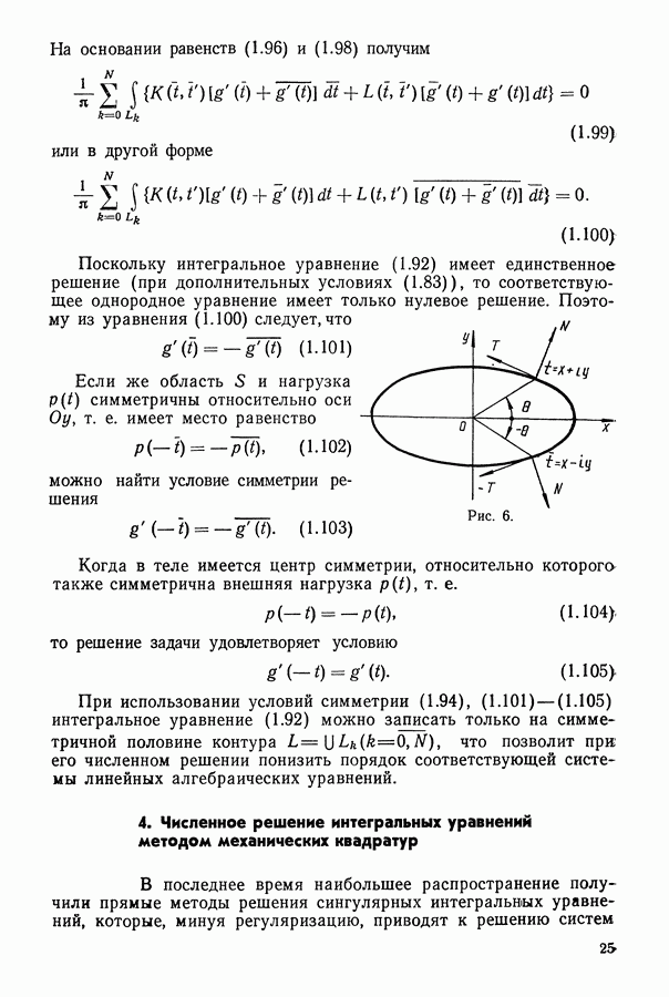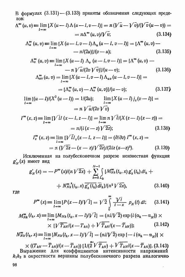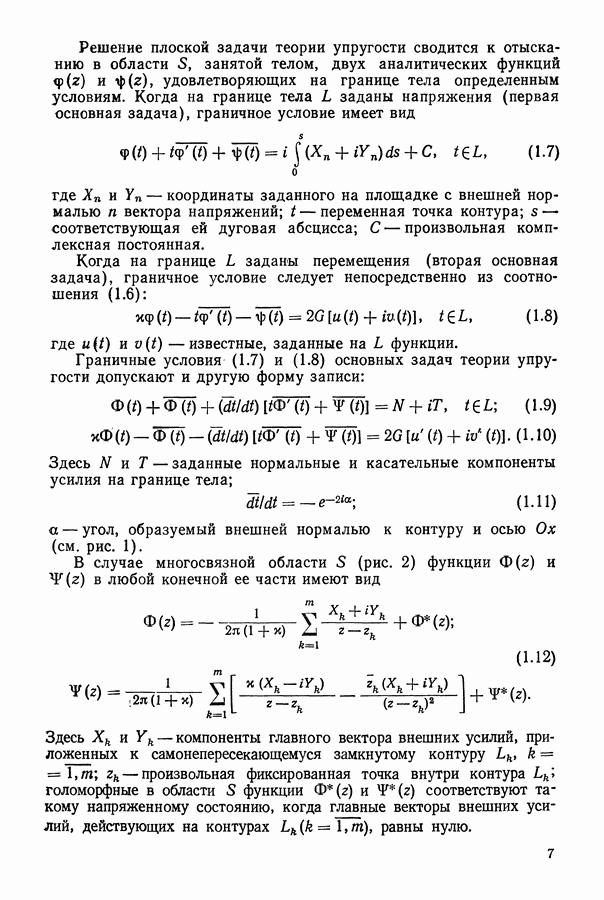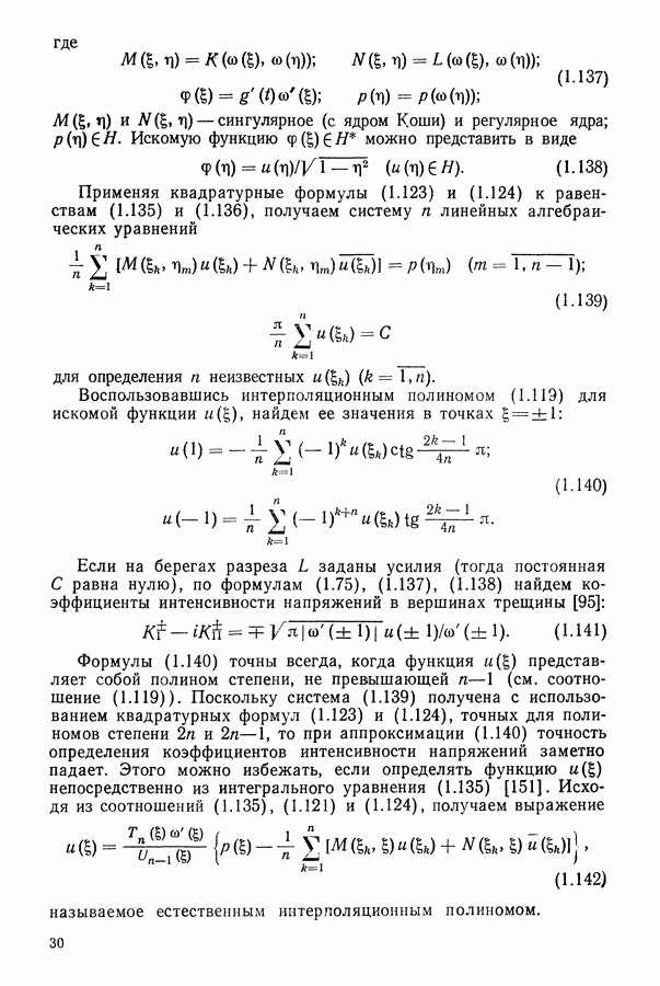 Потенциалы напряжений (5.58), как и (5.26), построены таким образом, что они не содержат контура интегрирования, соответствующего внешней границе диска. Это обстоятельство позволяет понизить на единицу порядок системы сингулярных интегральных уравнений для диска с отверстиями и трещинами (1.80). При этом граничное условие на внешней границе диска удовлетворяется тождественно. Удовлетворив с помощью комплексных потенциалов (5.58) граничные условия (5.56) и (5.57), получим систему трех сингулярных уравнений: