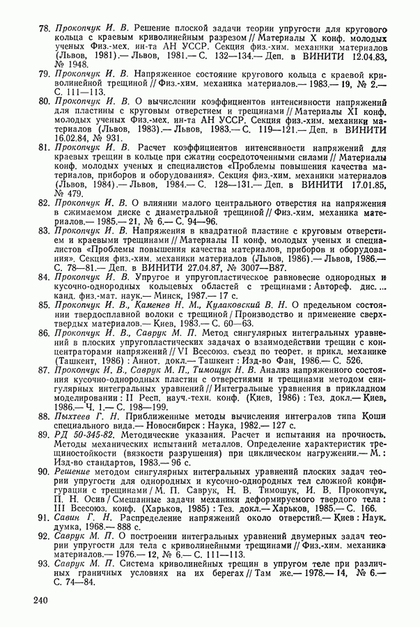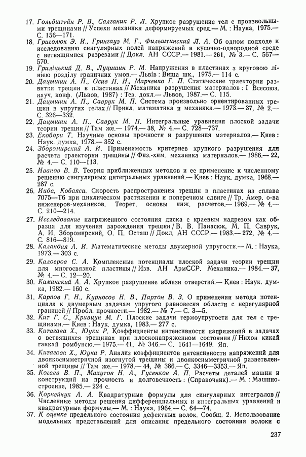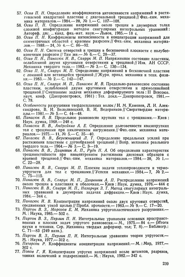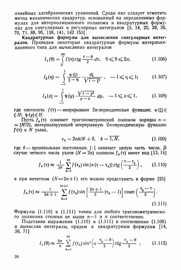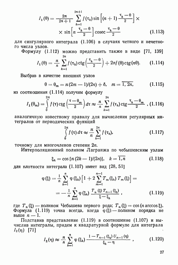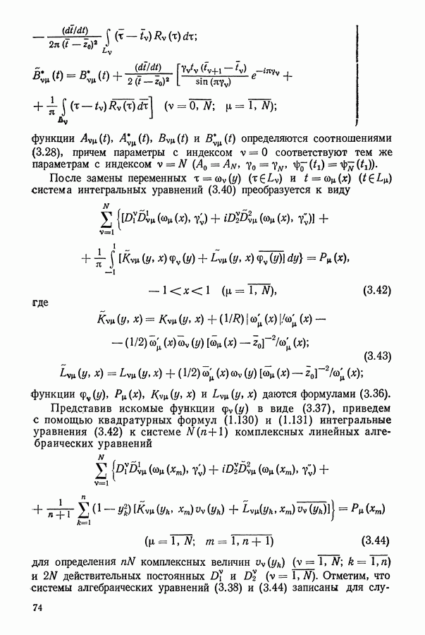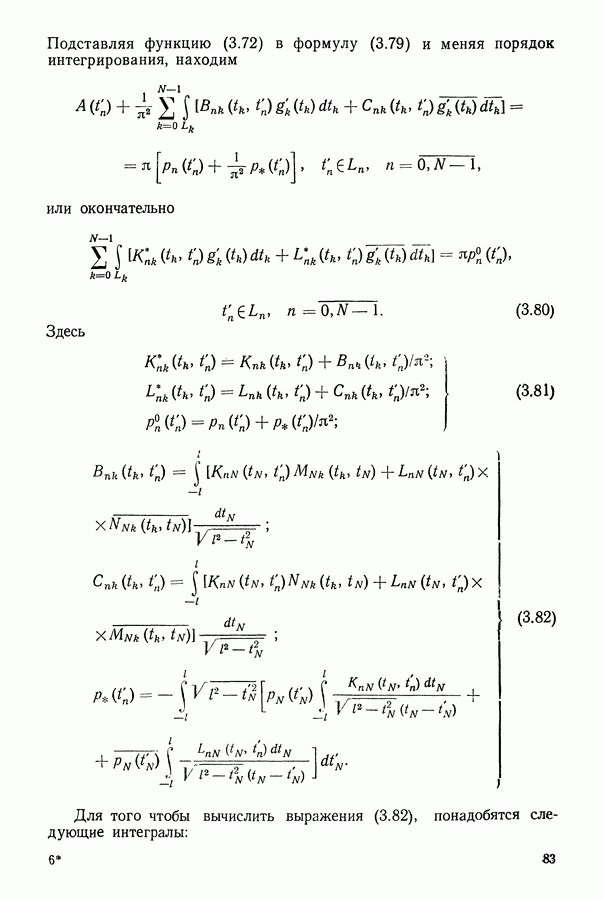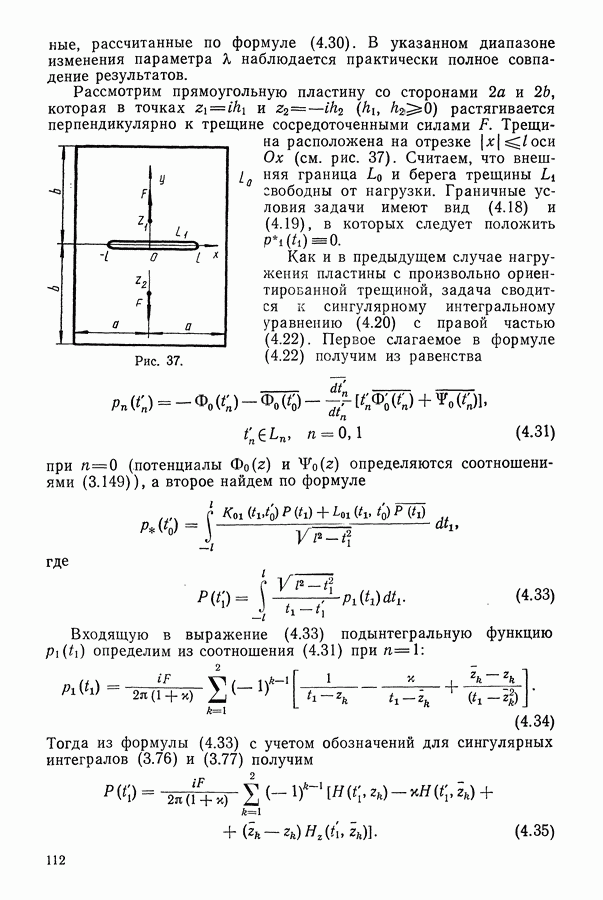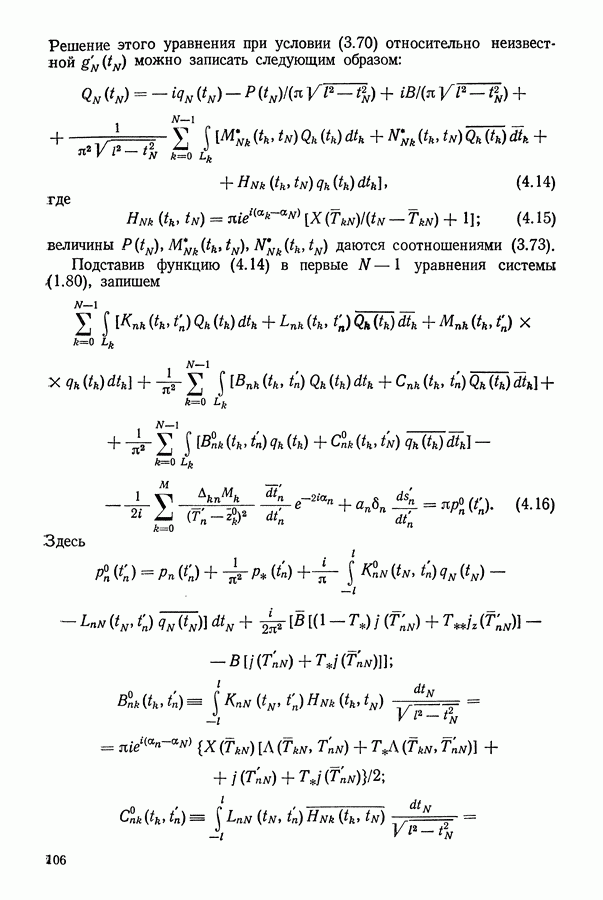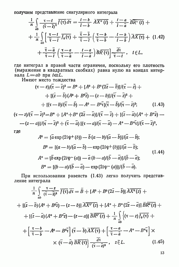 Потенциалы напряжений (5.58), как и (5.26), построены таким образом, что они не содержат контура интегрирования, соответствующего внешней границе диска. Это обстоятельство позволяет понизить на единицу порядок системы сингулярных интегральных уравнений для диска с отверстиями и трещинами (1.80). При этом граничное условие на внешней границе диска удовлетворяется тождественно. Удовлетворив с помощью комплексных потенциалов (5.58) граничные условия (5.56) и (5.57), получим систему трех сингулярных уравнений: