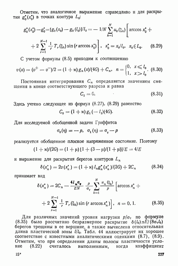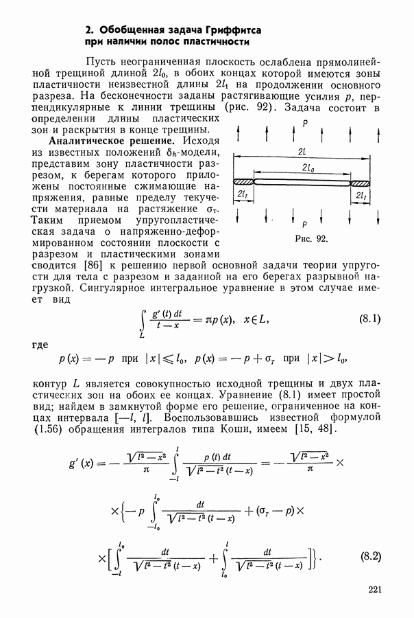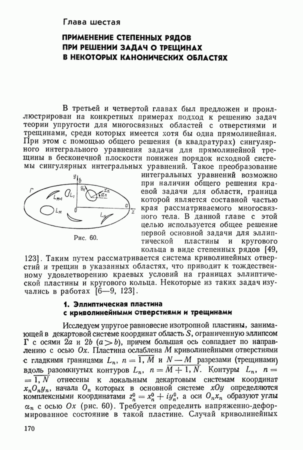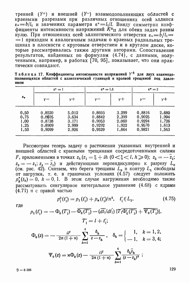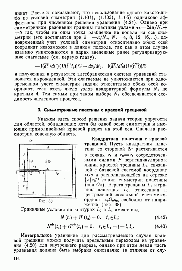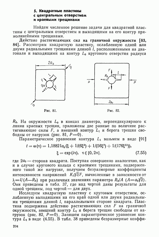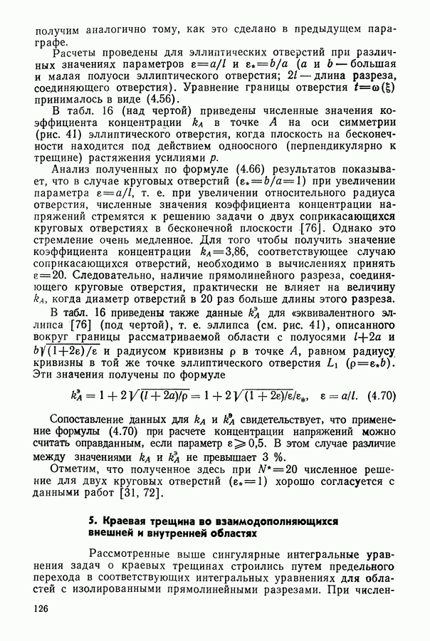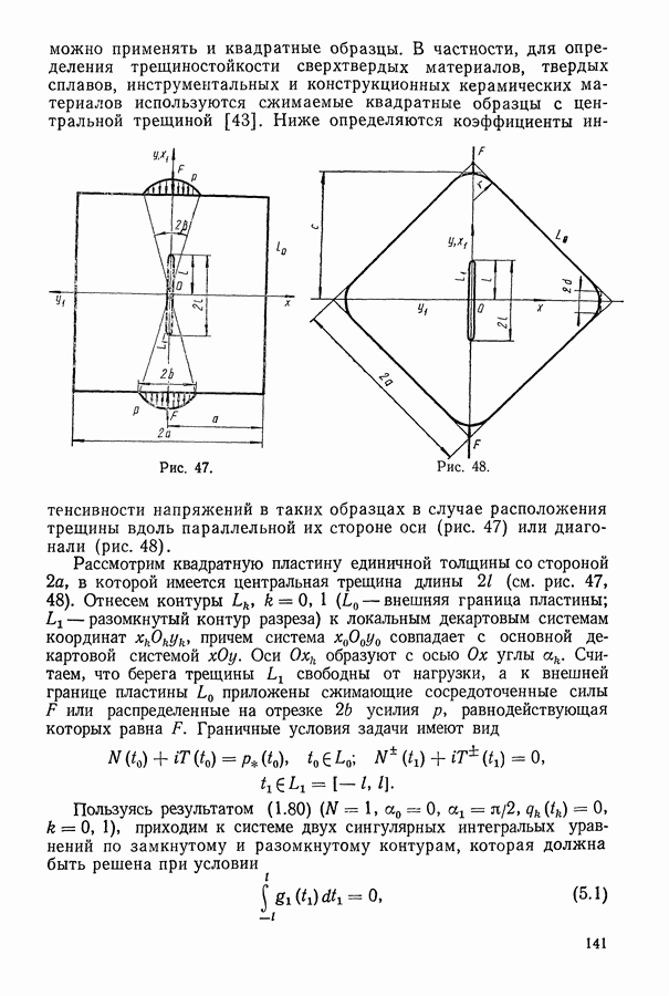 Методом сингулярных интегральных уравнений решалась так же задача о напряженном состоянии диска с краевой трещиной. Расчеты подтвердили справедливость формул (5.61), ее погрешность не превышает Диск с краевым вырезом и выходящей из него трещиной [53]. Заменяя в диске контур выреза