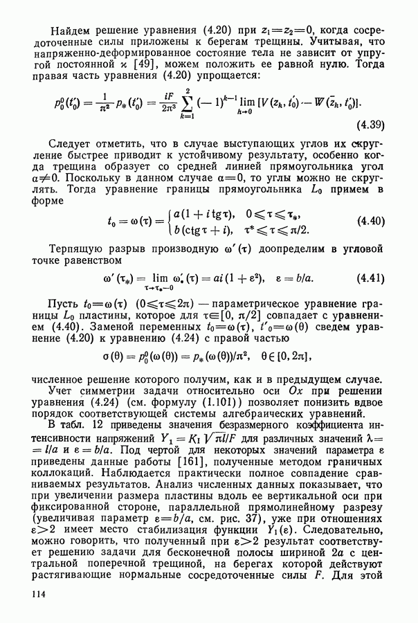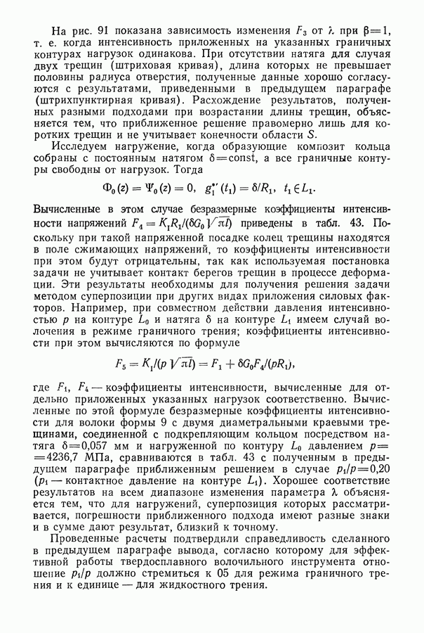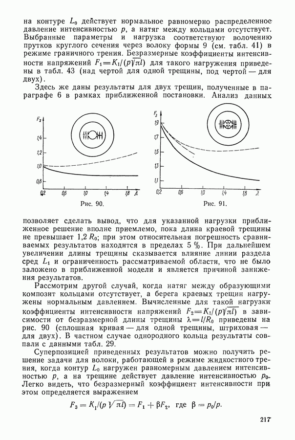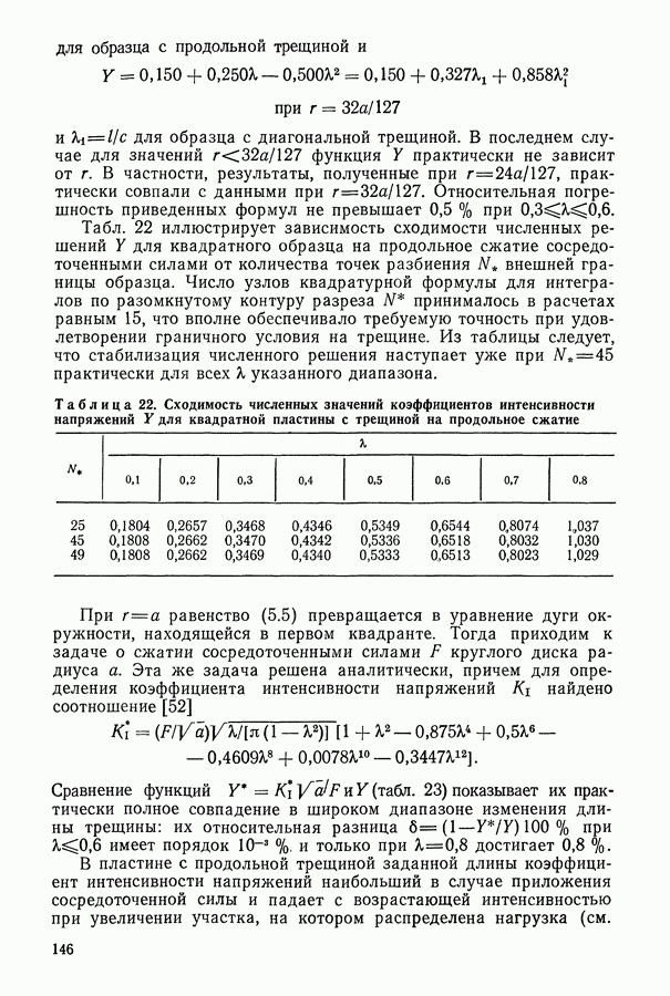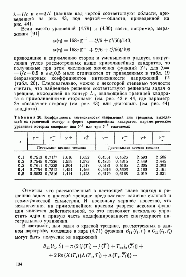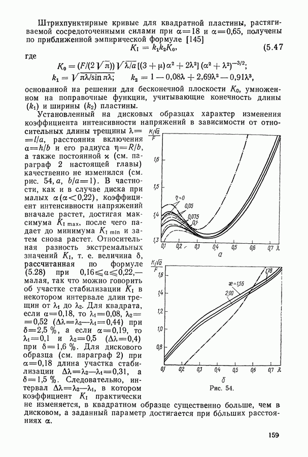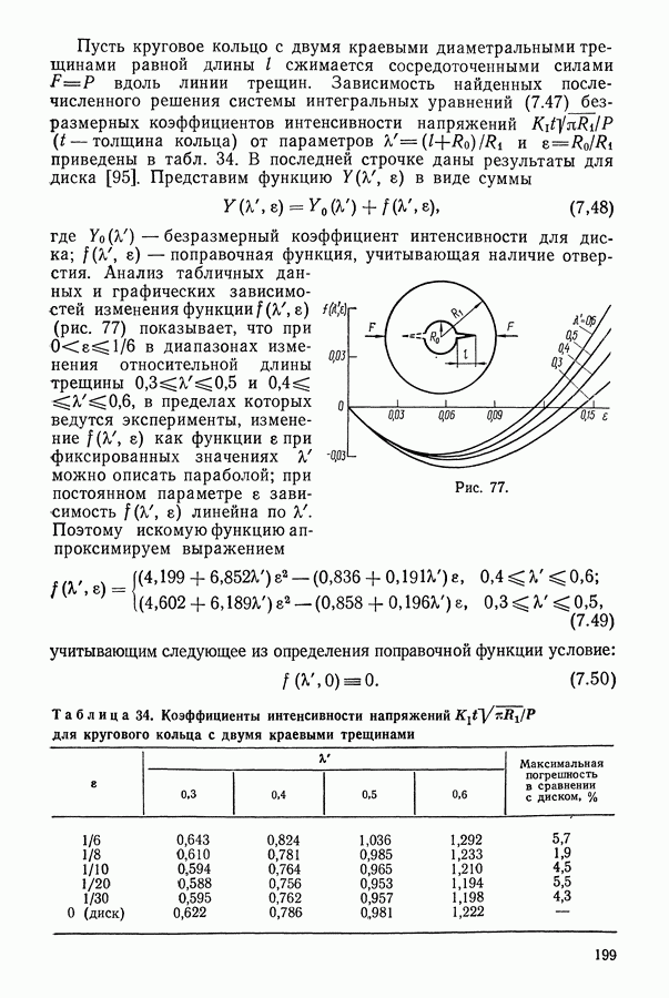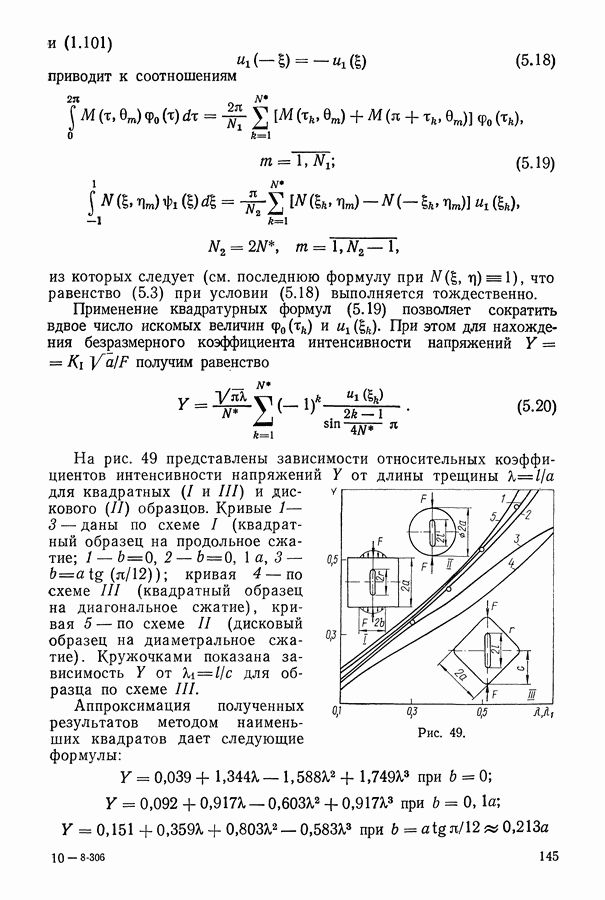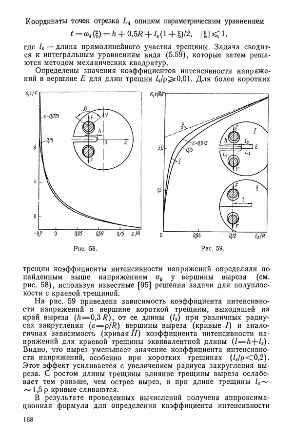 Рис. 59. Для более коротких трещин коэффициенты интенсивности напряжений определяли по найденным выше напряжениям На рис. 59 приведена зависимость коэффициента интенсивности напряжений в вершине короткой трещины, выходящей на край выреза В результате проведенных вычислений получена аппроксимационная формула для определения коэффициента интенсивности напряжений в окрестности короткой трещины длиной