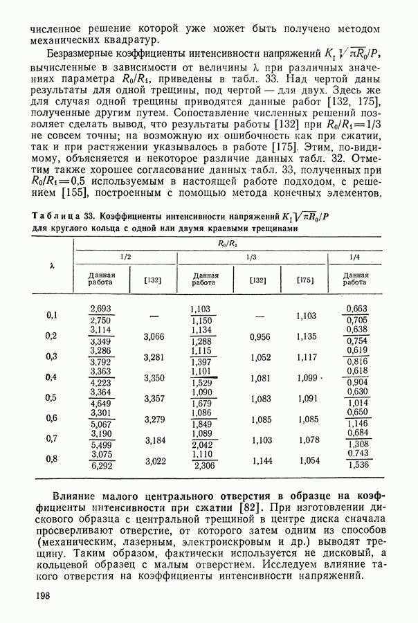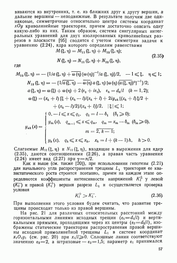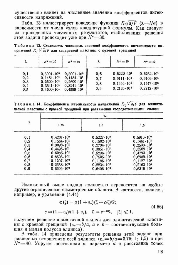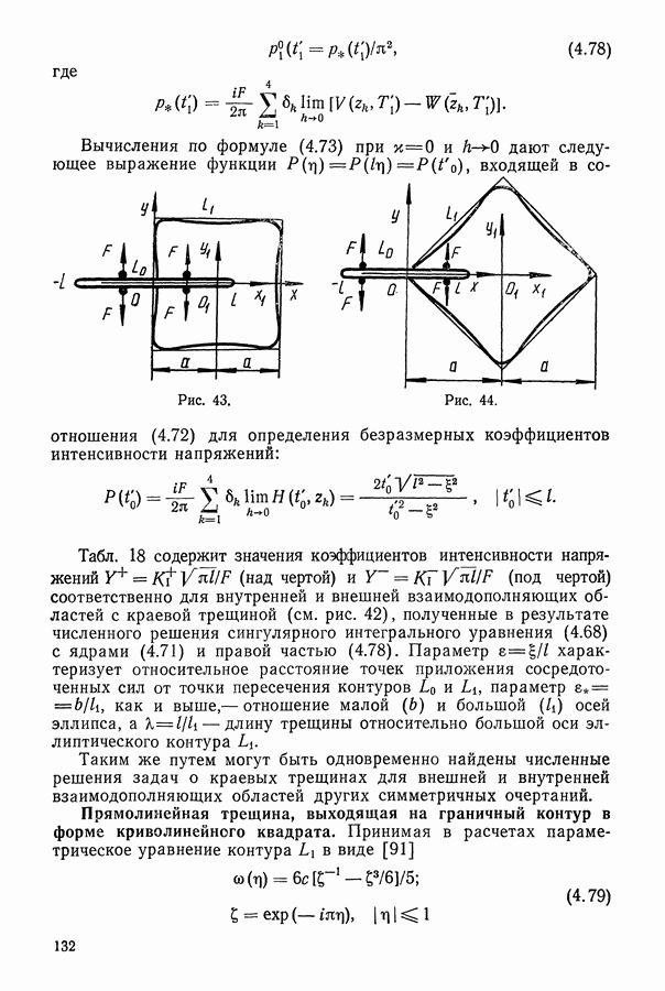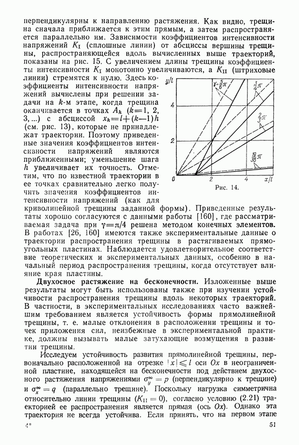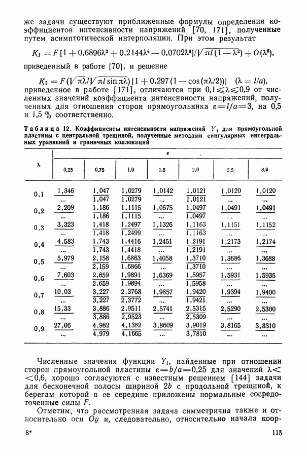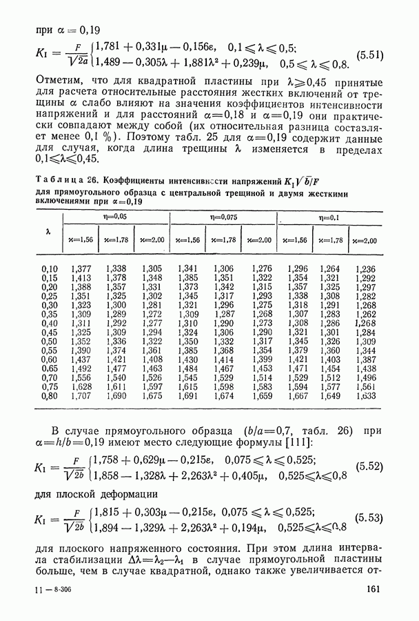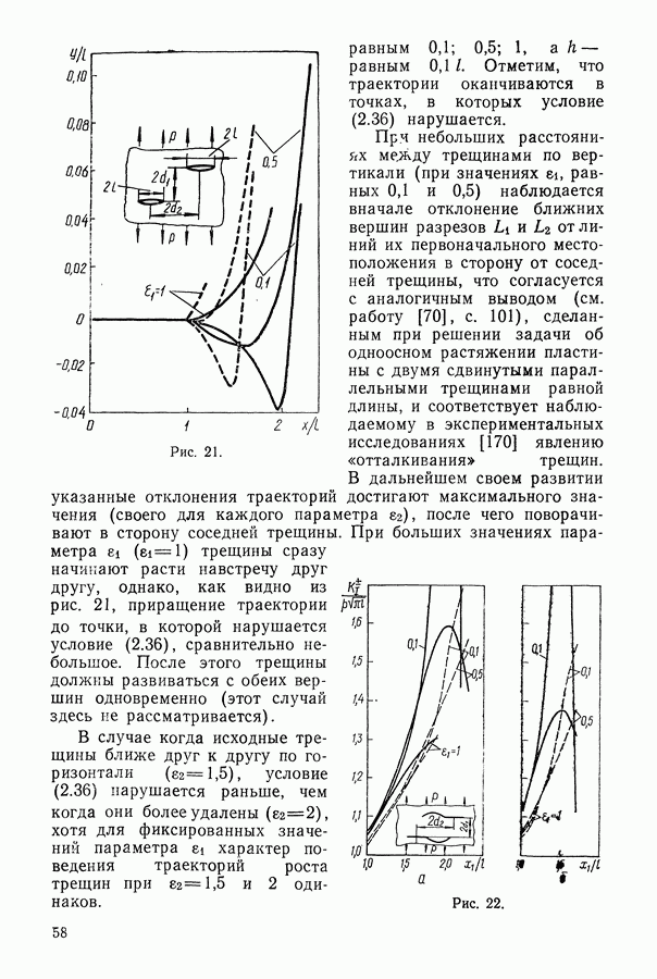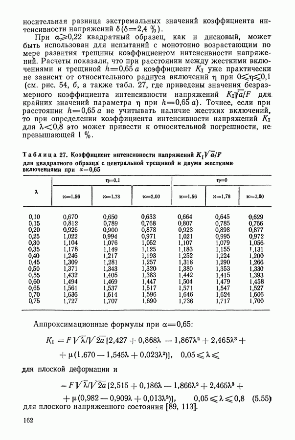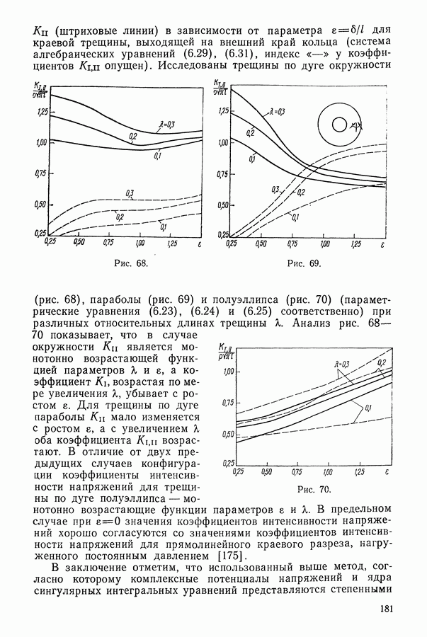 Рис. 59. Для более коротких трещин коэффициенты интенсивности напряжений определяли по найденным выше напряжениям На рис. 59 приведена зависимость коэффициента интенсивности напряжений в вершине короткой трещины, выходящей на край выреза В результате проведенных вычислений получена аппроксимационная формула для определения коэффициента интенсивности напряжений в окрестности короткой трещины длиной