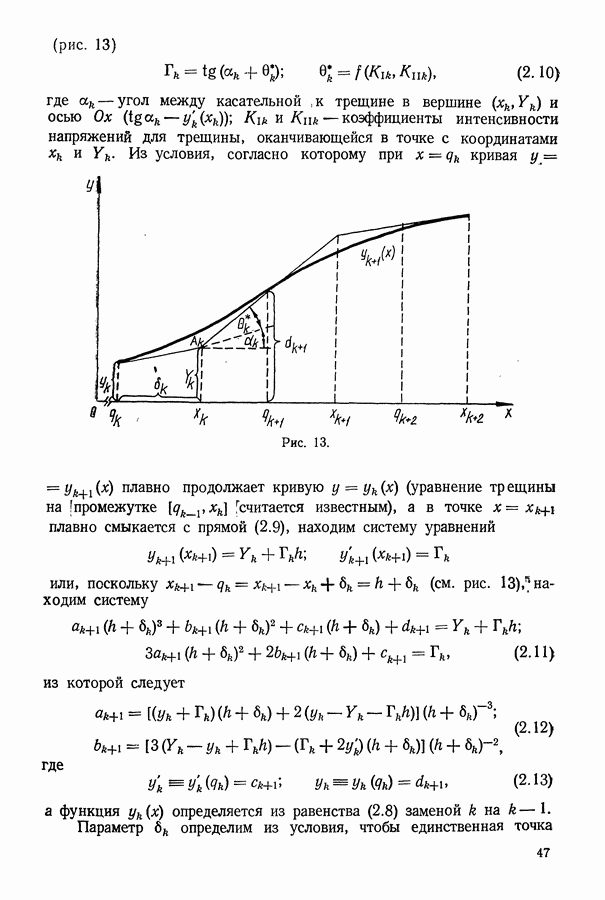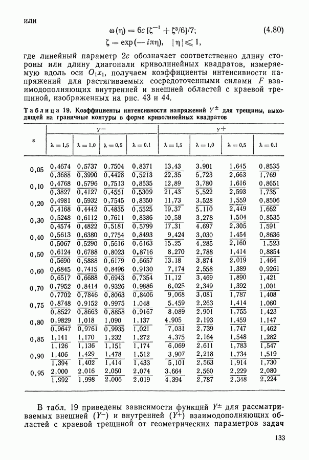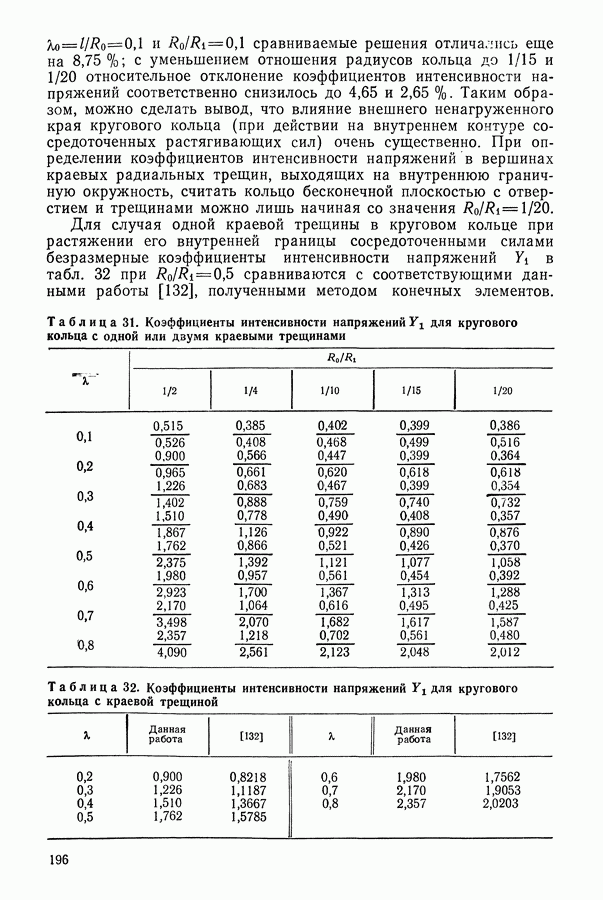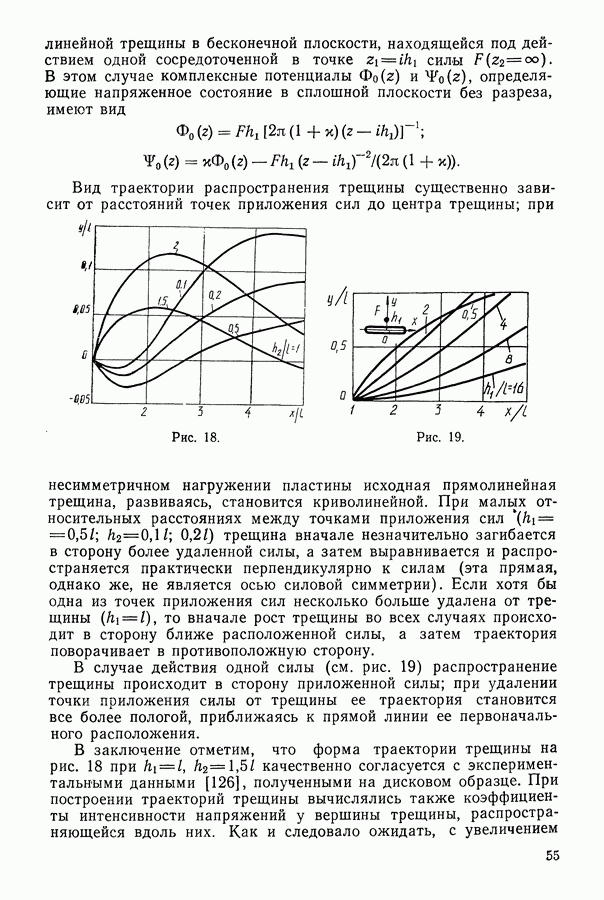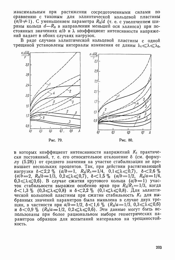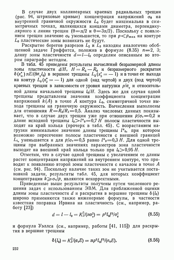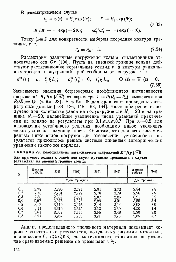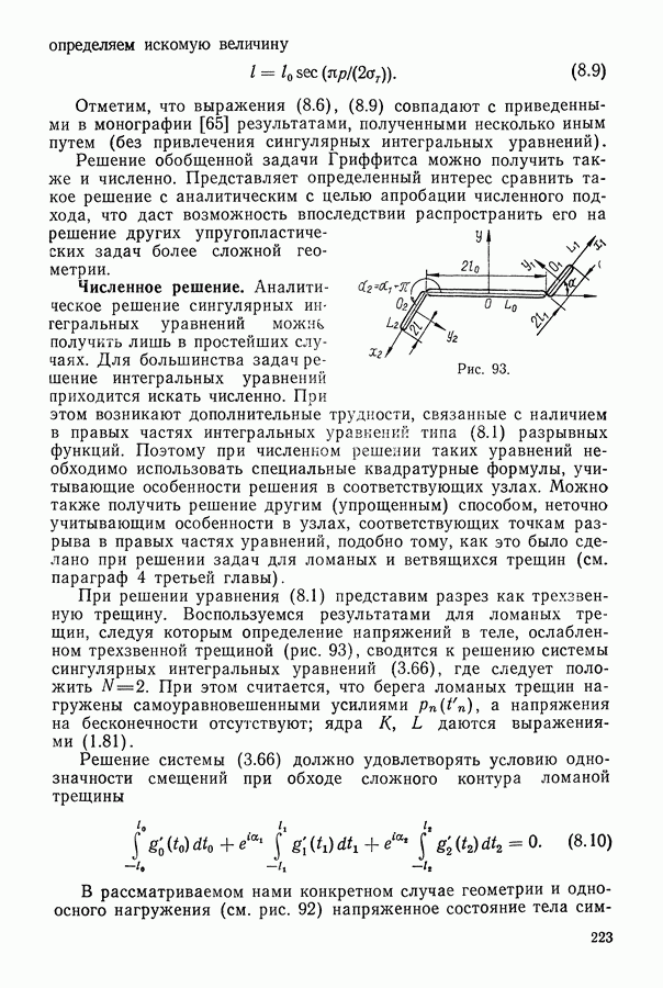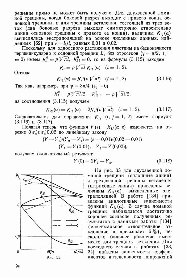 Рис. 59. Для более коротких трещин коэффициенты интенсивности напряжений определяли по найденным выше напряжениям На рис. 59 приведена зависимость коэффициента интенсивности напряжений в вершине короткой трещины, выходящей на край выреза В результате проведенных вычислений получена аппроксимационная формула для определения коэффициента интенсивности напряжений в окрестности короткой трещины длиной