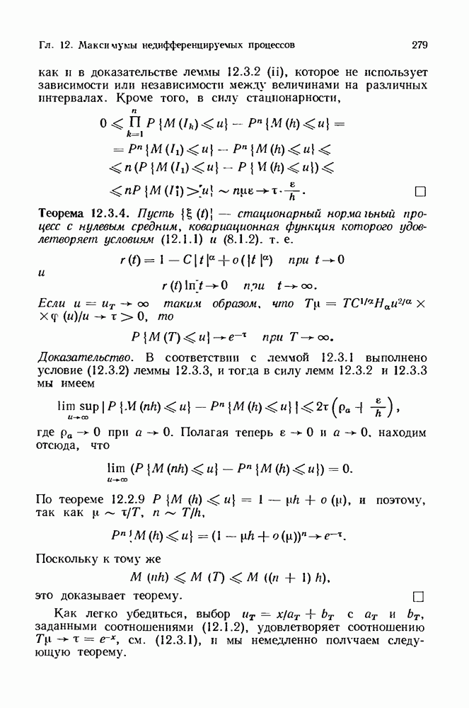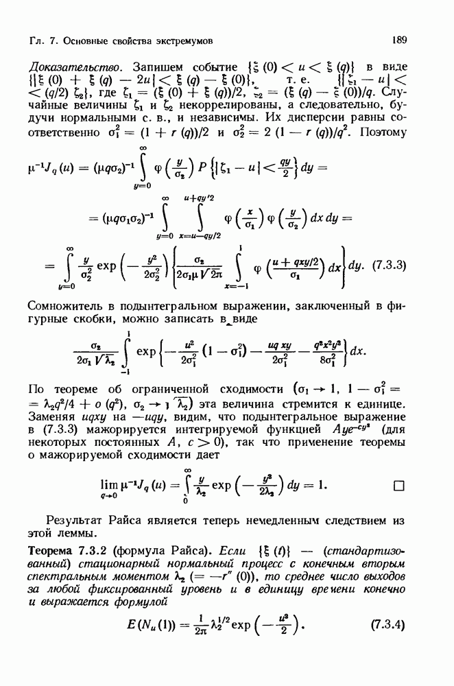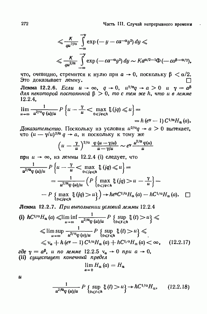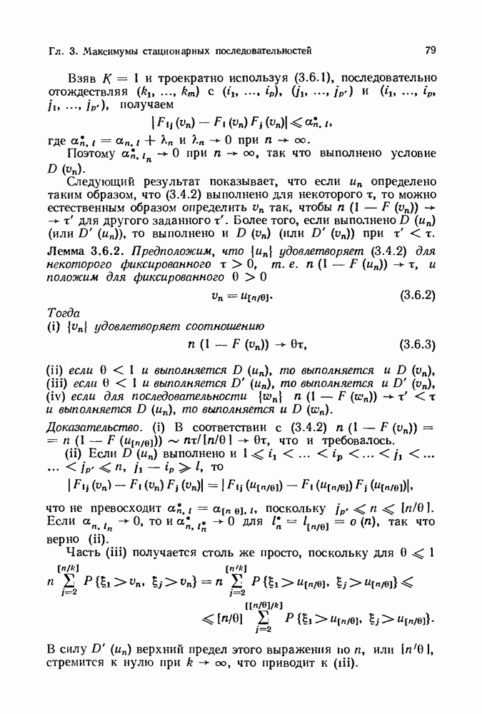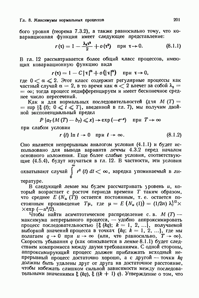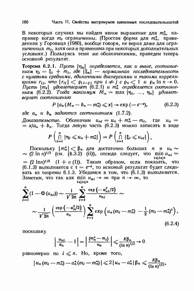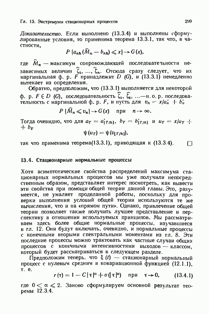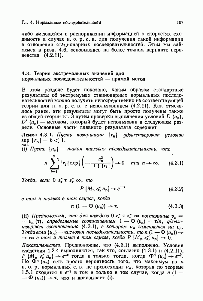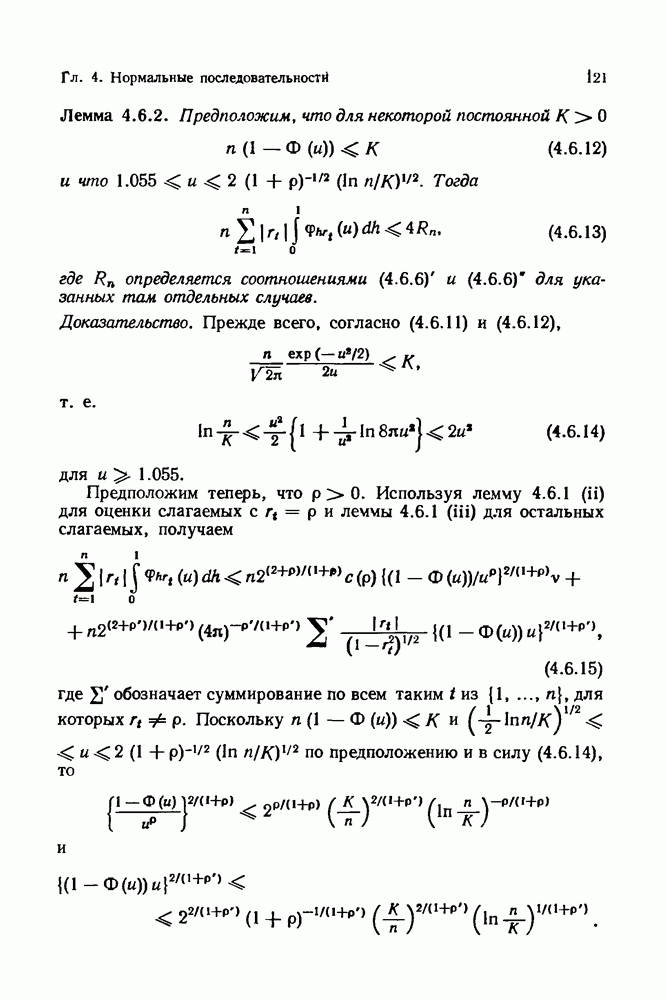 6.4. Стационарные нормальные последовательности с сильной зависимостьюВ этом и остальных разделах мы обращаемся ко второй теме настоящей главы, а именно хотим посмотреть, как влияет на экстремумы более жесткая структура зависимости стационарной нормальной последовательности В этом и следующих разделах мы рассмотрим сличай Основным инструментом, как и в гл. 4, будет нормальная лемма сравнения (теорема 4.2.1), связывающая распределения максимумов двух нормальных последовательностей с различными корреляциями. Теперь уже, разумеется, не достаточно сравнения с независимой последовательностью. Вместо этого удобно проводить сравнение распределения с. в. Лемма 6.4.1. Пусть