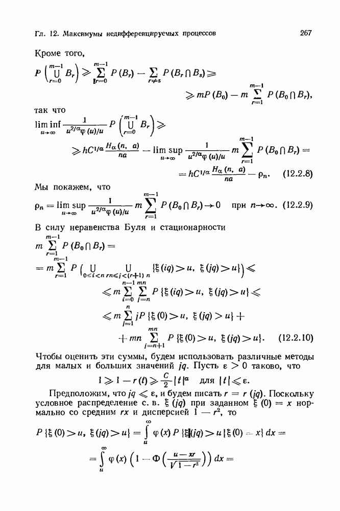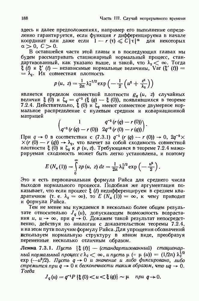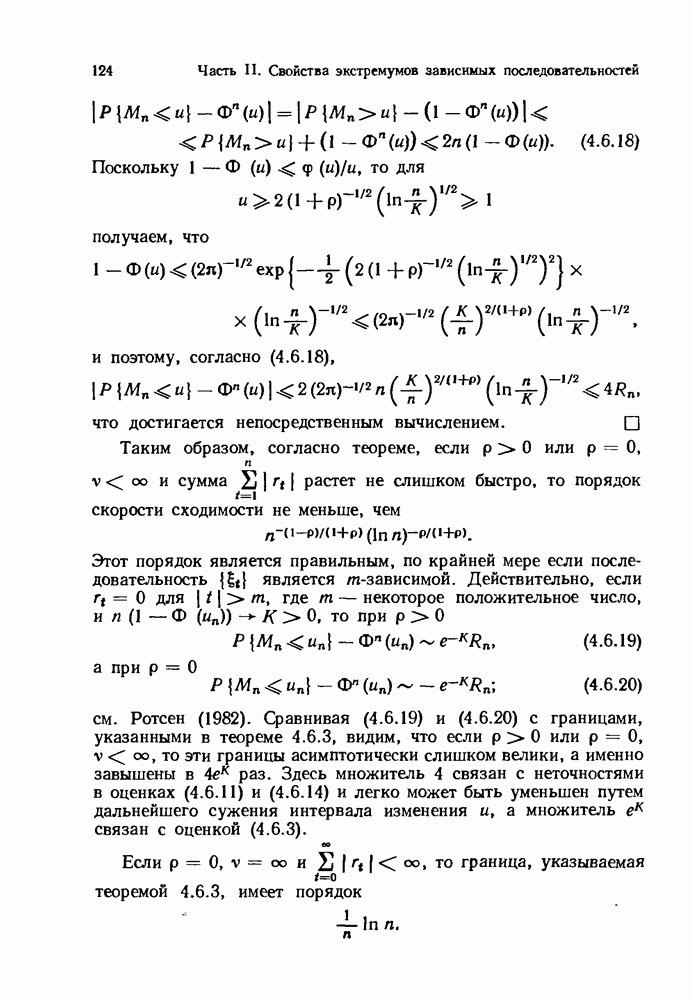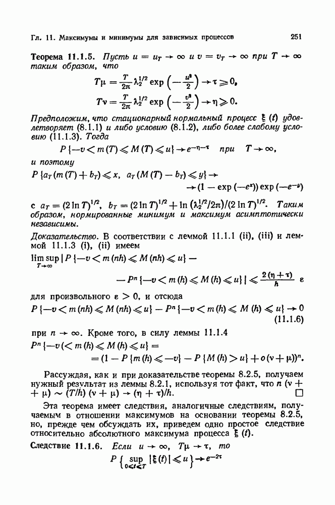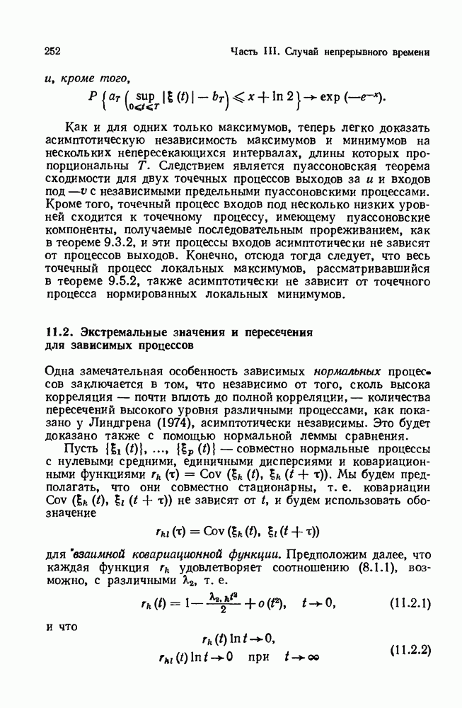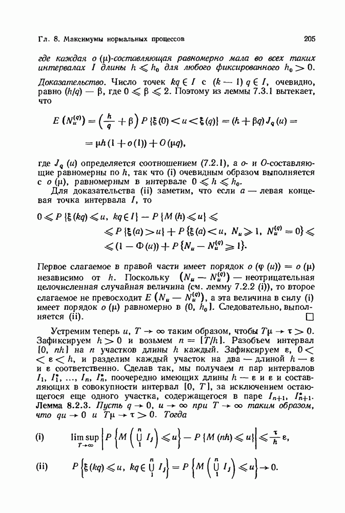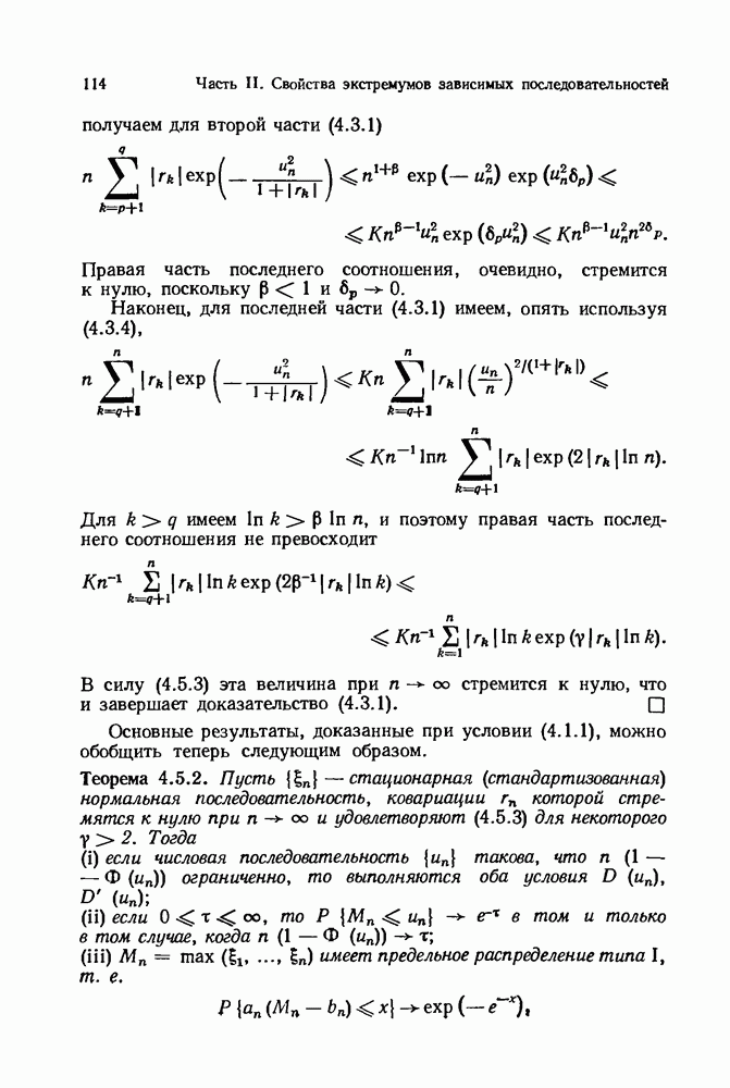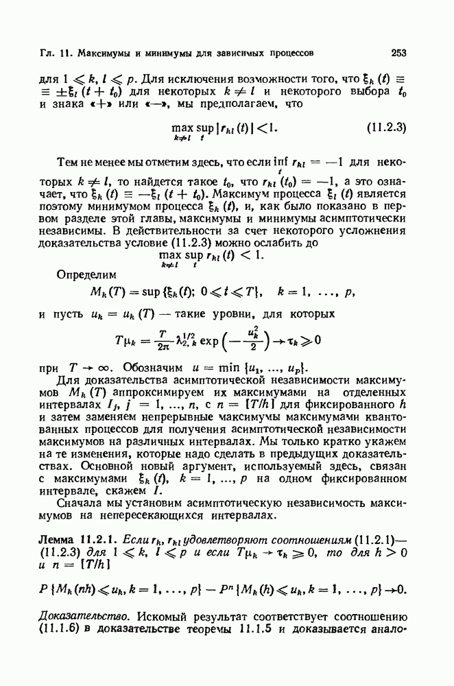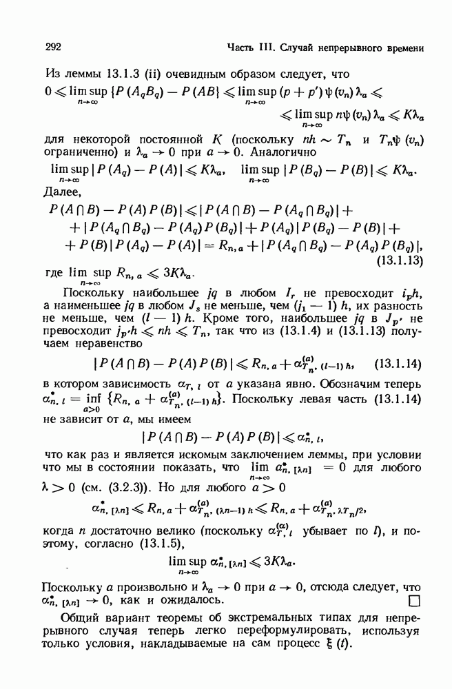 6.4. Стационарные нормальные последовательности с сильной зависимостьюВ этом и остальных разделах мы обращаемся ко второй теме настоящей главы, а именно хотим посмотреть, как влияет на экстремумы более жесткая структура зависимости стационарной нормальной последовательности В этом и следующих разделах мы рассмотрим сличай Основным инструментом, как и в гл. 4, будет нормальная лемма сравнения (теорема 4.2.1), связывающая распределения максимумов двух нормальных последовательностей с различными корреляциями. Теперь уже, разумеется, не достаточно сравнения с независимой последовательностью. Вместо этого удобно проводить сравнение распределения с. в. Лемма 6.4.1. Пусть