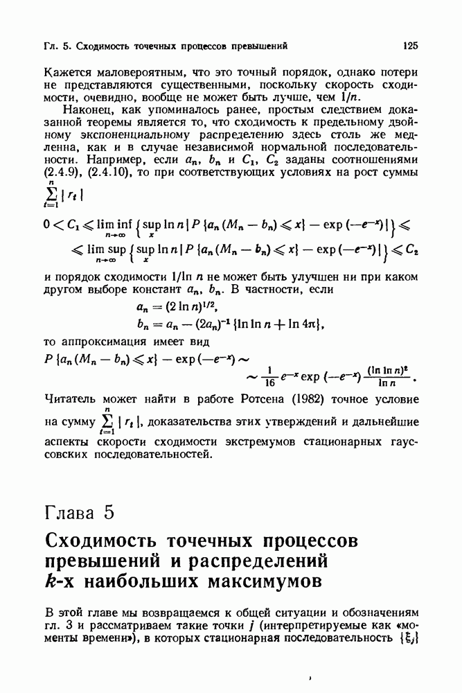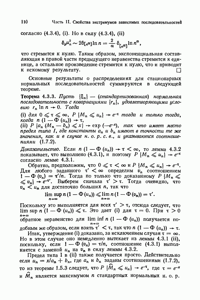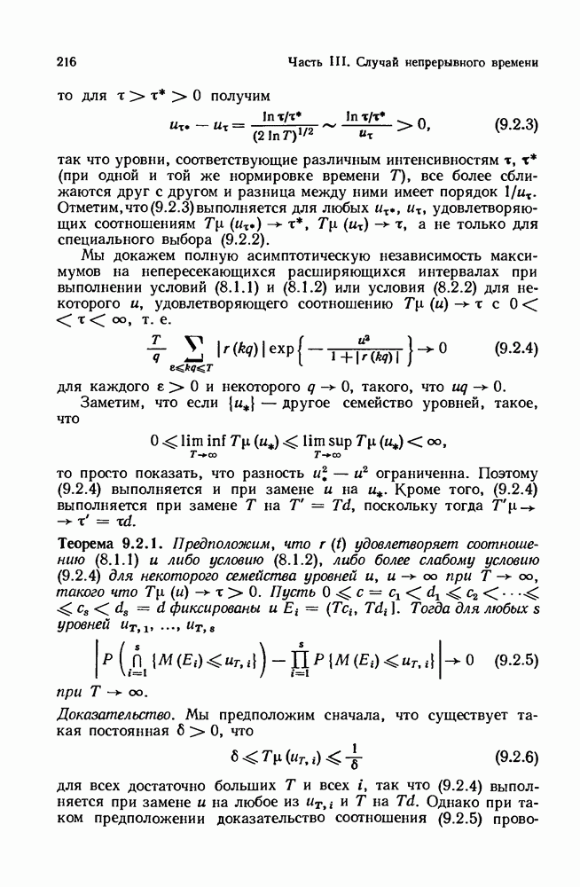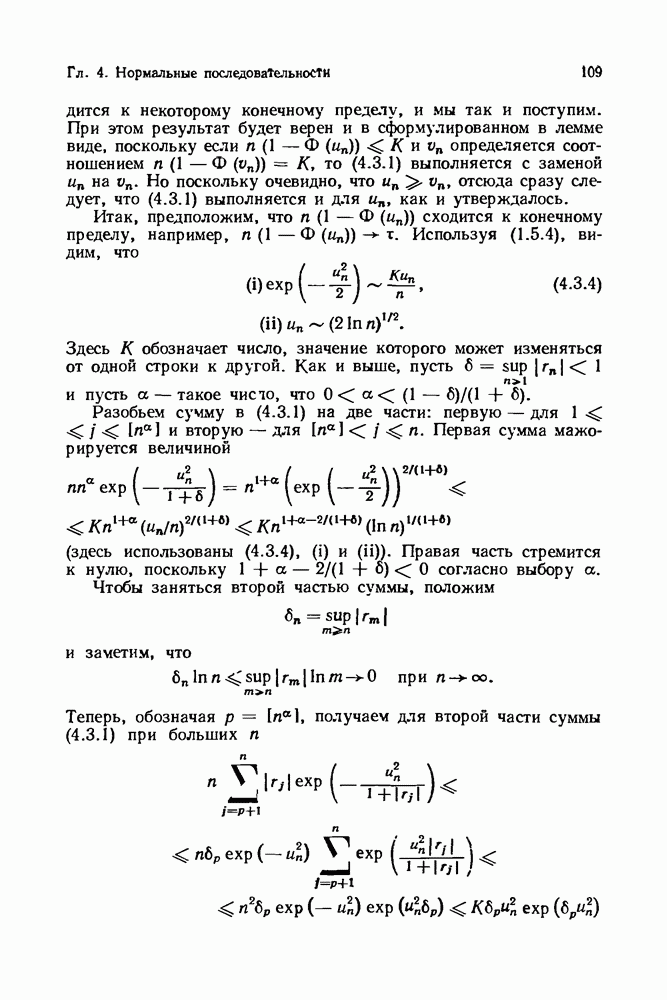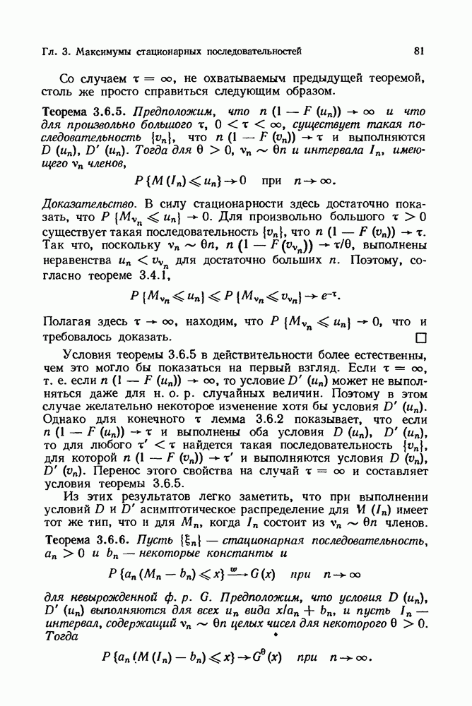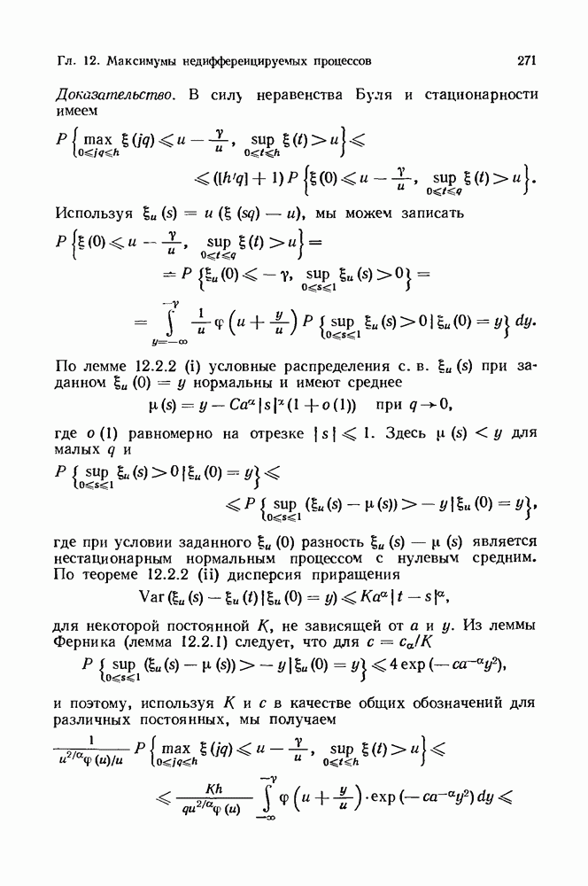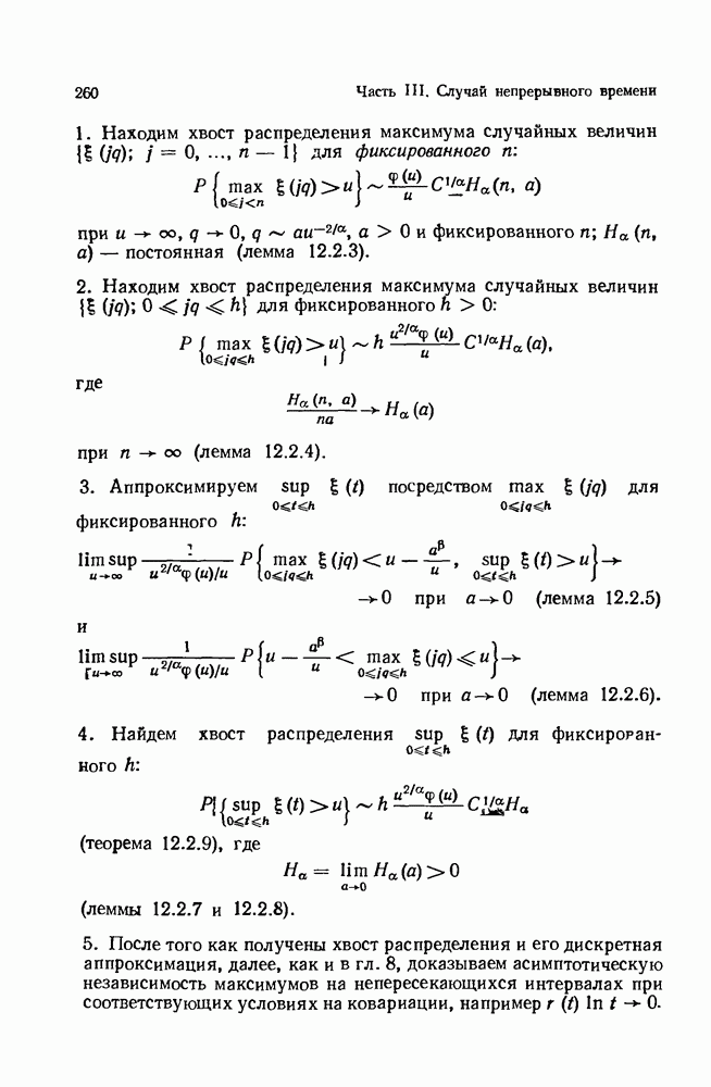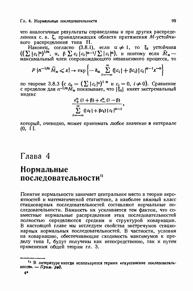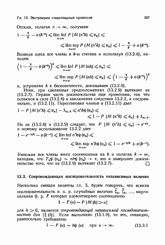 6.4. Стационарные нормальные последовательности с сильной зависимостьюВ этом и остальных разделах мы обращаемся ко второй теме настоящей главы, а именно хотим посмотреть, как влияет на экстремумы более жесткая структура зависимости стационарной нормальной последовательности В этом и следующих разделах мы рассмотрим сличай Основным инструментом, как и в гл. 4, будет нормальная лемма сравнения (теорема 4.2.1), связывающая распределения максимумов двух нормальных последовательностей с различными корреляциями. Теперь уже, разумеется, не достаточно сравнения с независимой последовательностью. Вместо этого удобно проводить сравнение распределения с. в. Лемма 6.4.1. Пусть