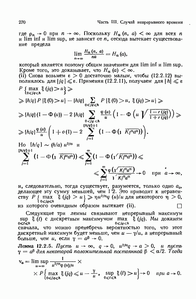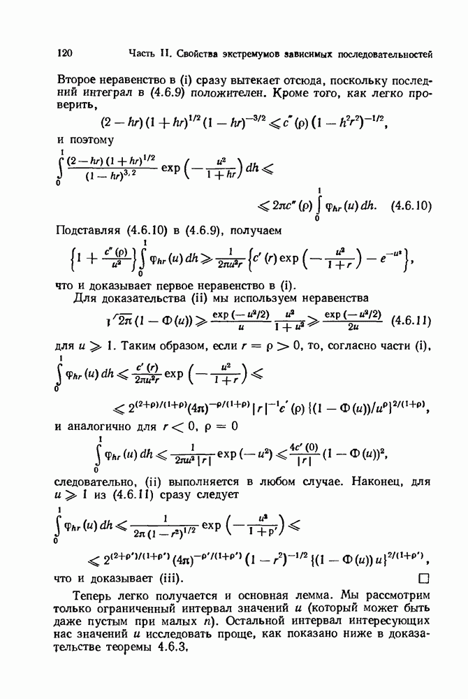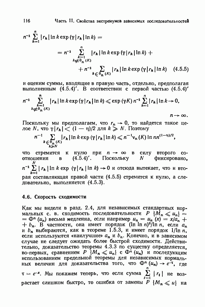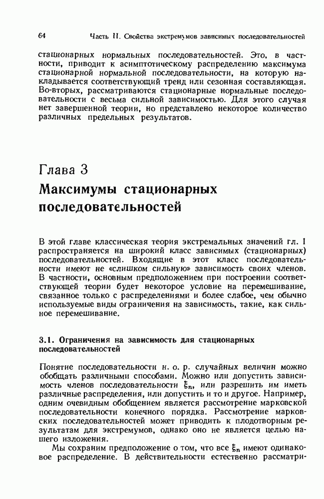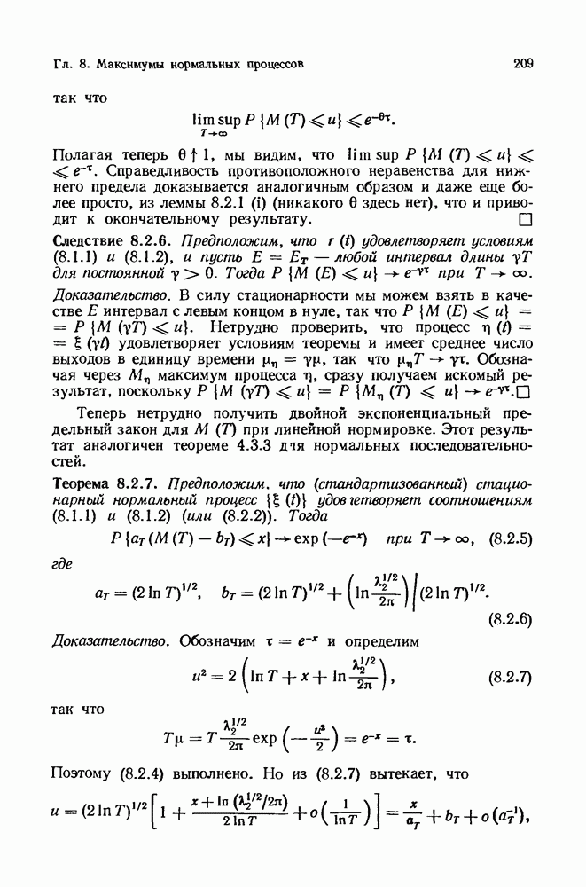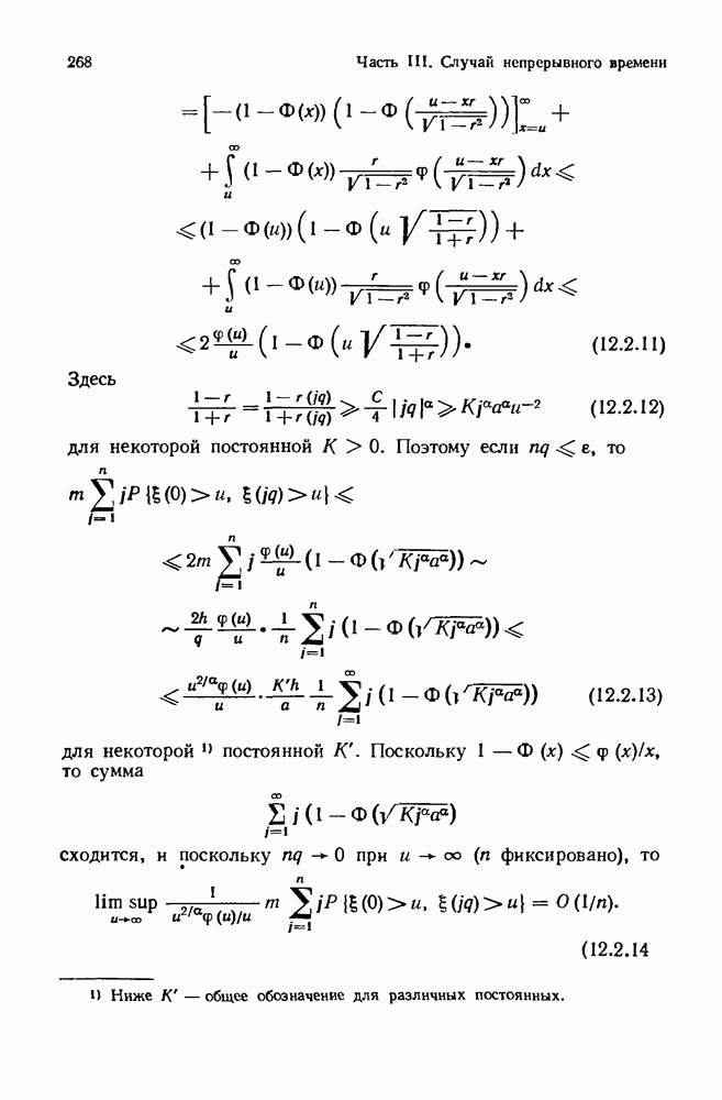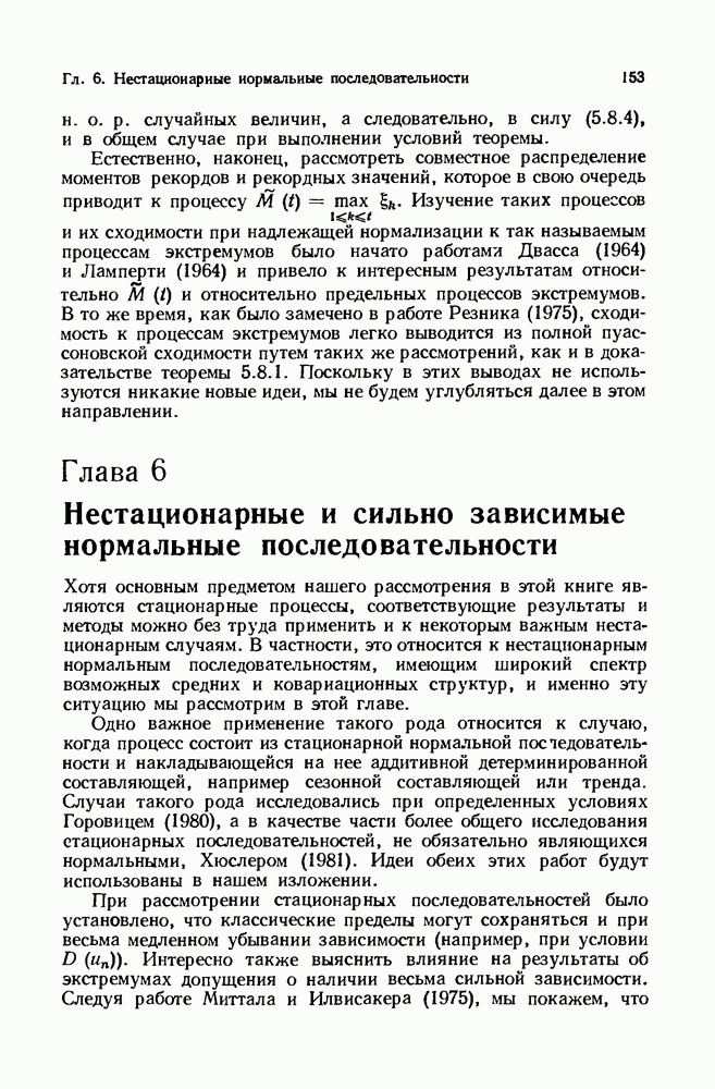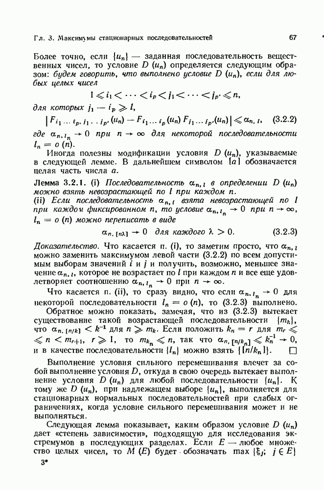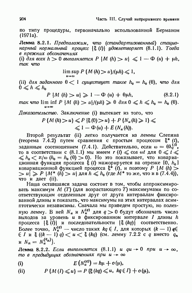 6.4. Стационарные нормальные последовательности с сильной зависимостьюВ этом и остальных разделах мы обращаемся ко второй теме настоящей главы, а именно хотим посмотреть, как влияет на экстремумы более жесткая структура зависимости стационарной нормальной последовательности В этом и следующих разделах мы рассмотрим сличай Основным инструментом, как и в гл. 4, будет нормальная лемма сравнения (теорема 4.2.1), связывающая распределения максимумов двух нормальных последовательностей с различными корреляциями. Теперь уже, разумеется, не достаточно сравнения с независимой последовательностью. Вместо этого удобно проводить сравнение распределения с. в. Лемма 6.4.1. Пусть