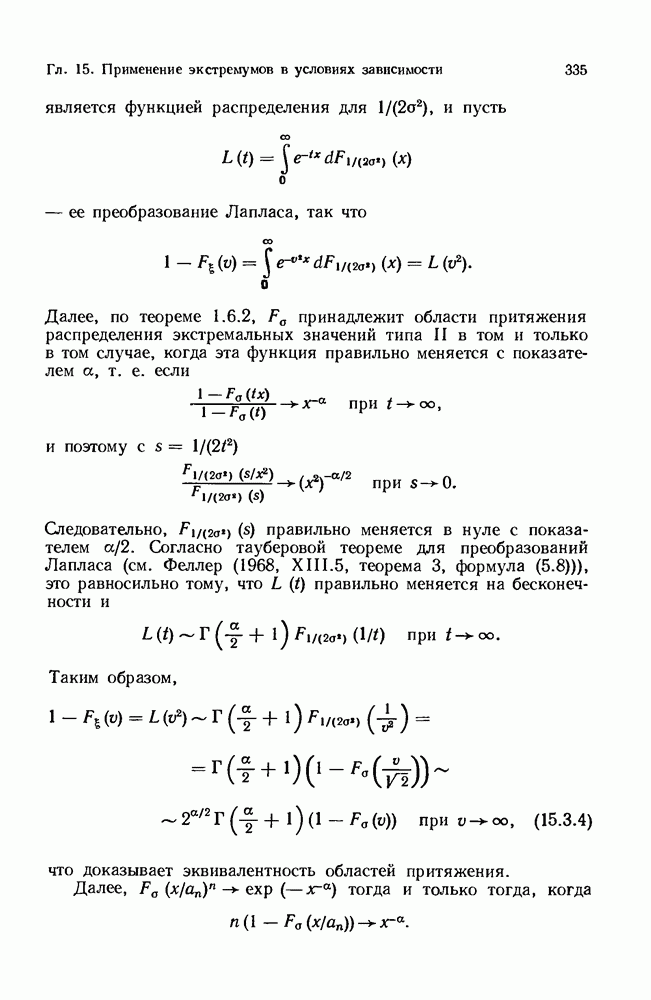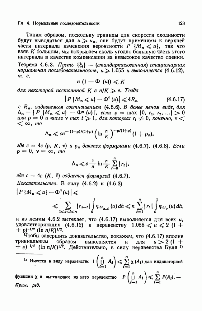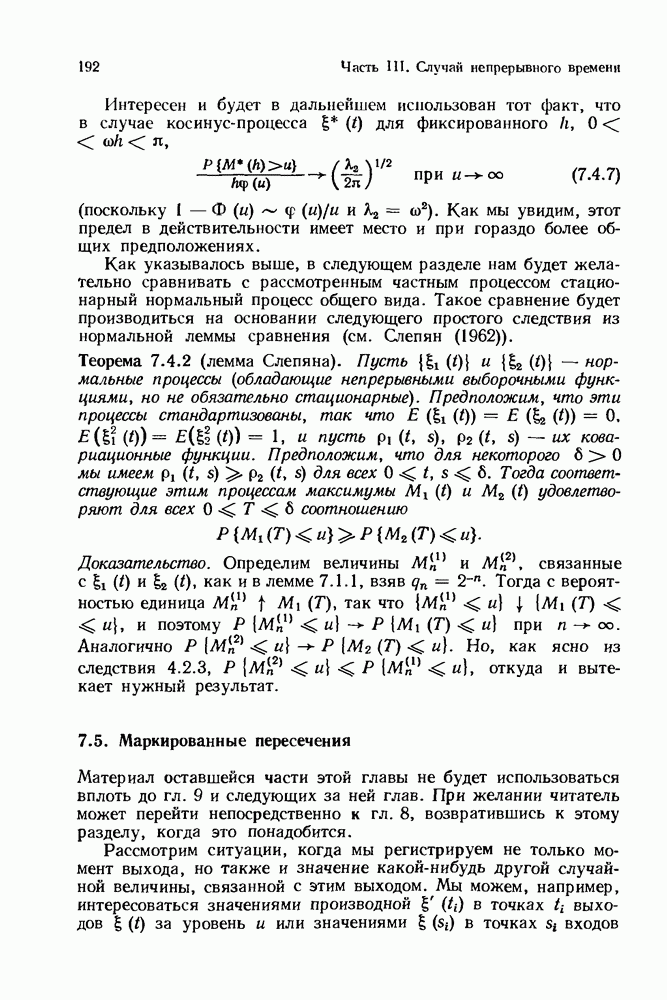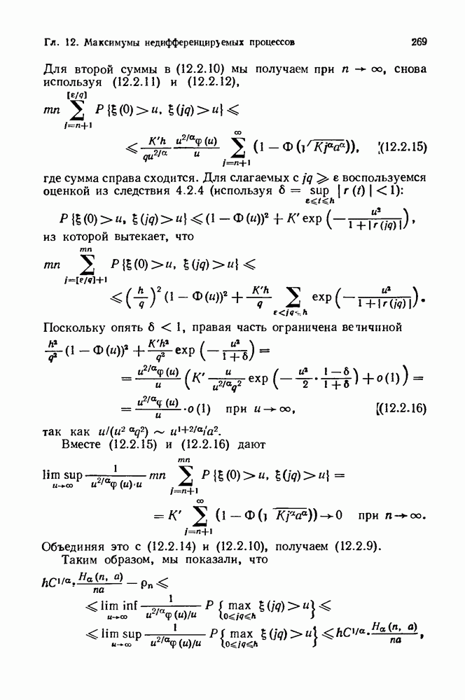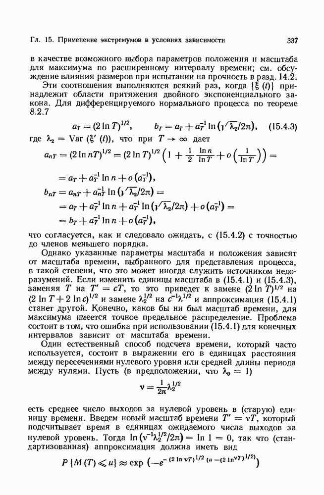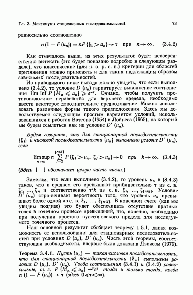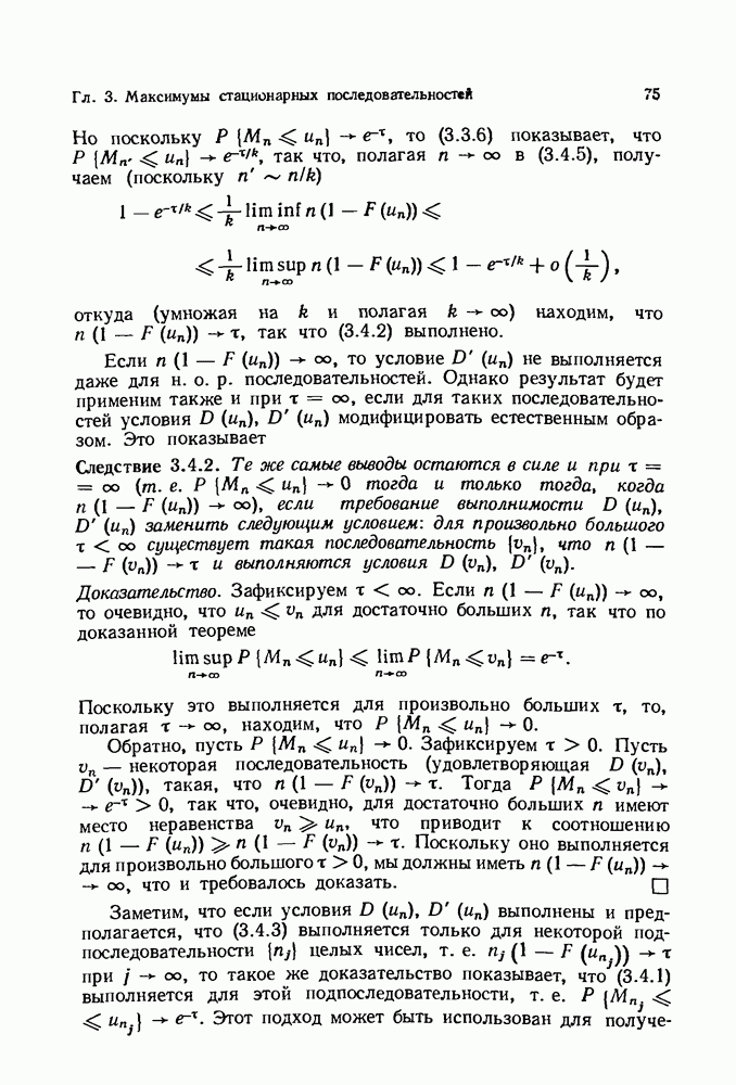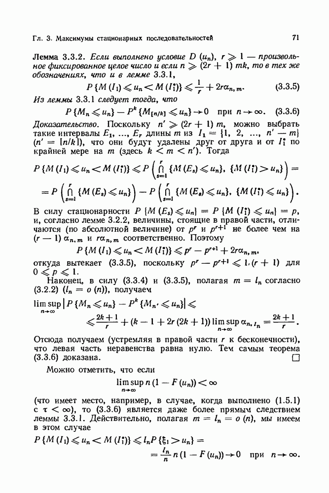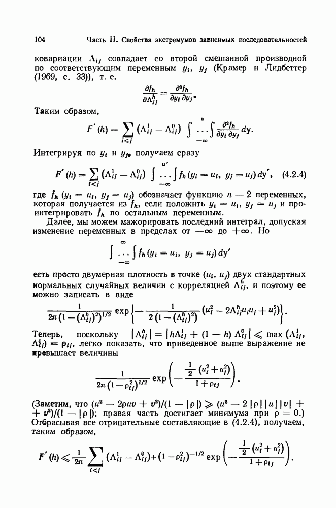 6.4. Стационарные нормальные последовательности с сильной зависимостьюВ этом и остальных разделах мы обращаемся ко второй теме настоящей главы, а именно хотим посмотреть, как влияет на экстремумы более жесткая структура зависимости стационарной нормальной последовательности В этом и следующих разделах мы рассмотрим сличай Основным инструментом, как и в гл. 4, будет нормальная лемма сравнения (теорема 4.2.1), связывающая распределения максимумов двух нормальных последовательностей с различными корреляциями. Теперь уже, разумеется, не достаточно сравнения с независимой последовательностью. Вместо этого удобно проводить сравнение распределения с. в. Лемма 6.4.1. Пусть