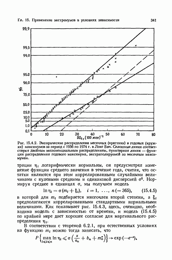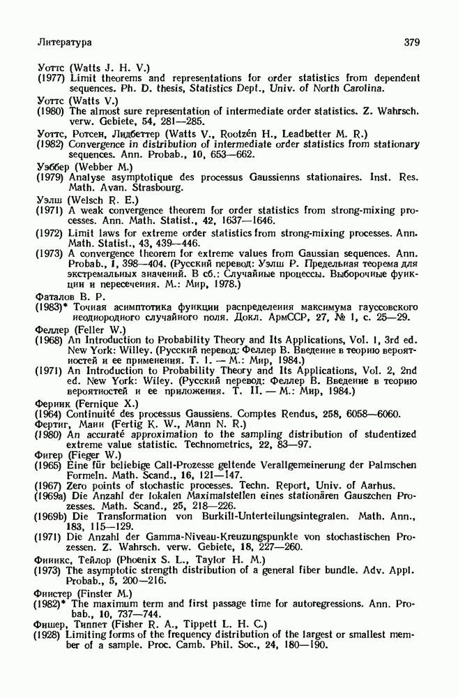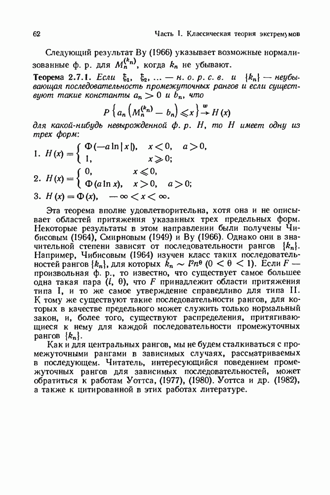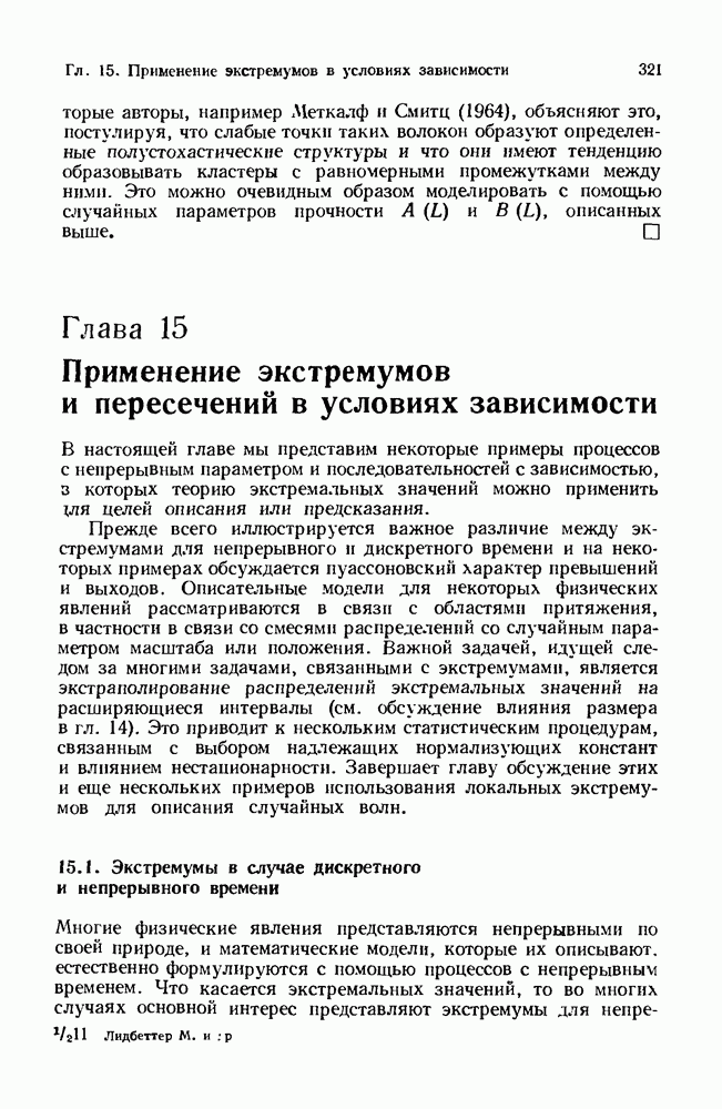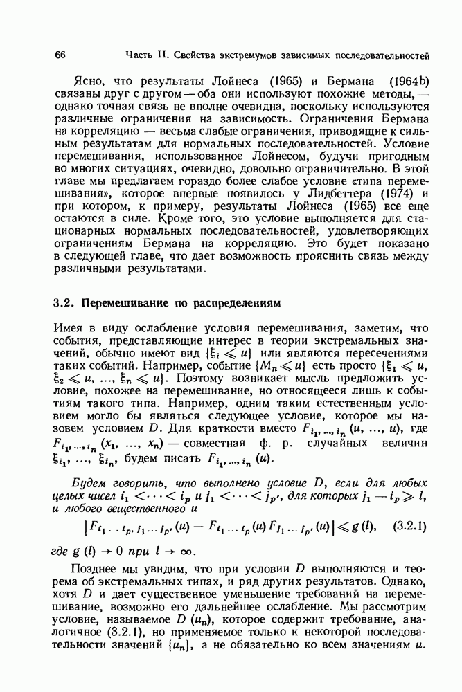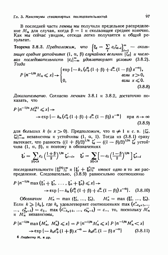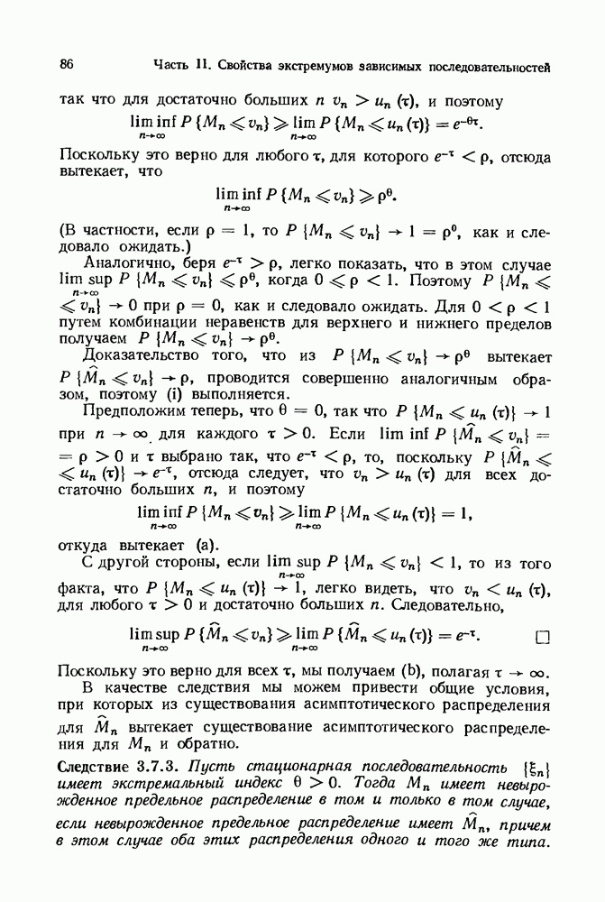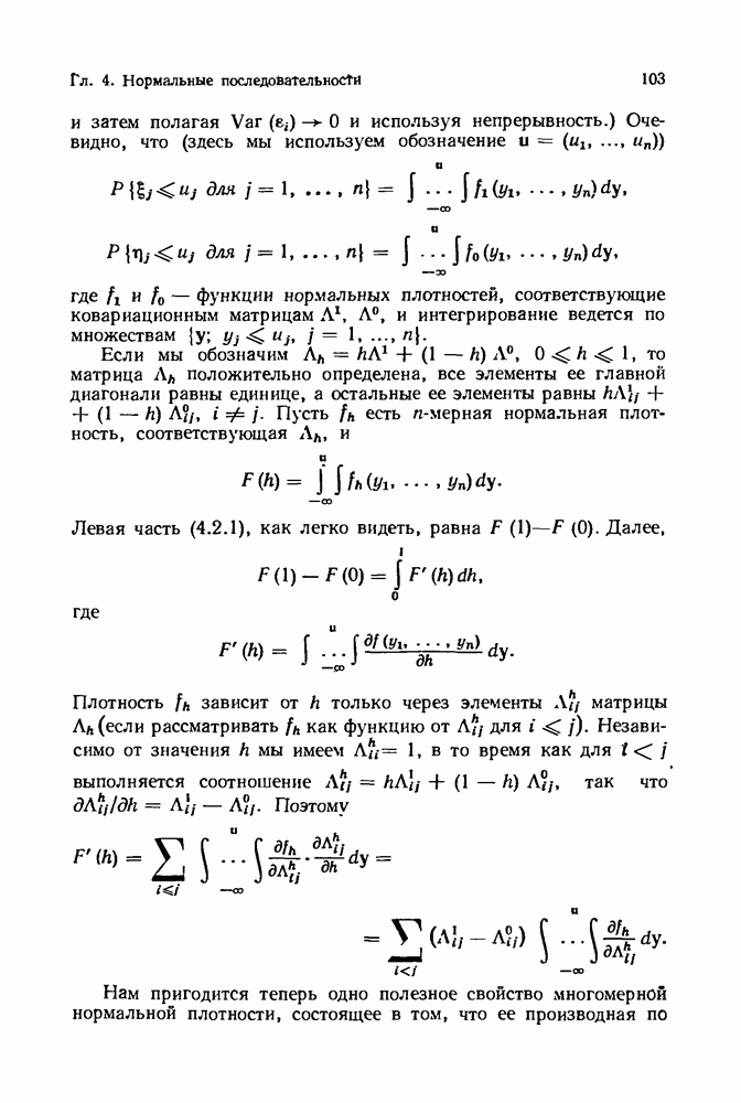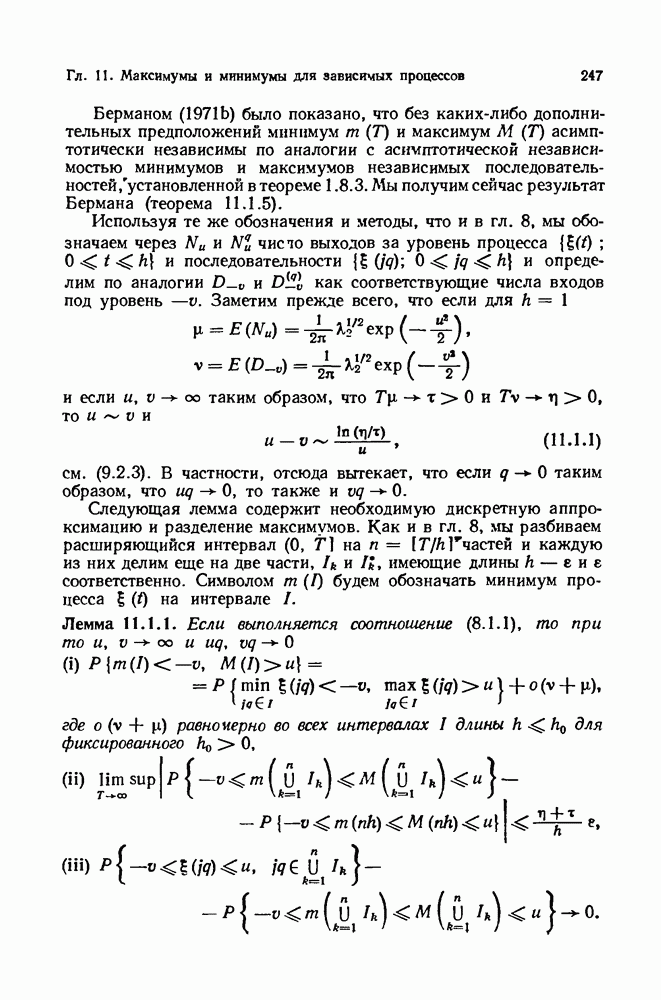 6.4. Стационарные нормальные последовательности с сильной зависимостьюВ этом и остальных разделах мы обращаемся ко второй теме настоящей главы, а именно хотим посмотреть, как влияет на экстремумы более жесткая структура зависимости стационарной нормальной последовательности В этом и следующих разделах мы рассмотрим сличай Основным инструментом, как и в гл. 4, будет нормальная лемма сравнения (теорема 4.2.1), связывающая распределения максимумов двух нормальных последовательностей с различными корреляциями. Теперь уже, разумеется, не достаточно сравнения с независимой последовательностью. Вместо этого удобно проводить сравнение распределения с. в. Лемма 6.4.1. Пусть