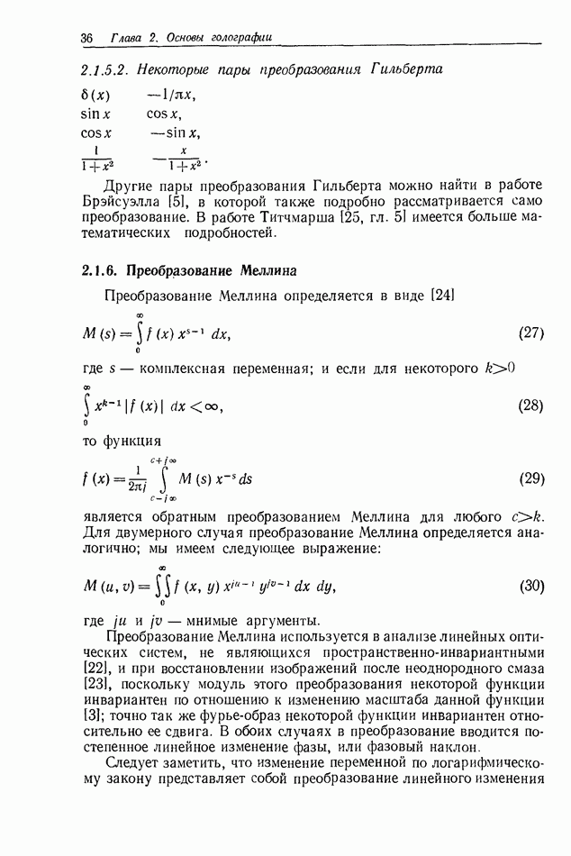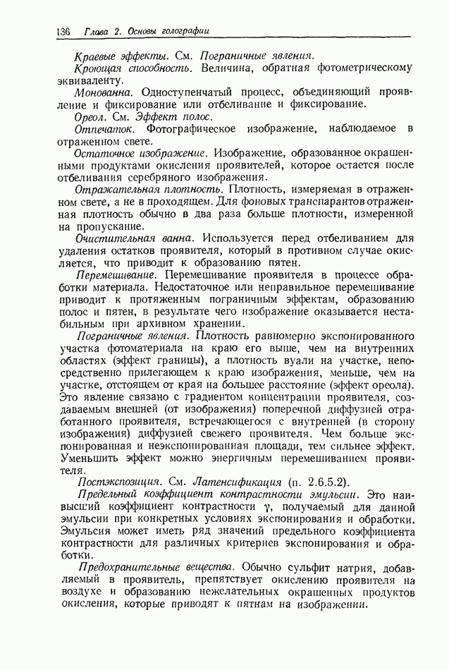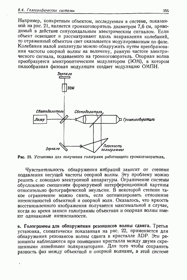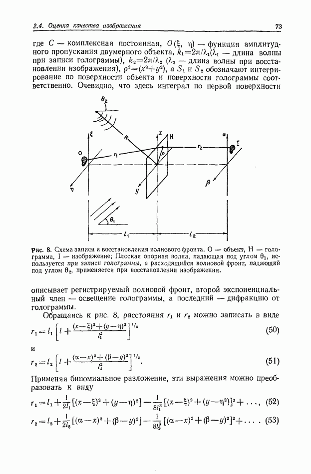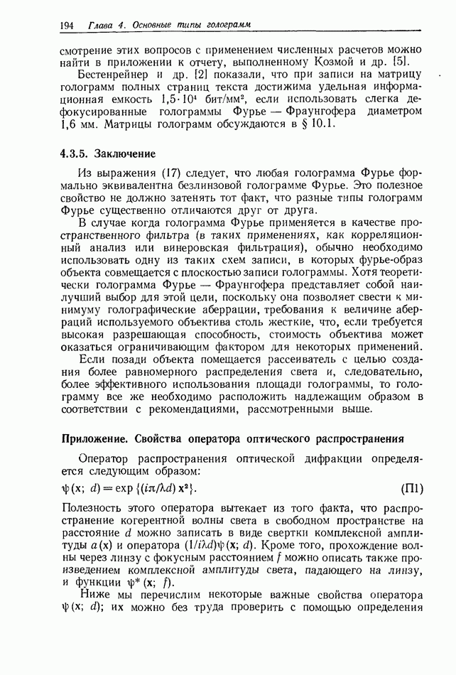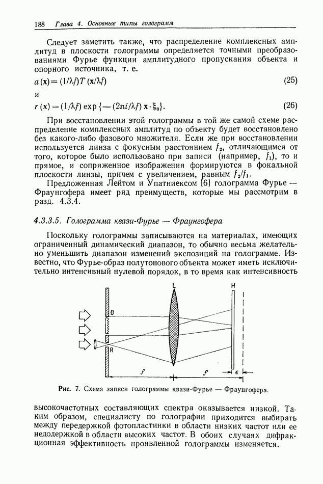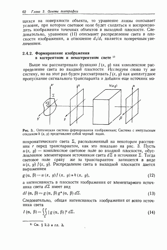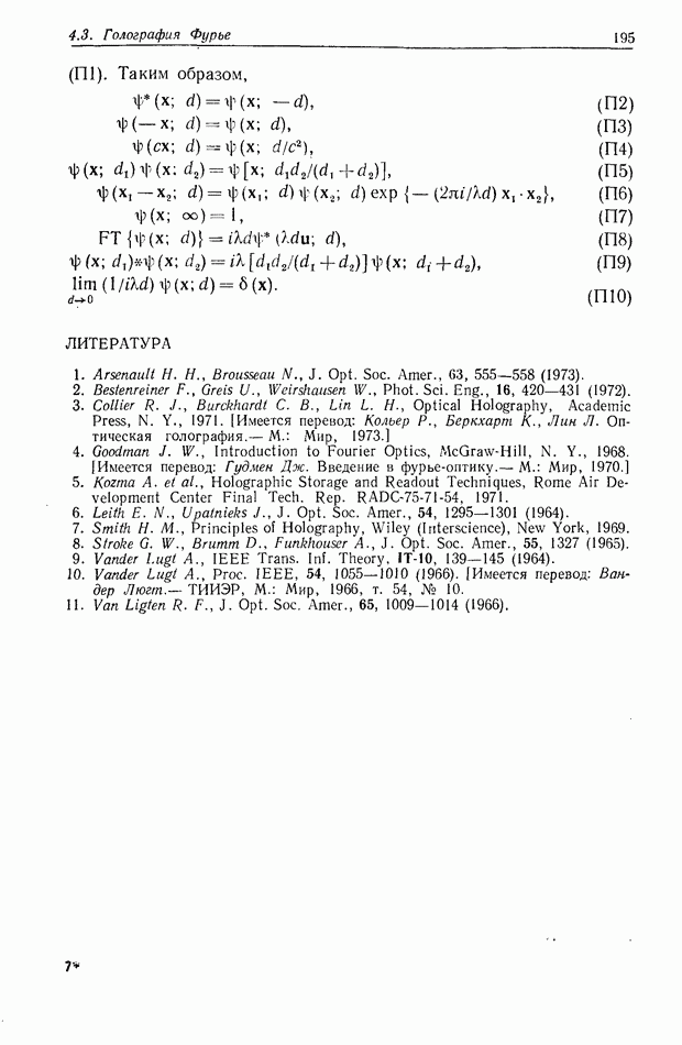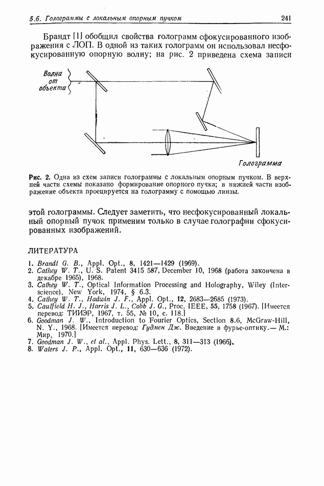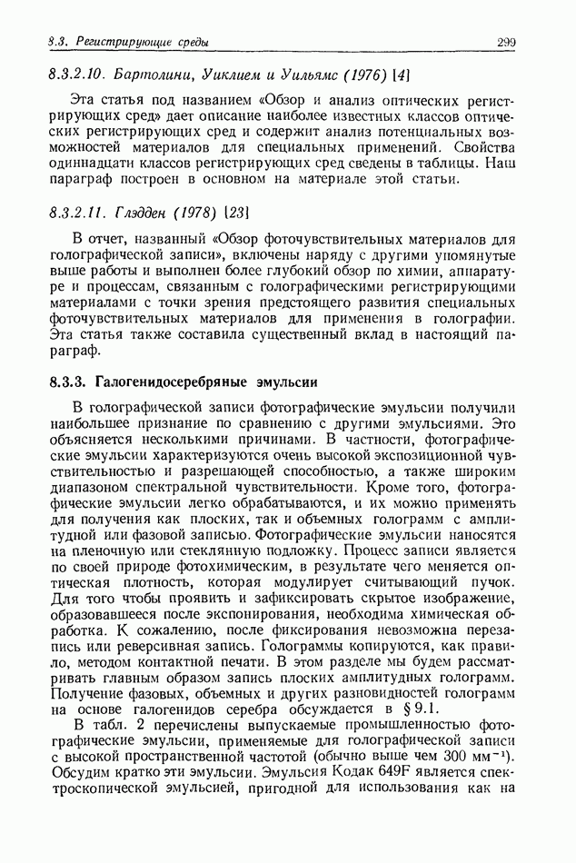 Предисловие редактора переводаВ последнее время голографические методы получения и анализа изображений находят все большее применение в различных областях науки и техники. Путь к использованию голографии отнюдь не был гладок. Хотя популярность она завоевала сразу же после появления лазерных голограмм в начале 60-х годов, прошло немало времени, прежде чем были преодолены многие технические трудности, разработаны и применены новые, основанные на принципах голографии, методы анализа и контроля явлений и объектов. Процесс расширения областей использования голографии продолжается и поныне. В научно-исследовательских институтах и научно-производственных объединениях возникло немало лабораторий, призванных распространять уже известные и разрабатывать новые голографические методы для различных областей науки и техники. Голография стала широко использоваться и как средство трехмерного отображения объектов. Возможности практического применения уже расширились настолько, что голография затронула и космические исследования, продемонстрировав целый ряд преимуществ голографических методов над традиционными. Интенсивное развитие голографии, расширение областей ее применения, постоянное увеличение числа специалистов, так или иначе связанных с голографией, — все это оказало влияние на рост интереса к литературе, рассматривающей те или иные аспекты голографии. За последние годы появилось немало книг по голографии. Одни из них (см. список литературы) посвящены проблеме в целом, другие — отдельным разделам голографии и конкретным областям ее приложения. Тем не менее вне поля зрения специальной голографической литературы осталось немало неосвещенных вопросов. Кроме того, назрела необходимость в подробном справочнике по голографии, в котором с достаточной полнотой были бы рассмотрены все главные разделы голографии. Наиболее близко удовлетворяла этим требованиям изданная в 1970 г. в русском переводе книга Р. Кольера, К Беркхарта и Л. Лина «Оптическая голография» [5]. Однако материал ее частично устарел, он уже не является достаточно полным и не отражает современного уровня развития голографии. Предлагаемая читателю книга представляет собой своего рода энциклопедический справочник, охватывающий как оптическую голографию в целом, так и формирование изображений и оптическую обработку информации. Для написания этой книги привлечен авторский коллектив в составе 31 специалиста из различных научных учреждений США и Канады. В авторский коллектив входит большинство ученых США, наиболее активно работающих в области голографии, оптической обработки информации и их применений. Введение к книге написал Э. Лейт — один из основоположников лазерной голографии, внесший большой вклад в дело ее практического использования в разных областях науки и техники. В переводном издании в книгу внесены некоторые изменения. Во-первых, она разбита на два тома и, во-вторых, с любезного разрешения редактора американского издания проф. Г. Колфилда, в т. 2 помещено «Дополнение», написанное крупнейшим советским специалистом в области голографии и оптики чл.-кор. АН СССР Ю. Н. Денисюком. Необходимость введения «Дополнения» обусловлена тем, что в американском издании весьма слабо отражены работы советских авторов и недостаточно освещен важный разде