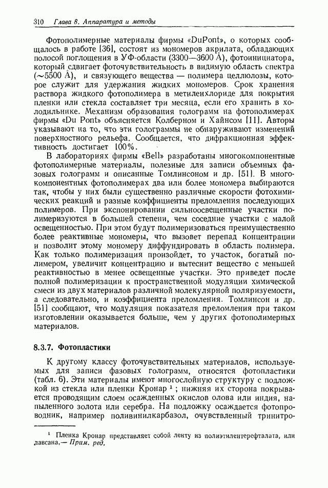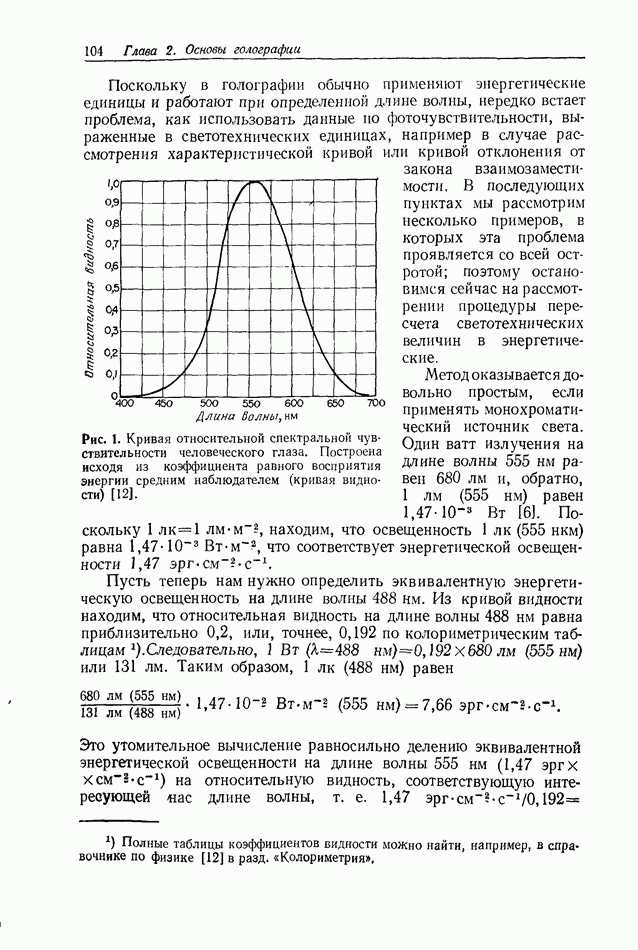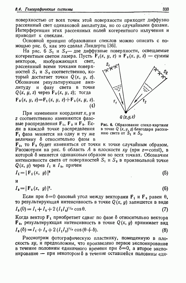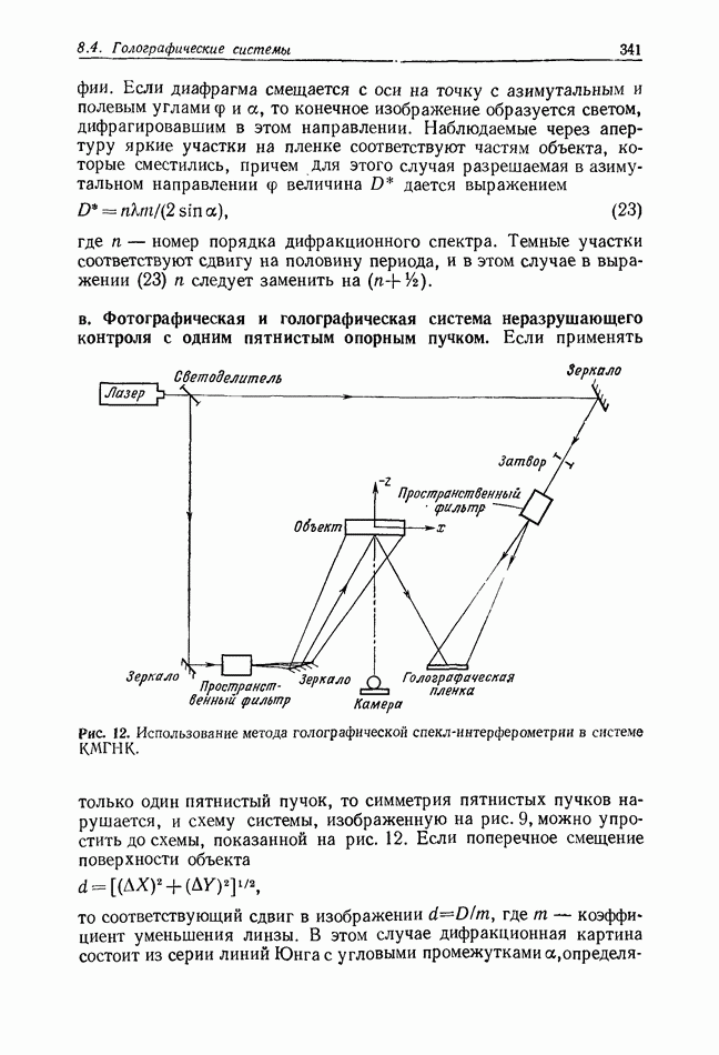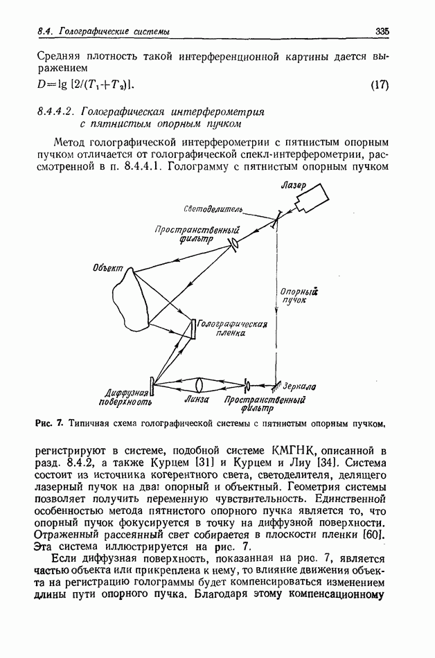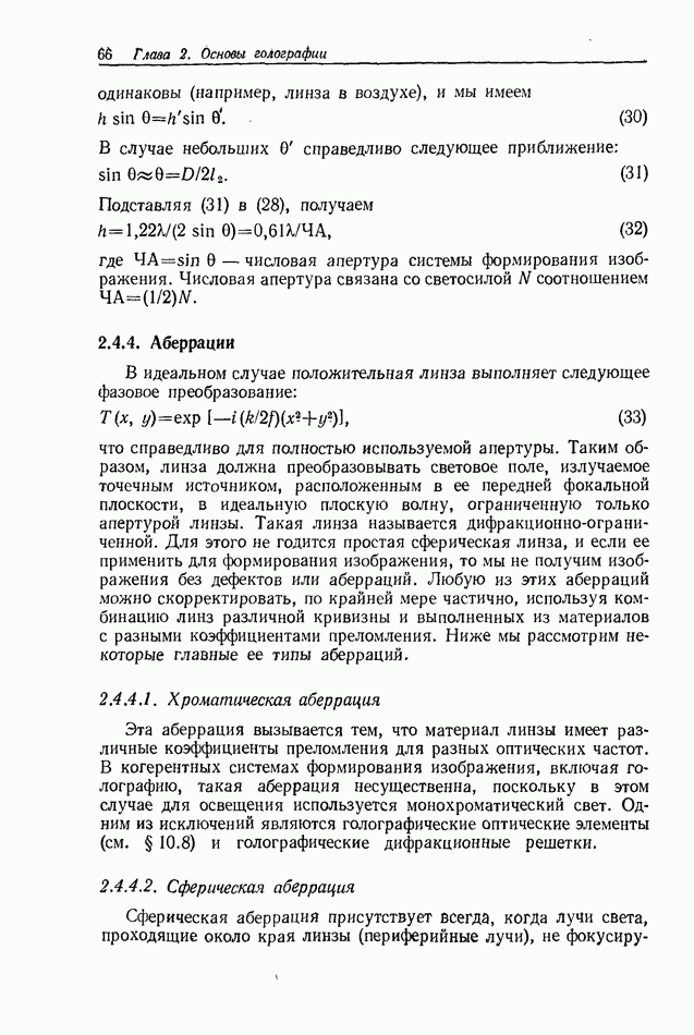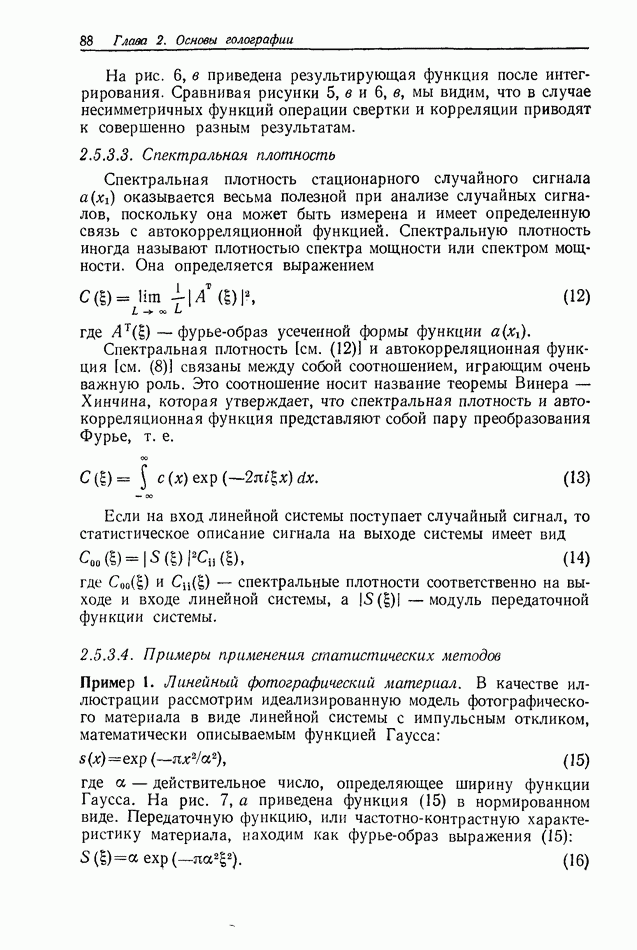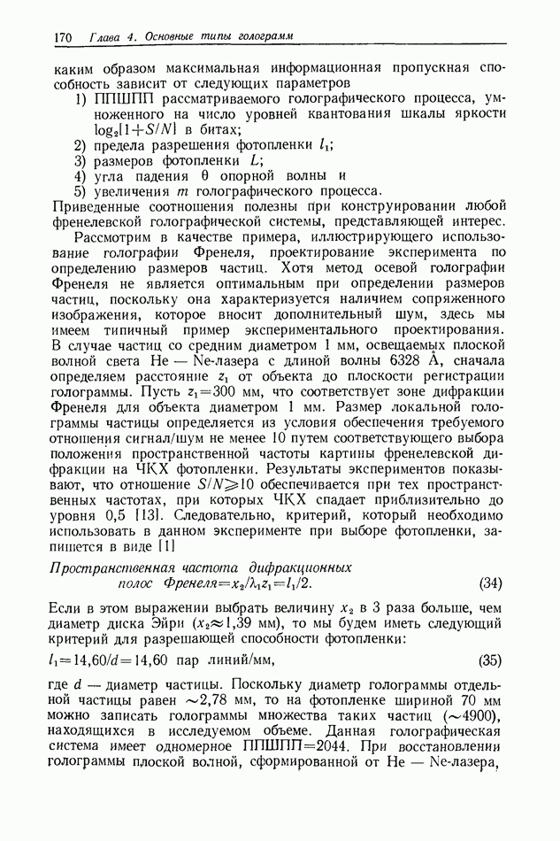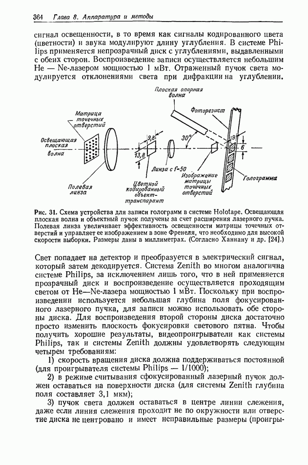 Предисловие редактора переводаВ последнее время голографические методы получения и анализа изображений находят все большее применение в различных областях науки и техники. Путь к использованию голографии отнюдь не был гладок. Хотя популярность она завоевала сразу же после появления лазерных голограмм в начале 60-х годов, прошло немало времени, прежде чем были преодолены многие технические трудности, разработаны и применены новые, основанные на принципах голографии, методы анализа и контроля явлений и объектов. Процесс расширения областей использования голографии продолжается и поныне. В научно-исследовательских институтах и научно-производственных объединениях возникло немало лабораторий, призванных распространять уже известные и разрабатывать новые голографические методы для различных областей науки и техники. Голография стала широко использоваться и как средство трехмерного отображения объектов. Возможности практического применения уже расширились настолько, что голография затронула и космические исследования, продемонстрировав целый ряд преимуществ голографических методов над традиционными. Интенсивное развитие голографии, расширение областей ее применения, постоянное увеличение числа специалистов, так или иначе связанных с голографией, — все это оказало влияние на рост интереса к литературе, рассматривающей те или иные аспекты голографии. За последние годы появилось немало книг по голографии. Одни из них (см. список литературы) посвящены проблеме в целом, другие — отдельным разделам голографии и конкретным областям ее приложения. Тем не менее вне поля зрения специальной голографической литературы осталось немало неосвещенных вопросов. Кроме того, назрела необходимость в подробном справочнике по голографии, в котором с достаточной полнотой были бы рассмотрены все главные разделы голографии. Наиболее близко удовлетворяла этим требованиям изданная в 1970 г. в русском переводе книга Р. Кольера, К Беркхарта и Л. Лина «Оптическая голография» [5]. Однако материал ее частично устарел, он уже не является достаточно полным и не отражает современного уровня развития голографии. Предлагаемая читателю книга представляет собой своего рода энциклопедический справочник, охватывающий как оптическую голографию в целом, так и формирование изображений и оптическую обработку информации. Для написания этой книги привлечен авторский коллектив в составе 31 специалиста из различных научных учреждений США и Канады. В авторский коллектив входит большинство ученых США, наиболее активно работающих в области голографии, оптической обработки информации и их применений. Введение к книге написал Э. Лейт — один из основоположников лазерной голографии, внесший большой вклад в дело ее практического использования в разных областях науки и техники. В переводном издании в книгу внесены некоторые изменения. Во-первых, она разбита на два тома и, во-вторых, с любезного разрешения редактора американского издания проф. Г. Колфилда, в т. 2 помещено «Дополнение», написанное крупнейшим советским специалистом в области голографии и оптики чл.-кор. АН СССР Ю. Н. Денисюком. Необходимость введения «Дополнения» обусловлена тем, что в американском издании весьма слабо отражены работы советских авторов и недостаточно освещен важный разде
