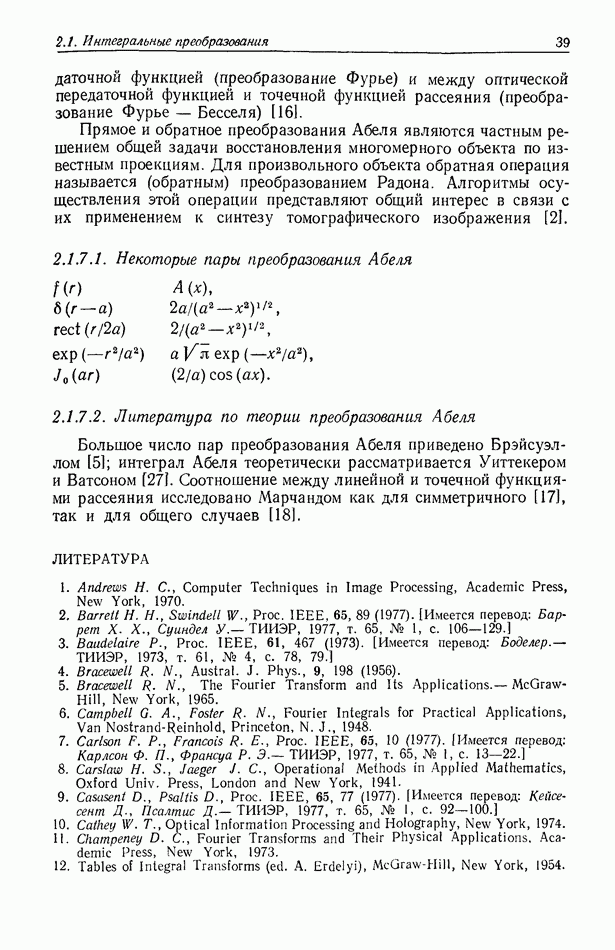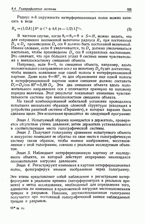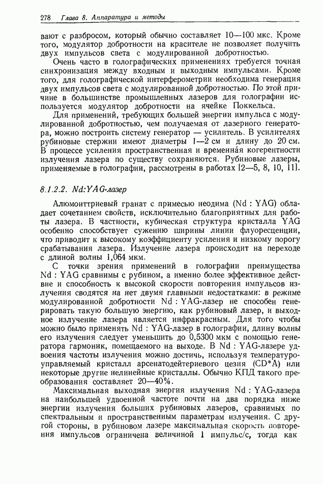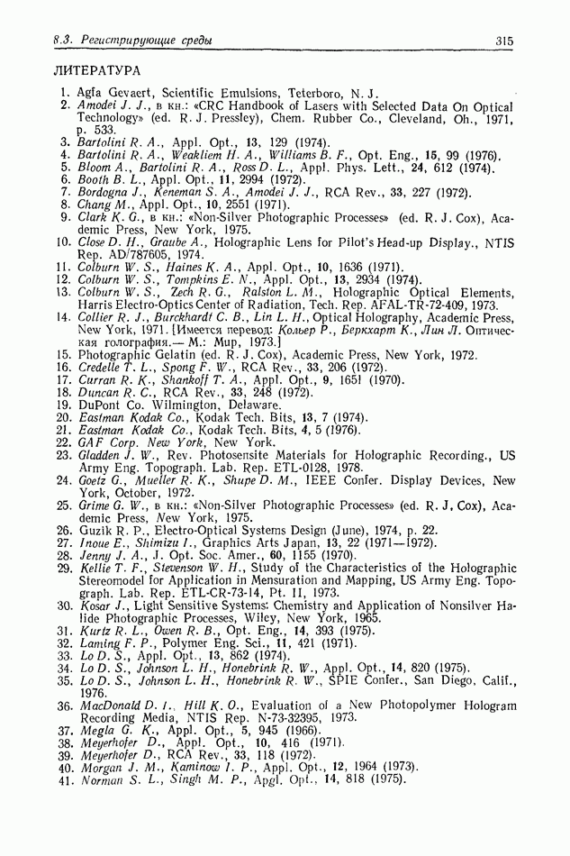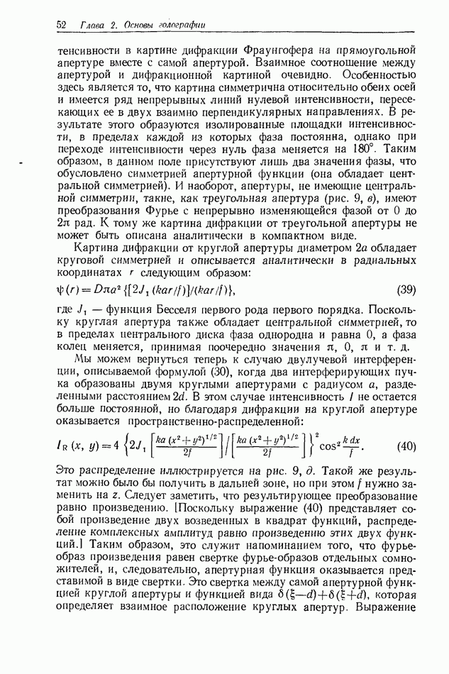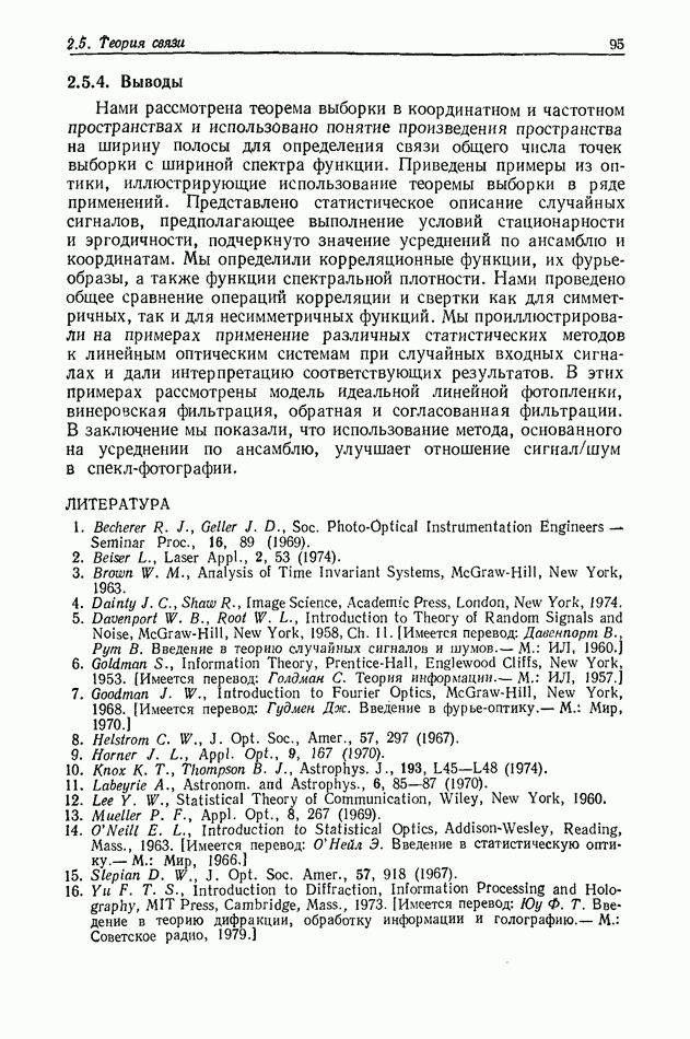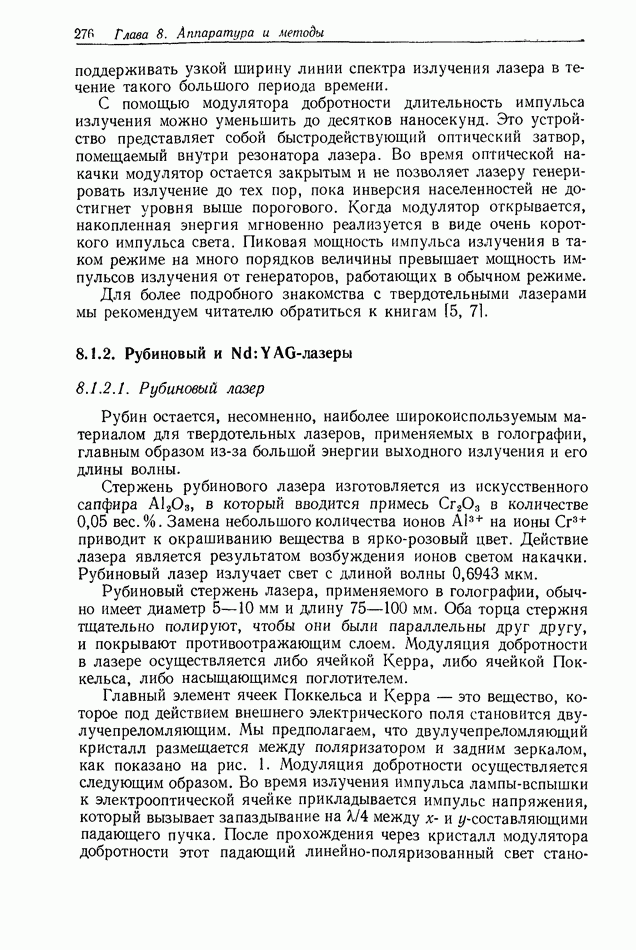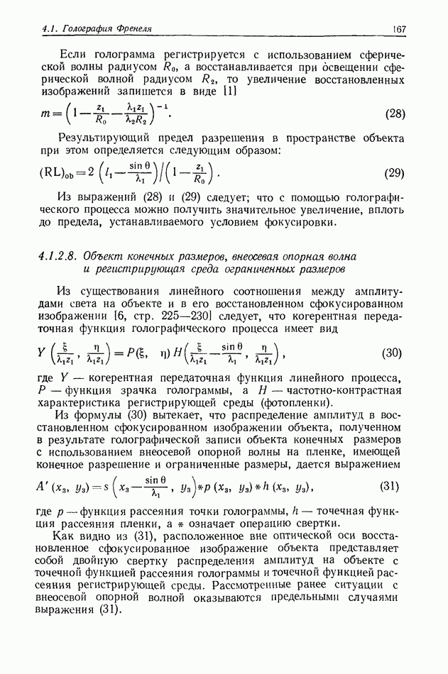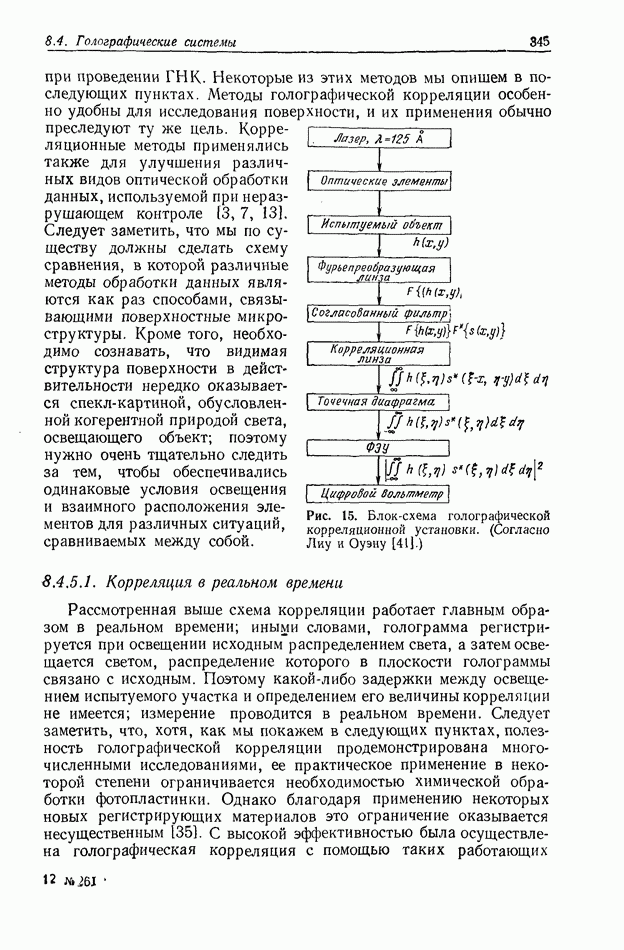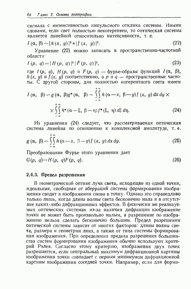 Предисловие редактора переводаВ последнее время голографические методы получения и анализа изображений находят все большее применение в различных областях науки и техники. Путь к использованию голографии отнюдь не был гладок. Хотя популярность она завоевала сразу же после появления лазерных голограмм в начале 60-х годов, прошло немало времени, прежде чем были преодолены многие технические трудности, разработаны и применены новые, основанные на принципах голографии, методы анализа и контроля явлений и объектов. Процесс расширения областей использования голографии продолжается и поныне. В научно-исследовательских институтах и научно-производственных объединениях возникло немало лабораторий, призванных распространять уже известные и разрабатывать новые голографические методы для различных областей науки и техники. Голография стала широко использоваться и как средство трехмерного отображения объектов. Возможности практического применения уже расширились настолько, что голография затронула и космические исследования, продемонстрировав целый ряд преимуществ голографических методов над традиционными. Интенсивное развитие голографии, расширение областей ее применения, постоянное увеличение числа специалистов, так или иначе связанных с голографией, — все это оказало влияние на рост интереса к литературе, рассматривающей те или иные аспекты голографии. За последние годы появилось немало книг по голографии. Одни из них (см. список литературы) посвящены проблеме в целом, другие — отдельным разделам голографии и конкретным областям ее приложения. Тем не менее вне поля зрения специальной голографической литературы осталось немало неосвещенных вопросов. Кроме того, назрела необходимость в подробном справочнике по голографии, в котором с достаточной полнотой были бы рассмотрены все главные разделы голографии. Наиболее близко удовлетворяла этим требованиям изданная в 1970 г. в русском переводе книга Р. Кольера, К Беркхарта и Л. Лина «Оптическая голография» [5]. Однако материал ее частично устарел, он уже не является достаточно полным и не отражает современного уровня развития голографии. Предлагаемая читателю книга представляет собой своего рода энциклопедический справочник, охватывающий как оптическую голографию в целом, так и формирование изображений и оптическую обработку информации. Для написания этой книги привлечен авторский коллектив в составе 31 специалиста из различных научных учреждений США и Канады. В авторский коллектив входит большинство ученых США, наиболее активно работающих в области голографии, оптической обработки информации и их применений. Введение к книге написал Э. Лейт — один из основоположников лазерной голографии, внесший большой вклад в дело ее практического использования в разных областях науки и техники. В переводном издании в книгу внесены некоторые изменения. Во-первых, она разбита на два тома и, во-вторых, с любезного разрешения редактора американского издания проф. Г. Колфилда, в т. 2 помещено «Дополнение», написанное крупнейшим советским специалистом в области голографии и оптики чл.-кор. АН СССР Ю. Н. Денисюком. Необходимость введения «Дополнения» обусловлена тем, что в американском издании весьма слабо отражены работы советских авторов и недостаточно освещен важный разде