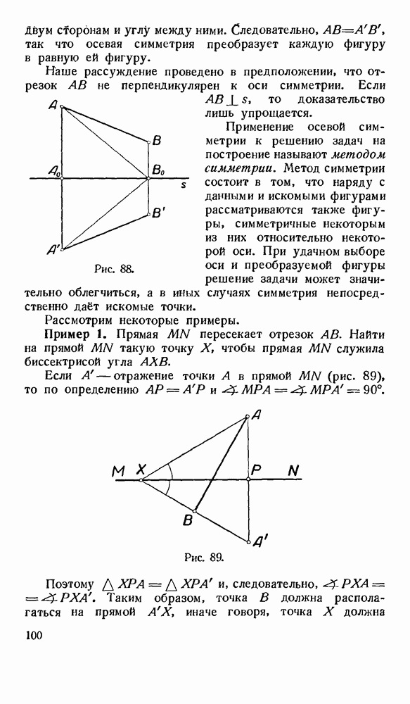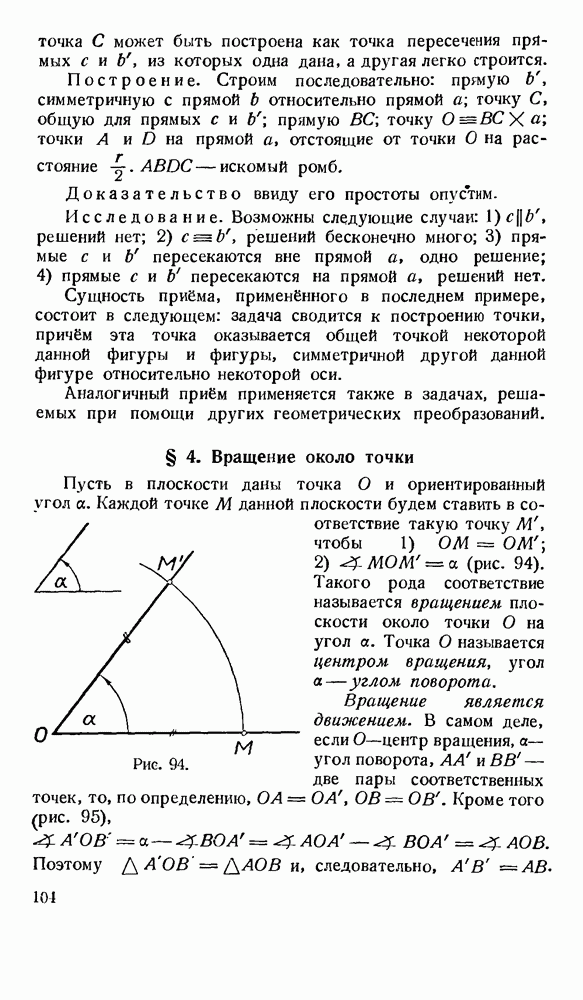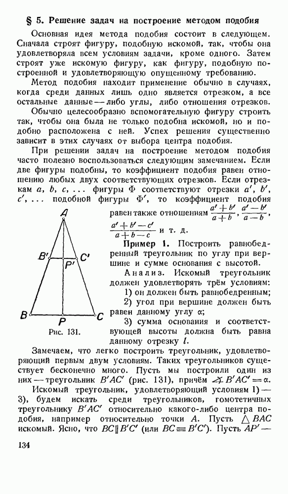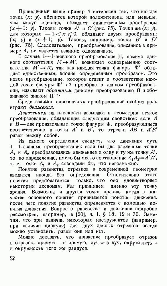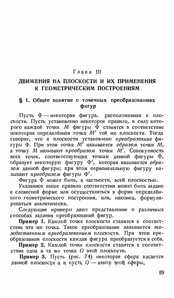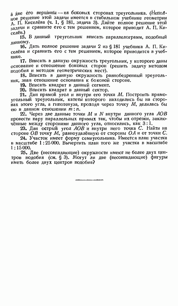 Две фигуры называются подобными, если существует преобразование подобия, переводящее одну из этих фигур в другую. Ясно, что всякое движение или гомотетия представляют частные случаи преобразования подобия. Ясно также, что последовательное применение гомотетии и движения приводит к преобразованию подобия. С другой стороны, можно доказать, что этим понятие о подобии исчерпывается, а именно, всякое преобразование подобия можно рассматривать как результат последовательного применения некоторого движения и некоторой гомотетии, т. е. если имеются две подобные фигуры, то всегда можно переместить одну из них по плоскости так, чтобы эти фигуры стали перспективно-подобными (об этом см., например [9], п. 176 или [20], теоремы 146 и 147).