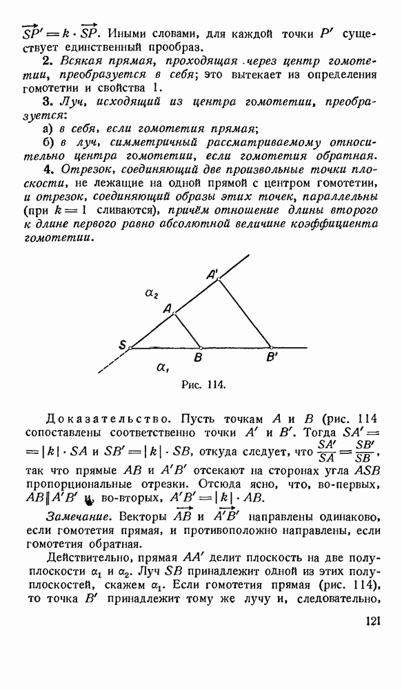Если гомотетия прямая (рис. 114), то точка В принадлежит тому же лучу и, следовательно,